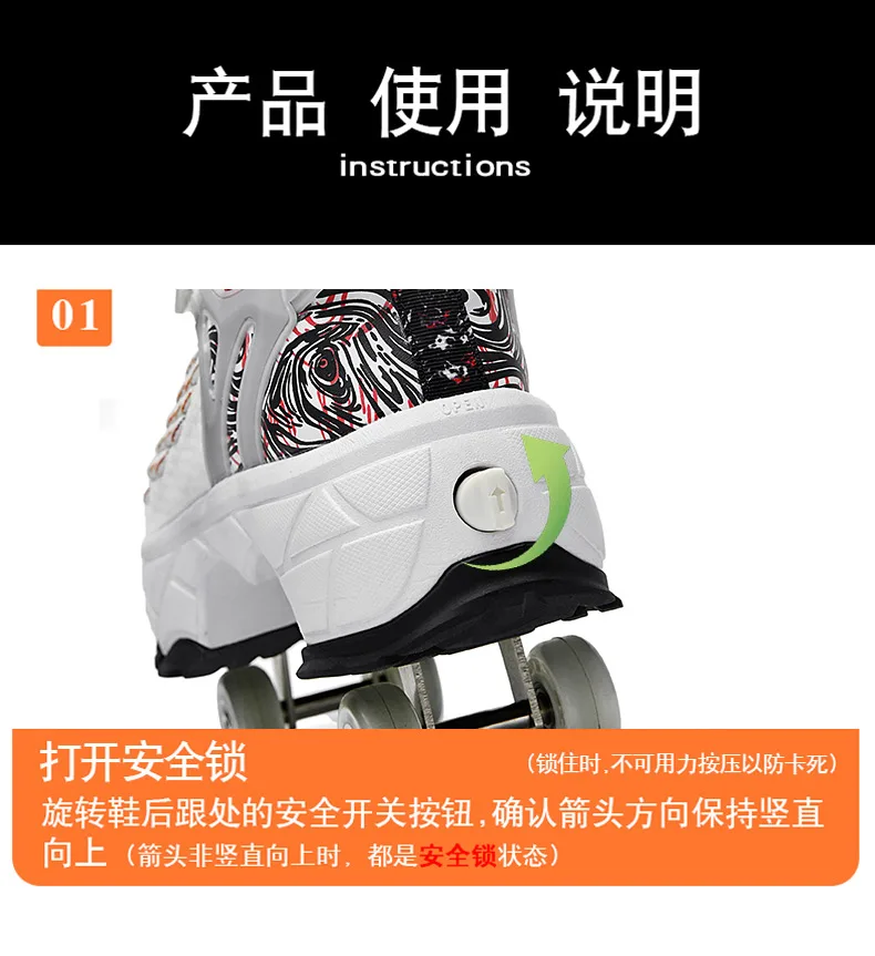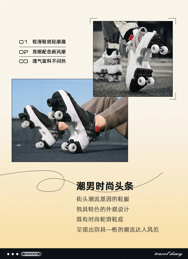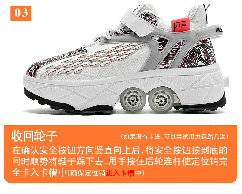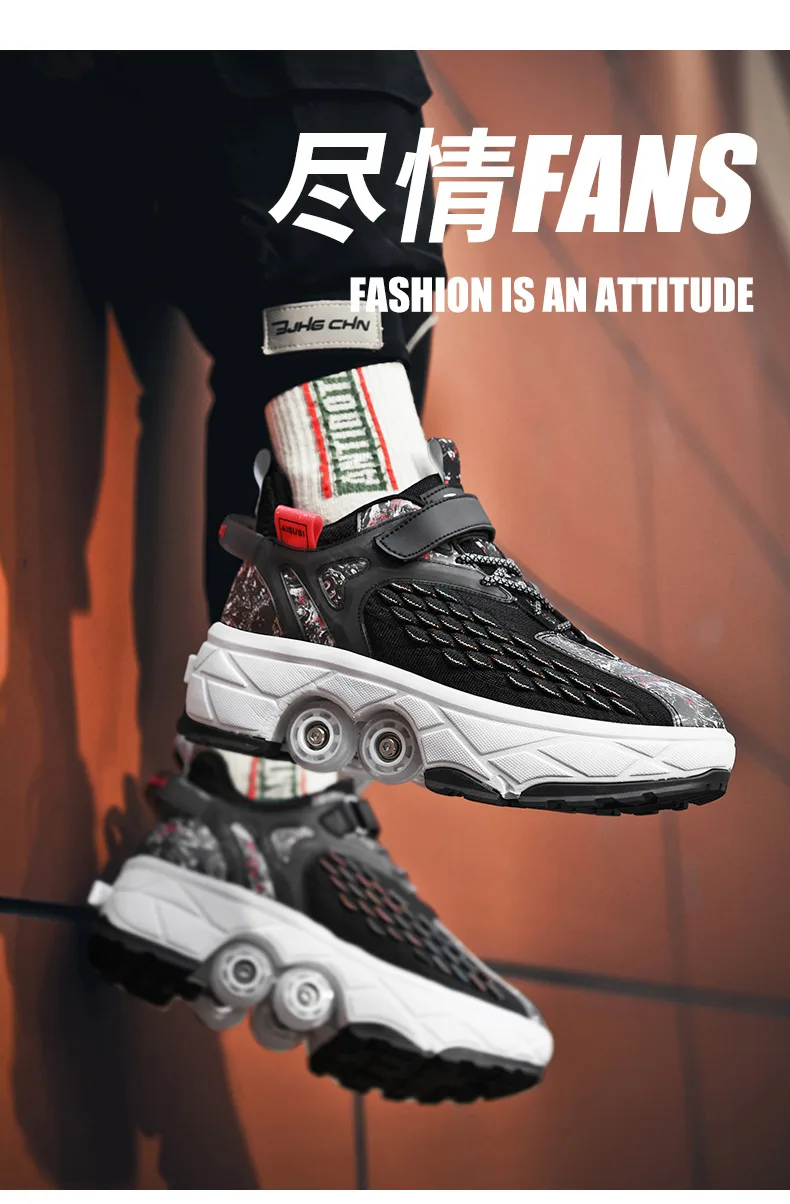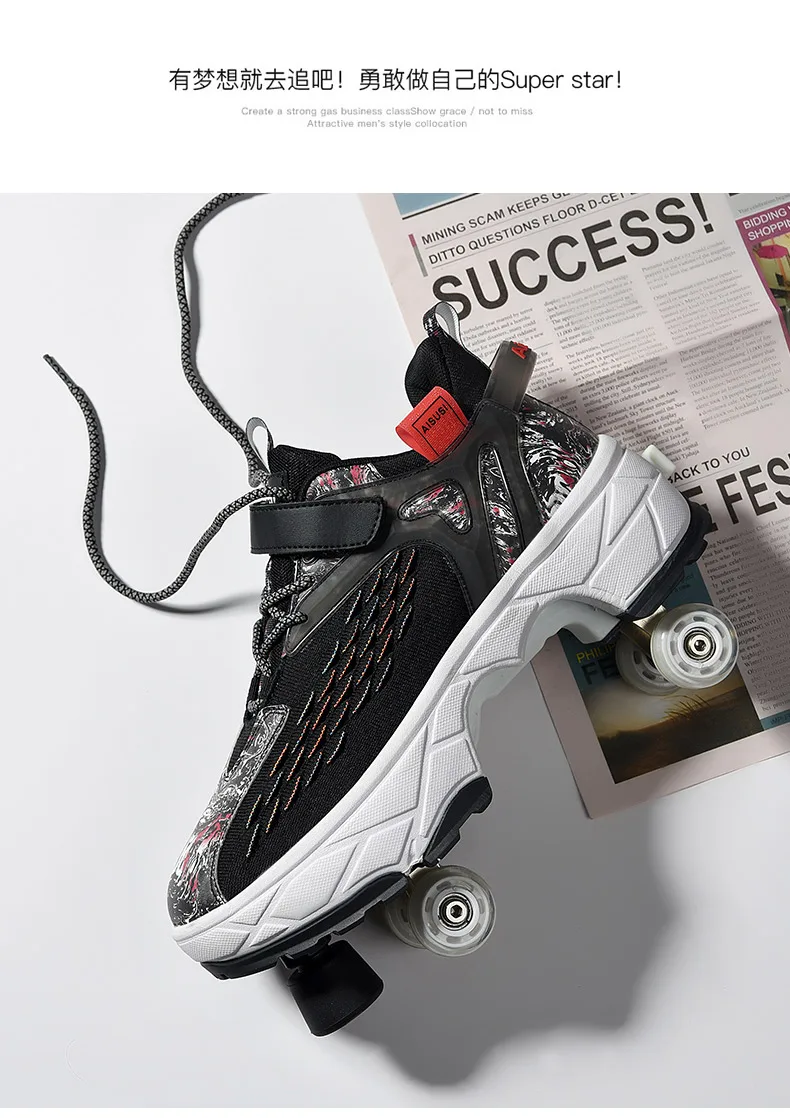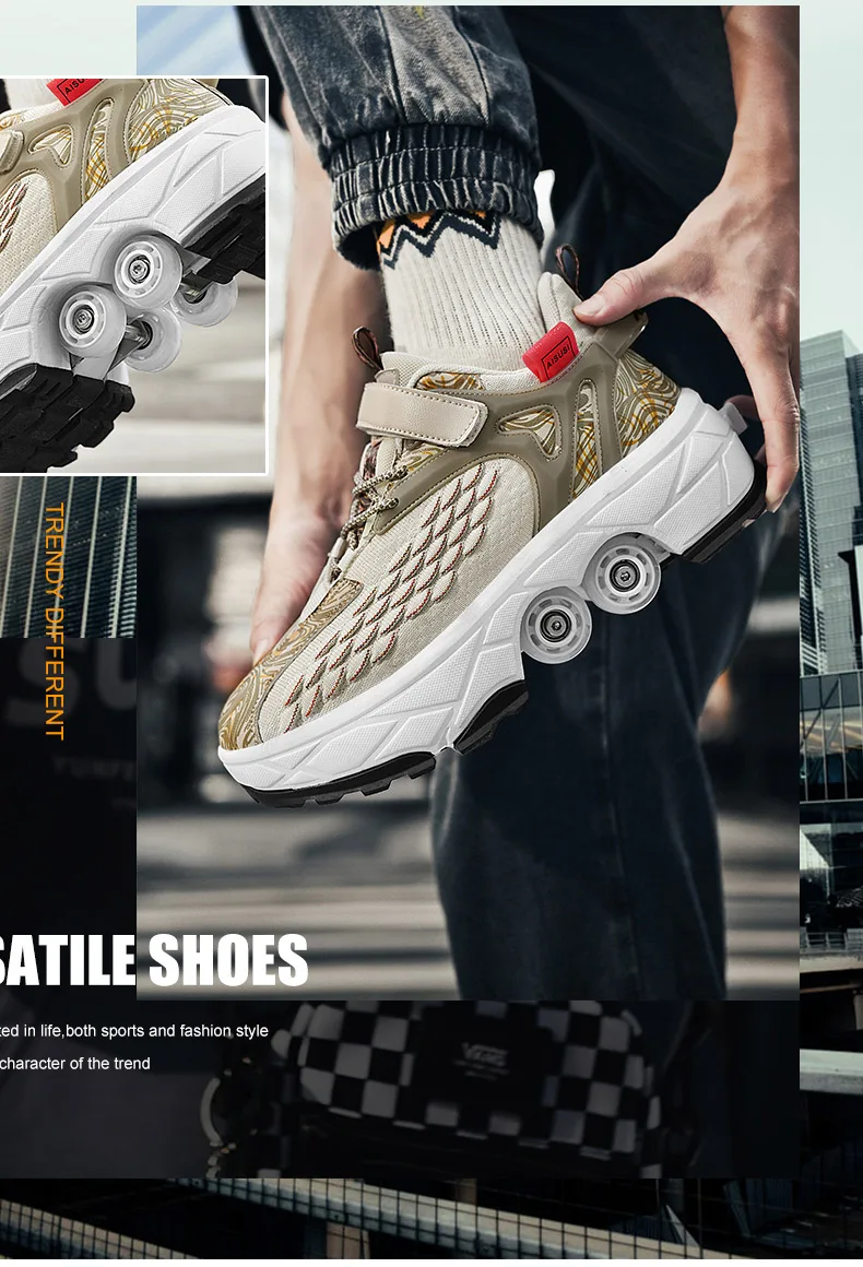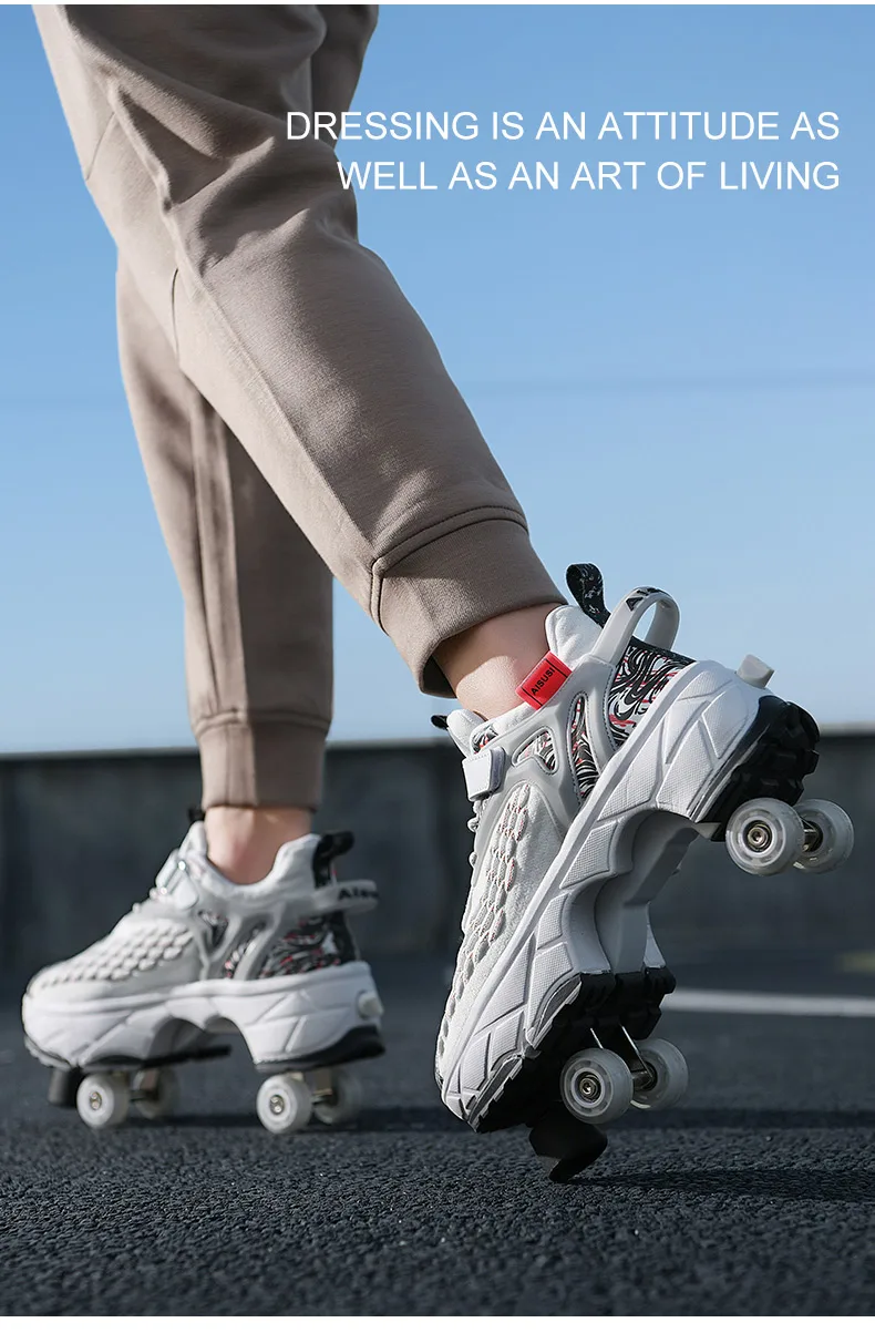 Kids Roller Skate Shoes Running Outdoor 4 Wheels Casual Children Parkour Detachable Fashion Boys Girls Deformation Skating Shoes