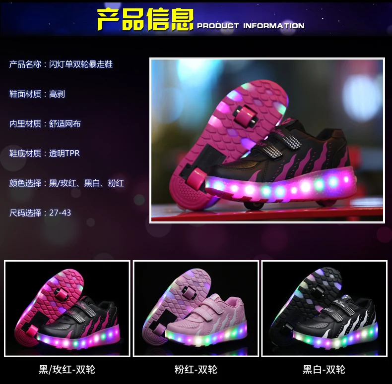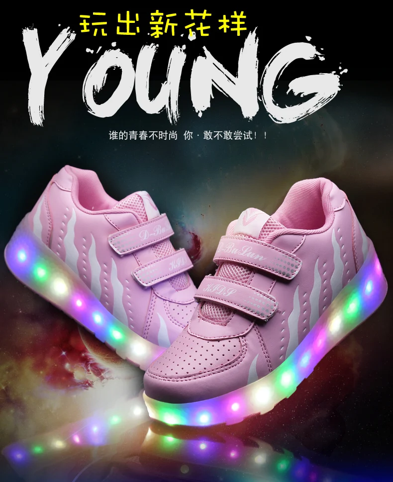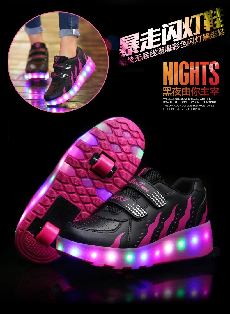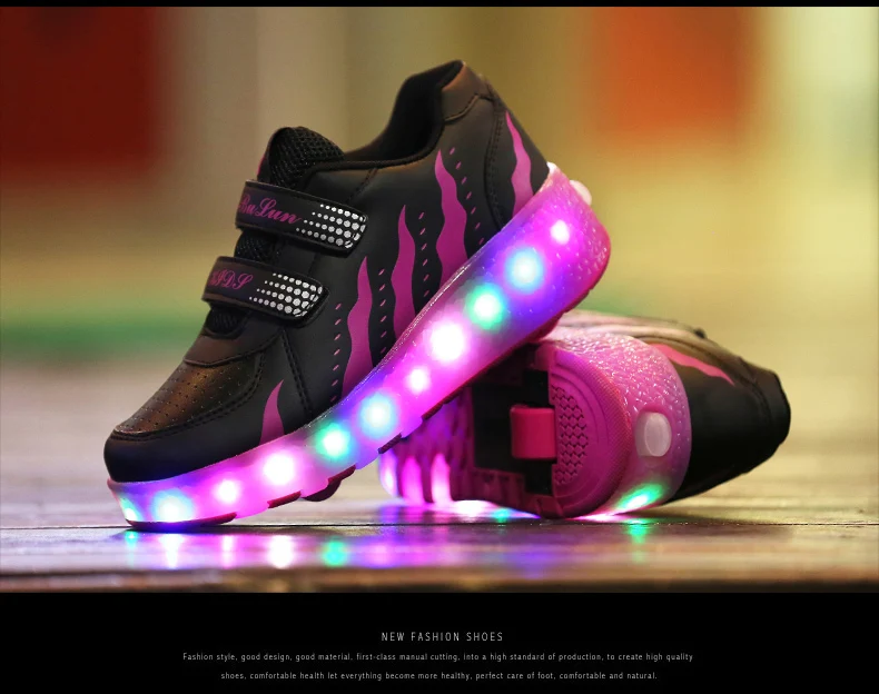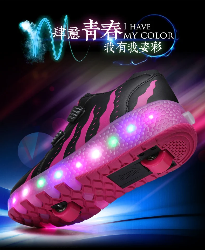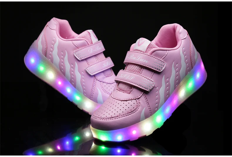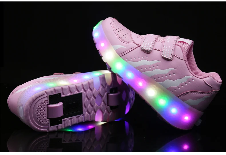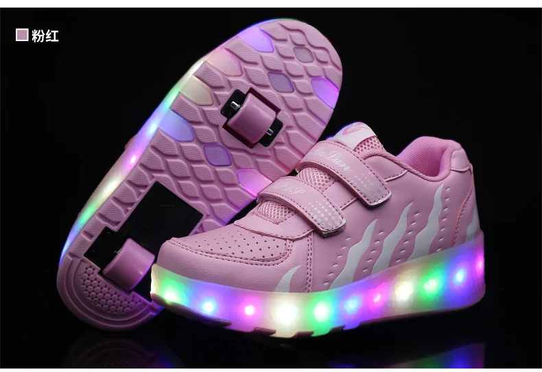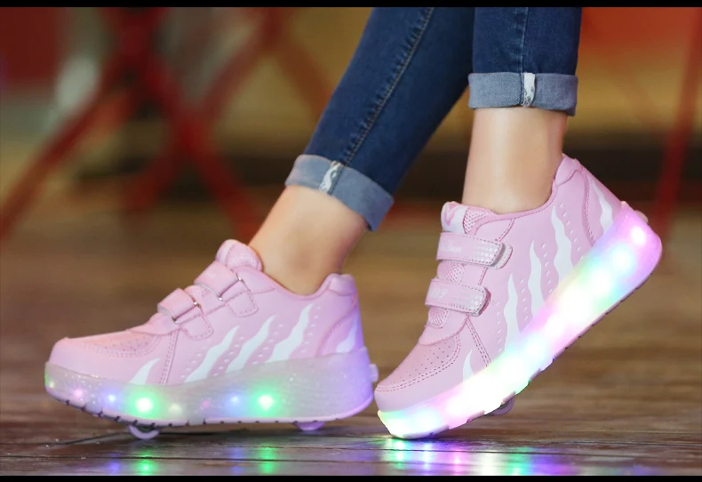 LED Light Children Walk Roller Skate Shoes Girls Boys Pink Deformation Sneakers With 2 Wheels Outdoor Sports Skating Shoes Gift