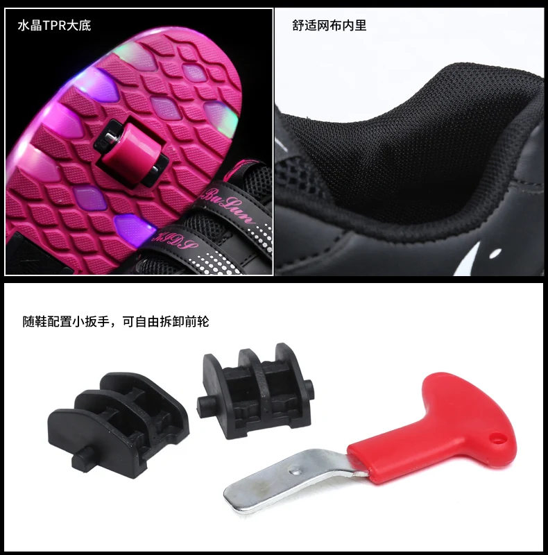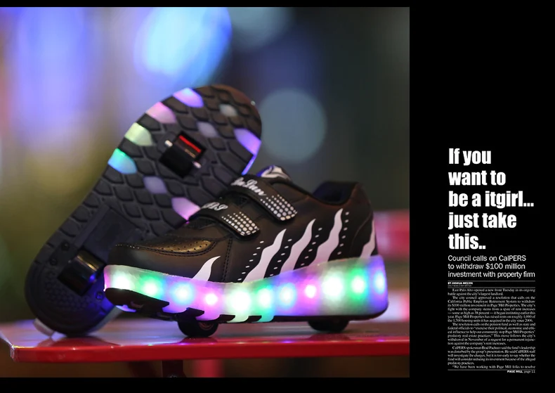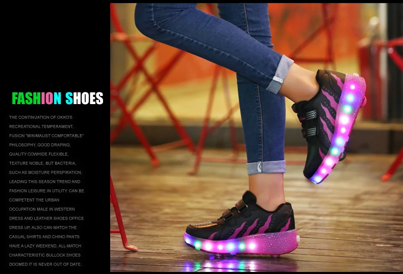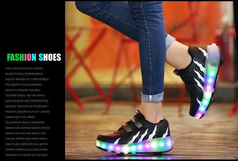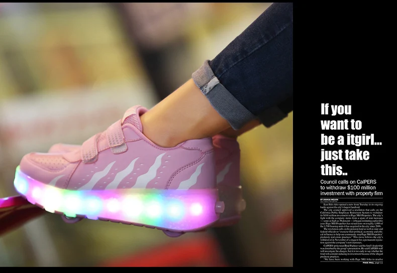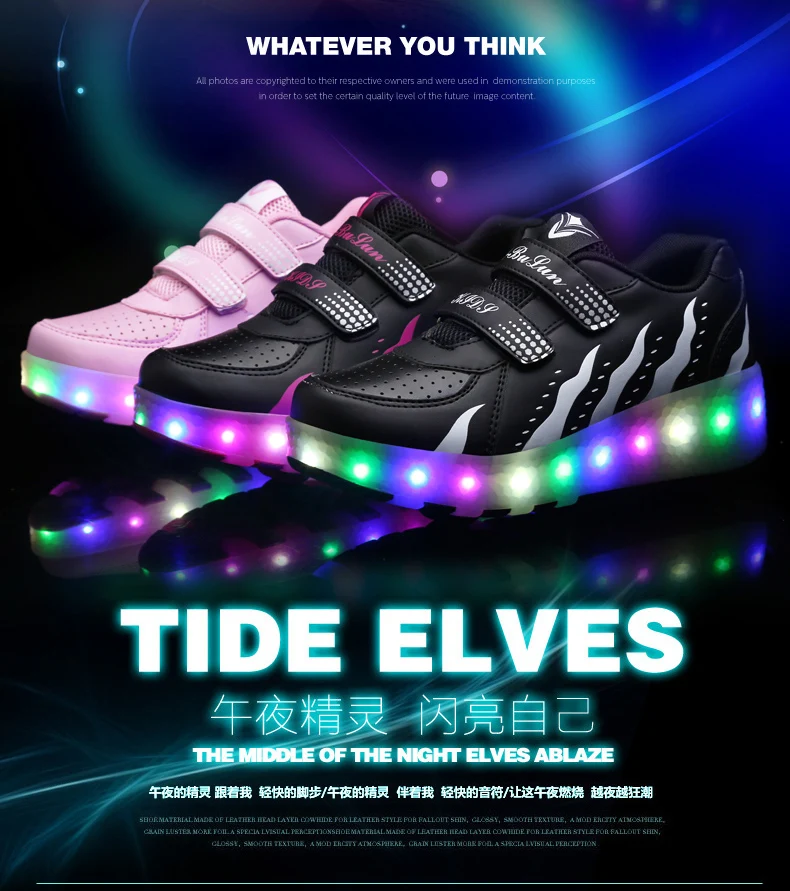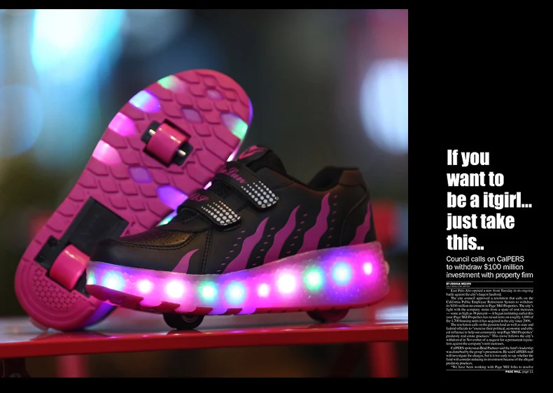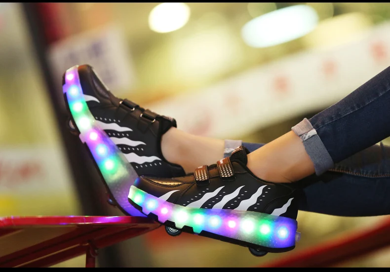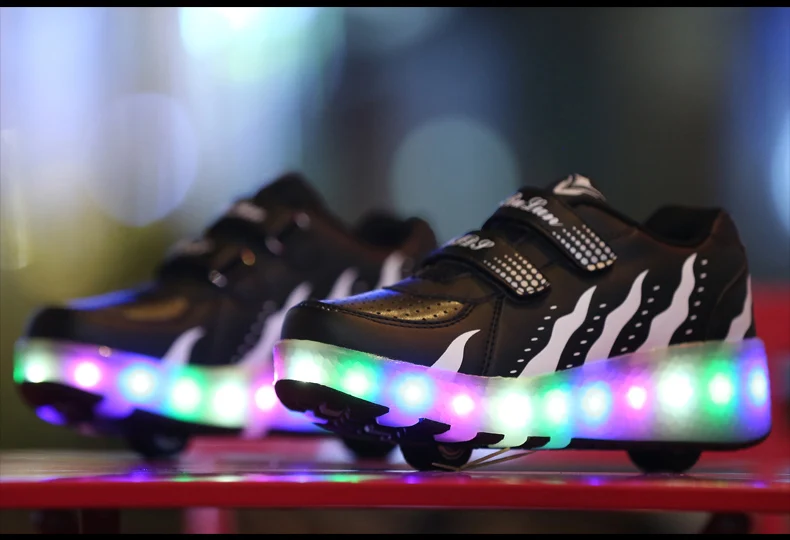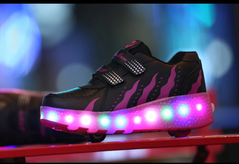 LED Light Children Walk Roller Skate Shoes Girls Boys Pink Deformation Sneakers With 2 Wheels Outdoor Sports Skating Shoes Gift