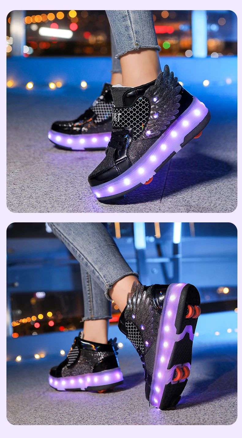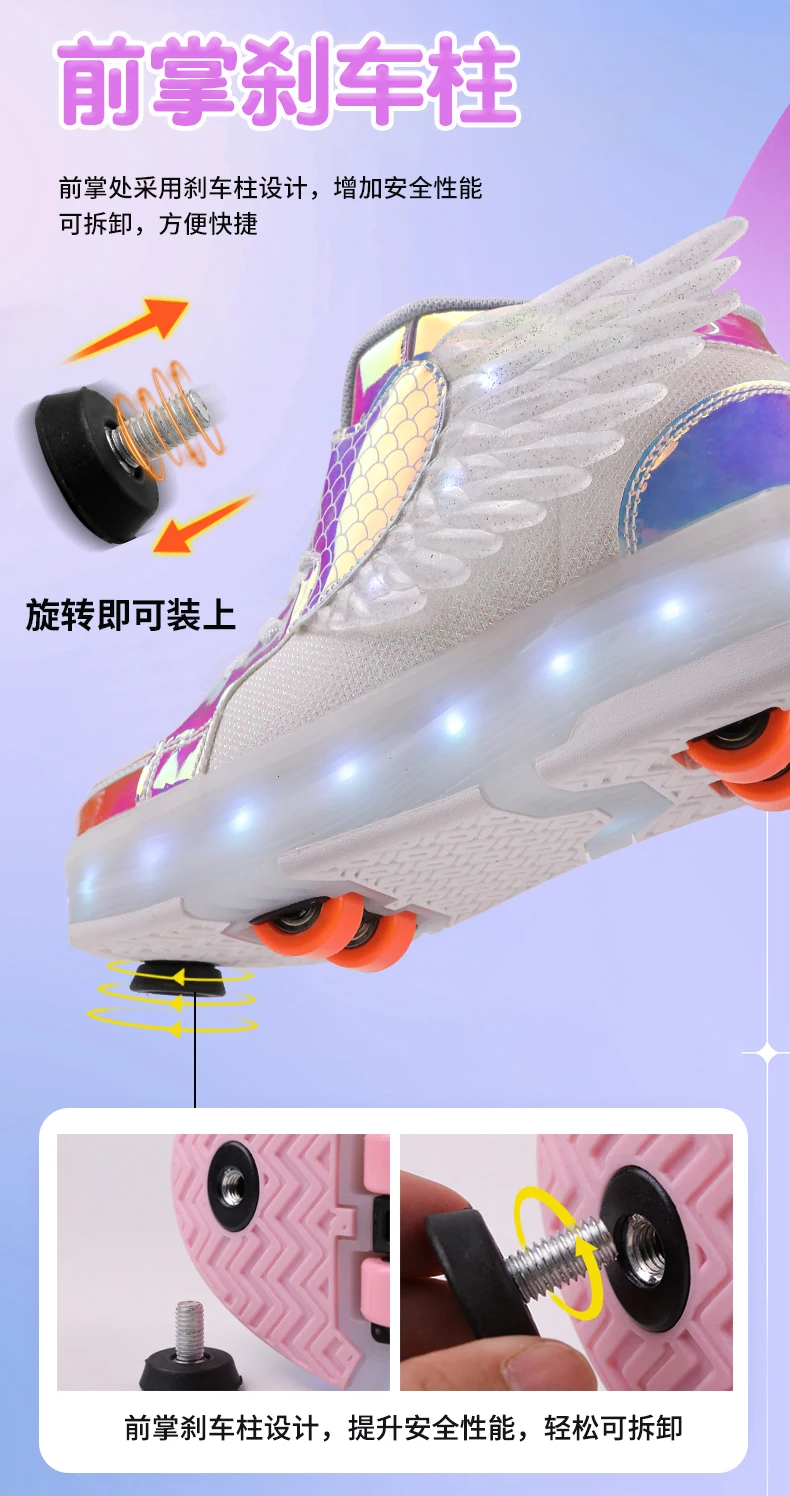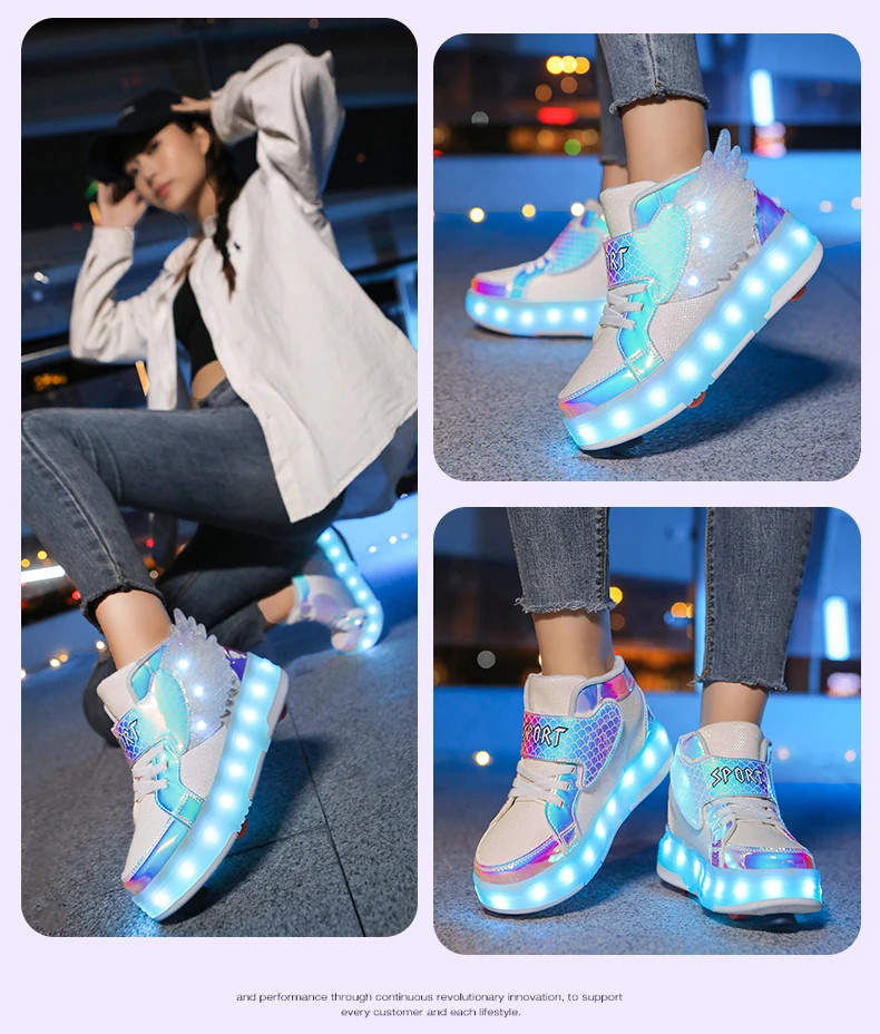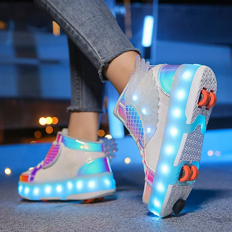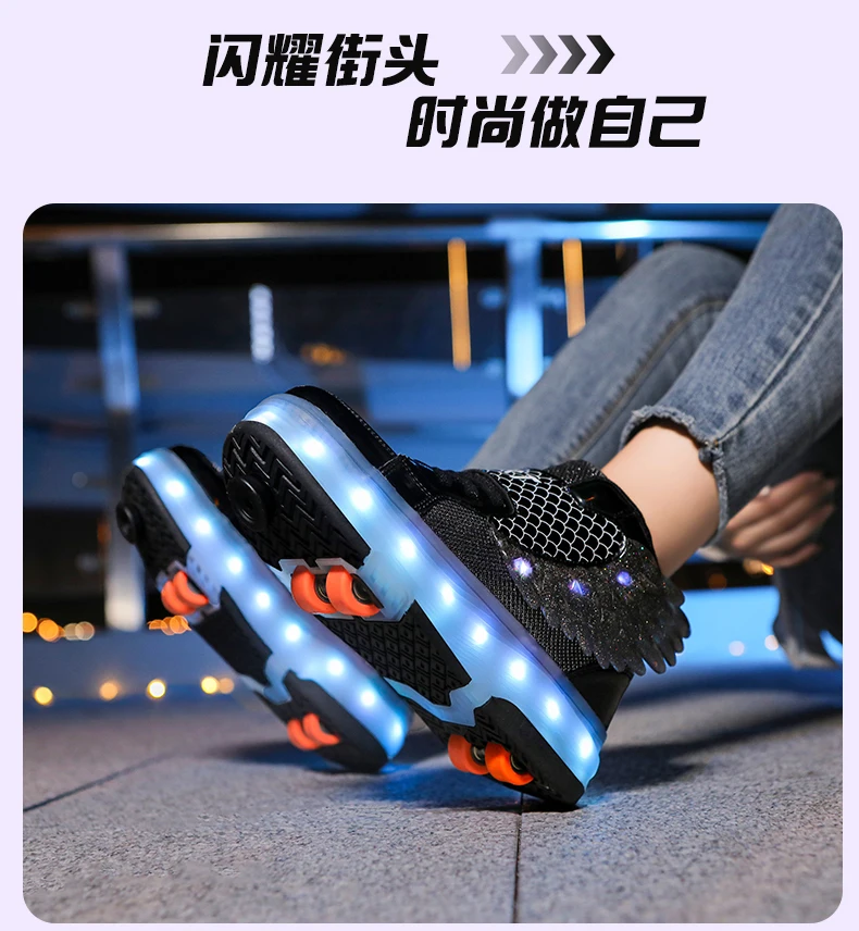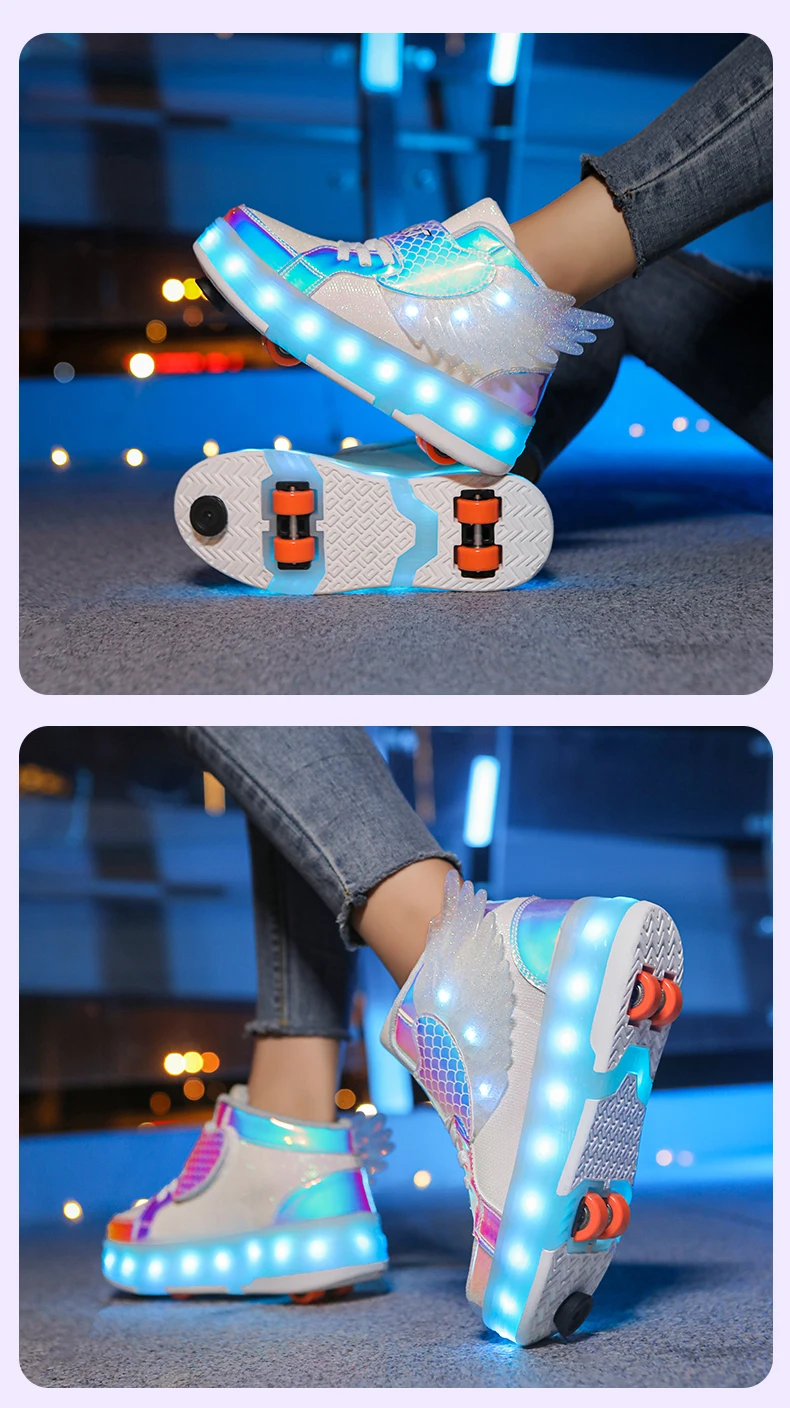 LED Light Kids Roller Skate Shoes Children Boys Girls 4 Wheels Deformation Detachable Parkour Outdoor Skating Shoes Running Gift