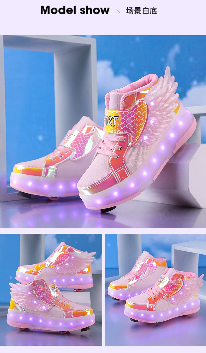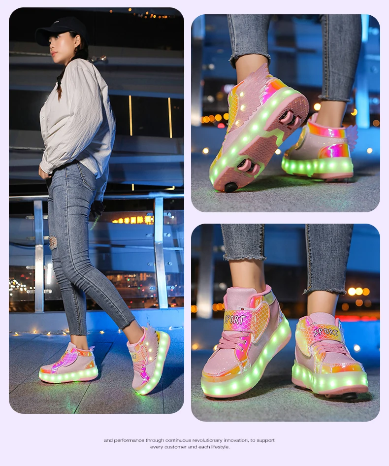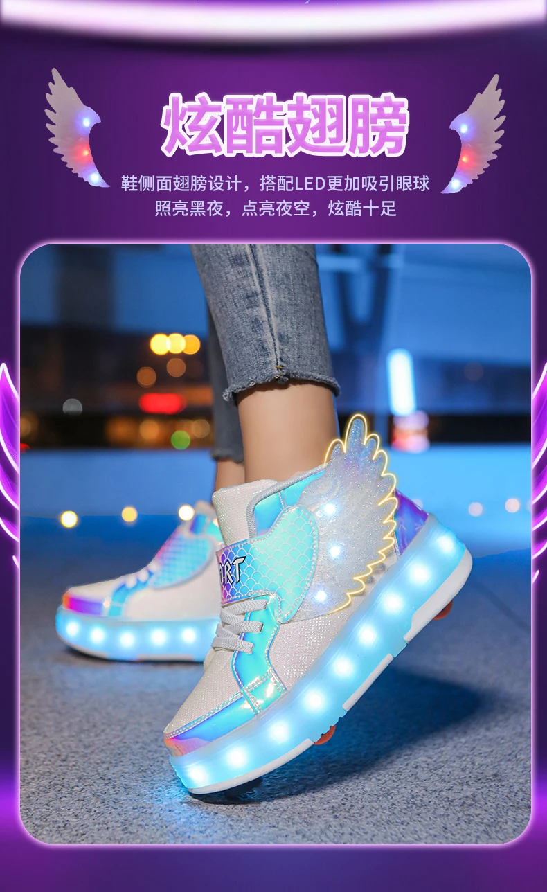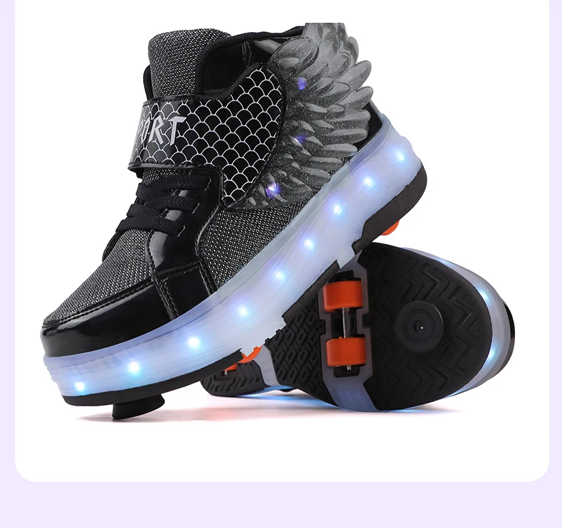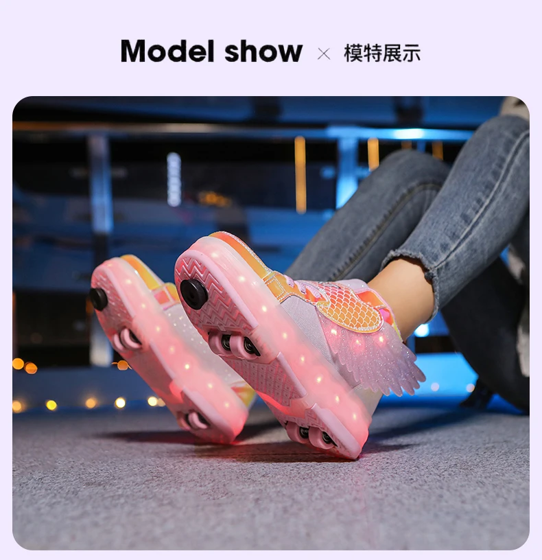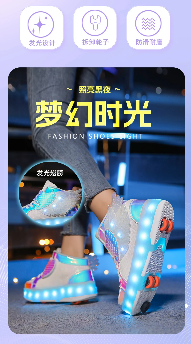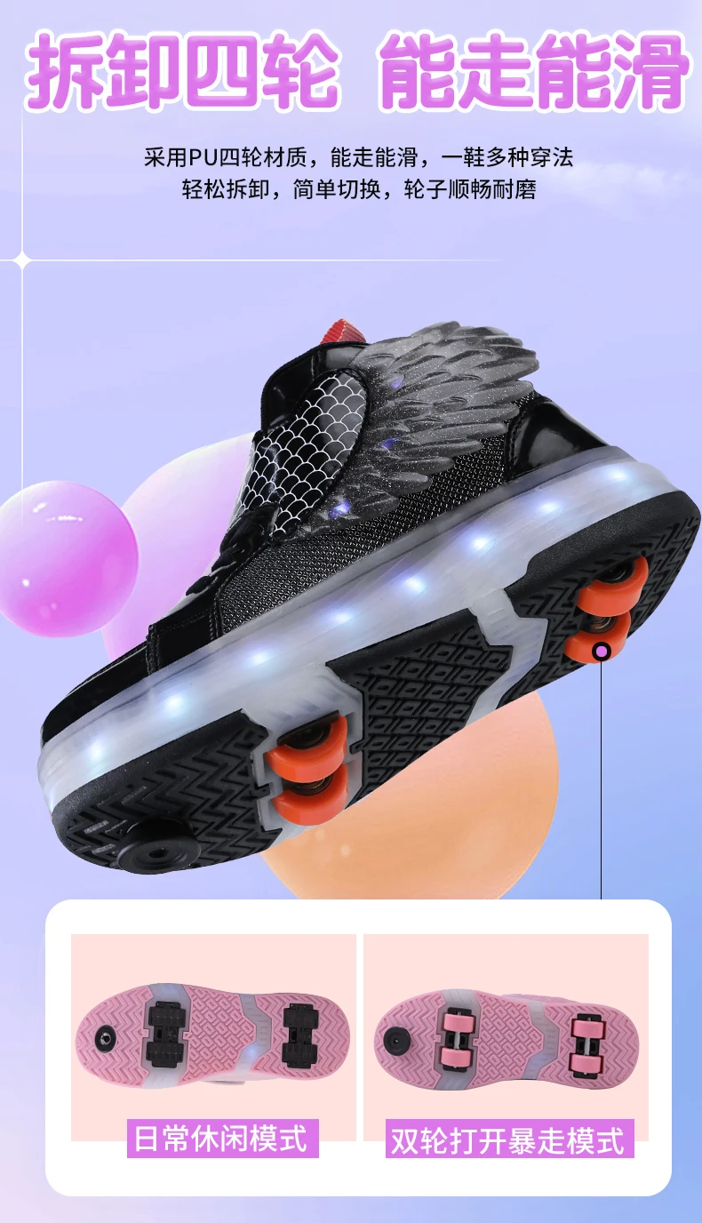 LED Light Kids Roller Skate Shoes Children Boys Girls 4 Wheels Deformation Detachable Parkour Outdoor Skating Shoes Running Gift
