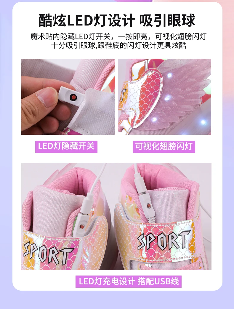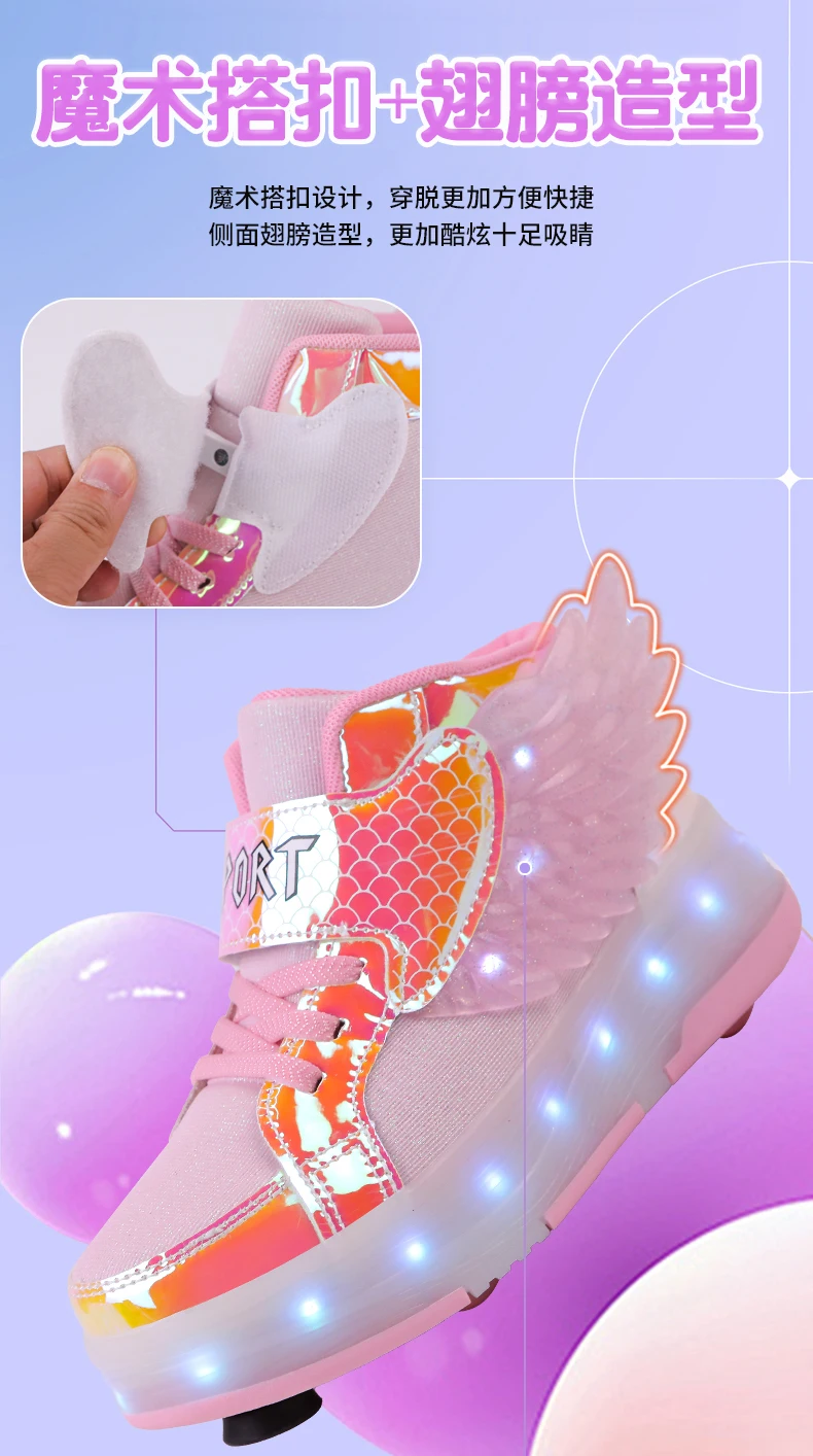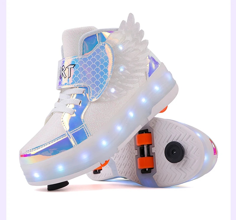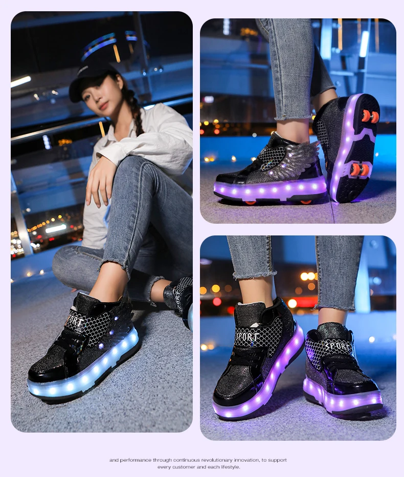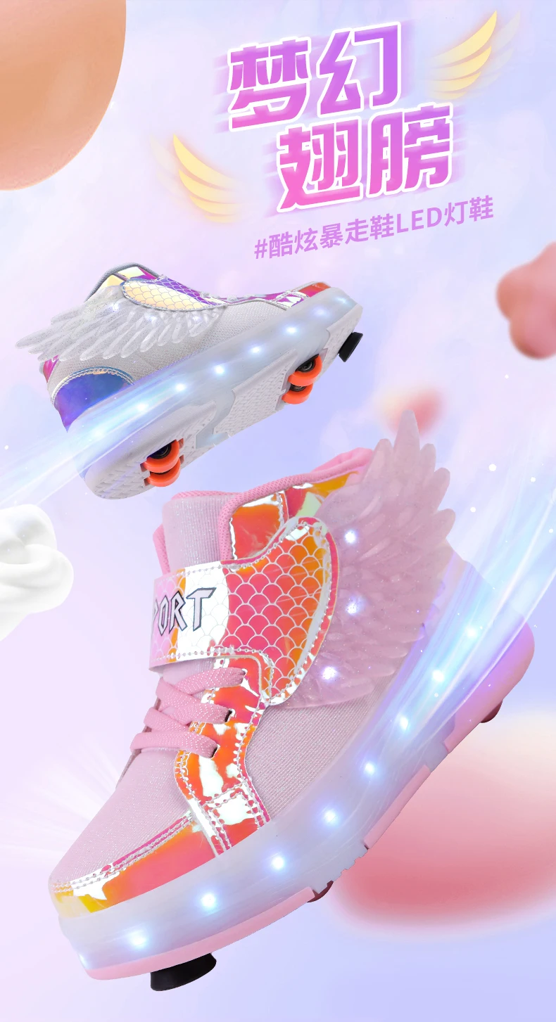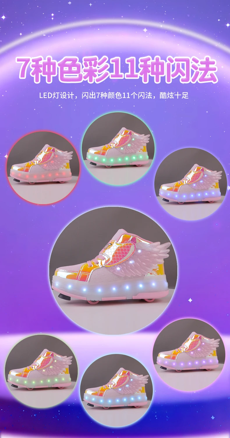 LED Light Kids Roller Skate Shoes Children Boys Girls 4 Wheels Deformation Detachable Parkour Outdoor Skating Shoes Running Gift