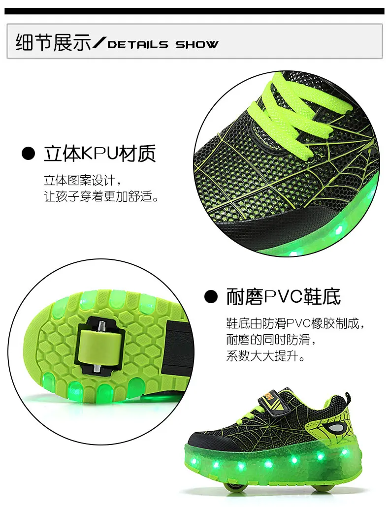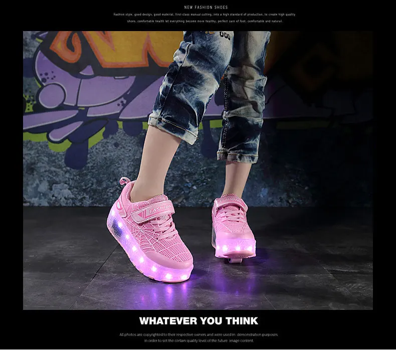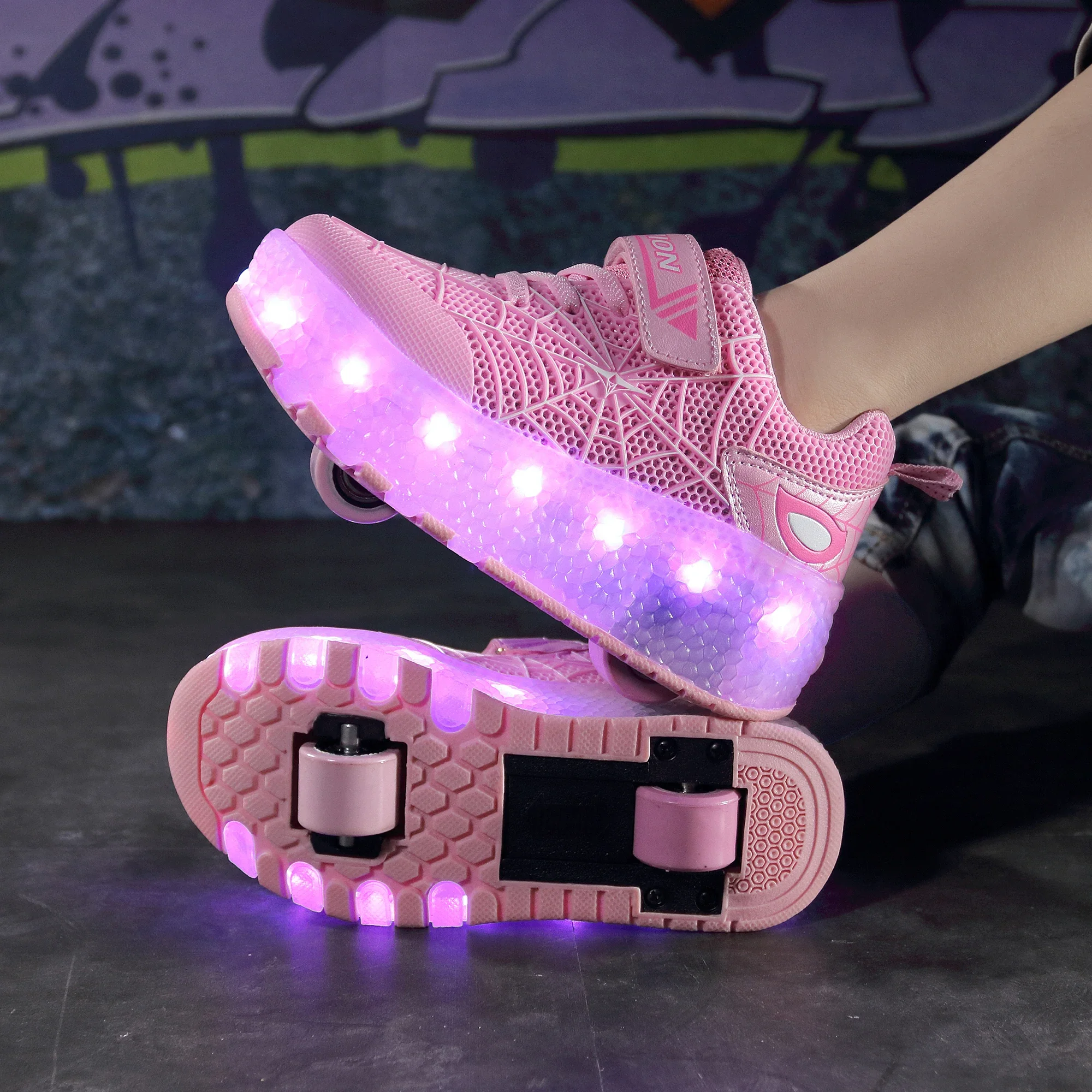 LED Light Kids Roller Skate Shoes Fashion Detachable Children Sports Boys Girls 2 Wheels Outdoor Deformation Skating Shoes Gift
