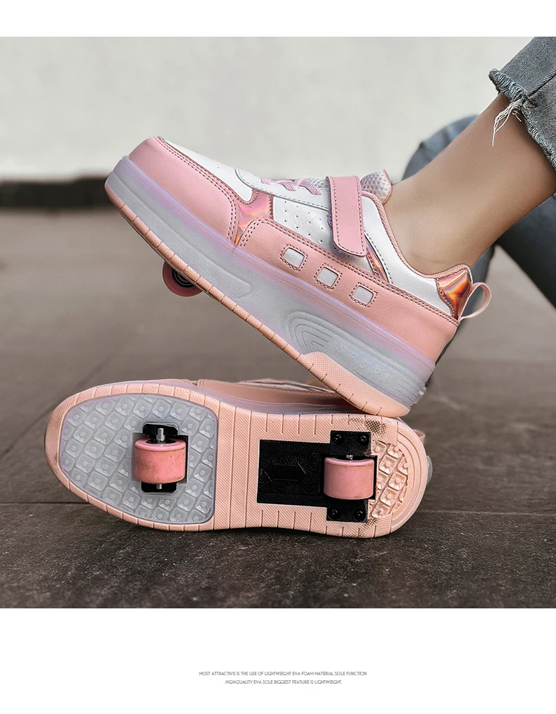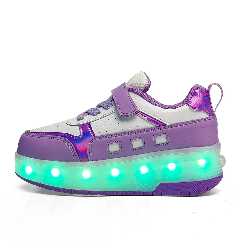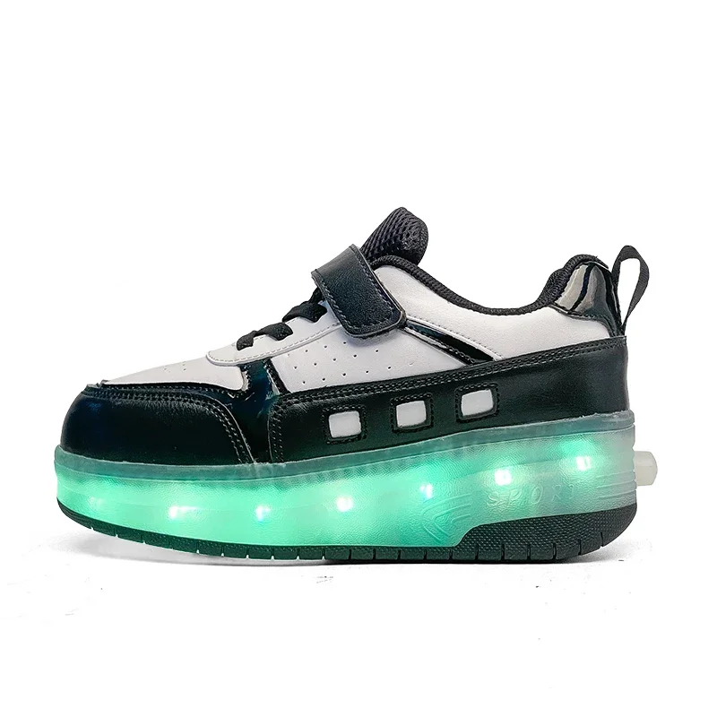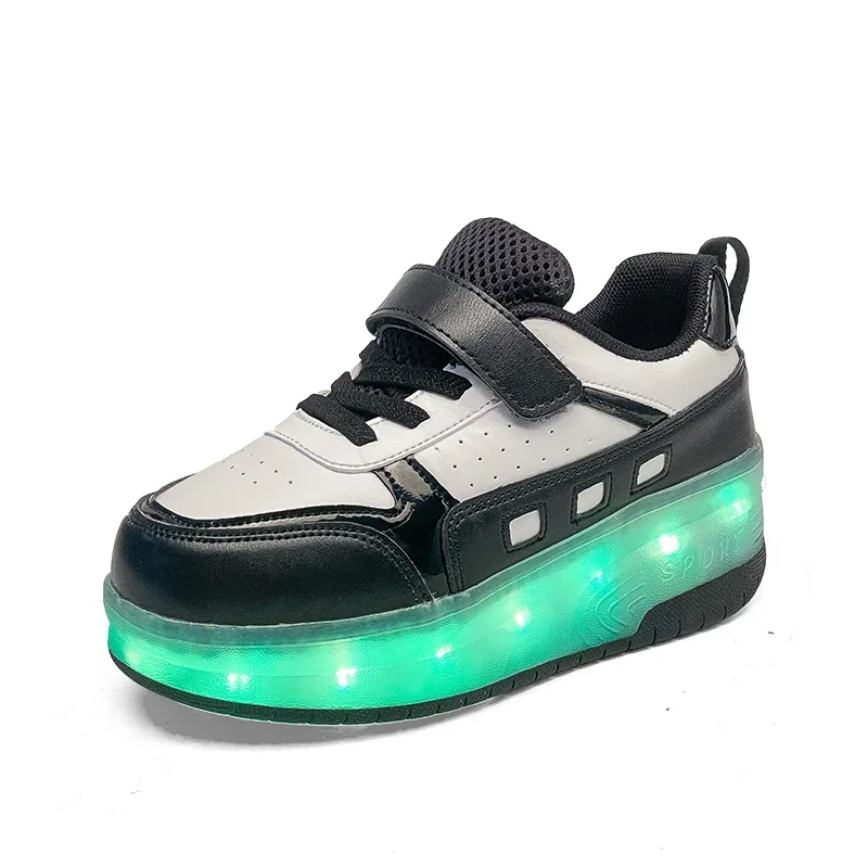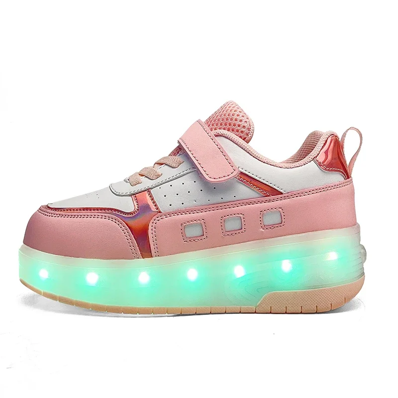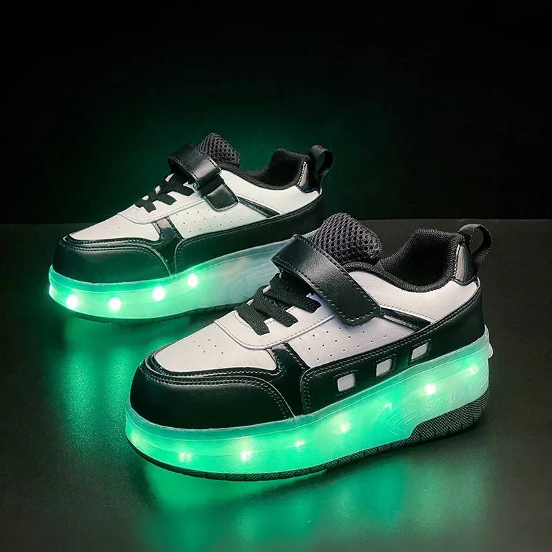 LED Light Kids Roller Skate Shoes Outdoor Deformation Fashion Children Sports Boys Girls Detachable 2 Wheels Skating Shoes Gift