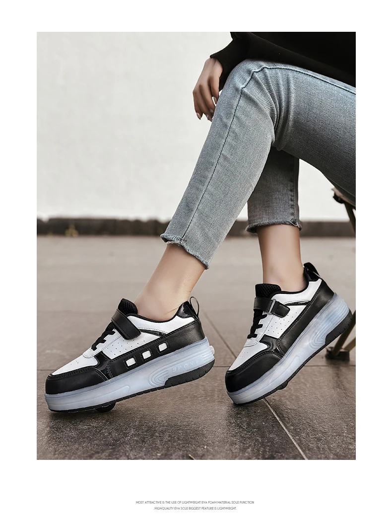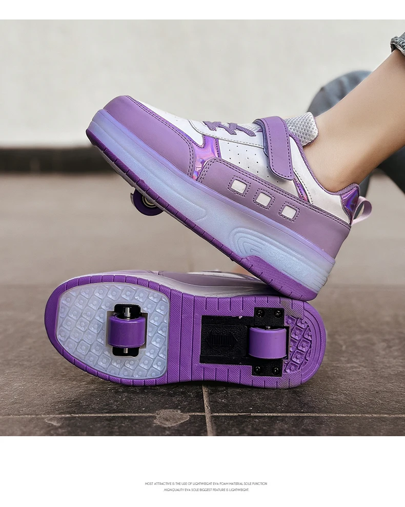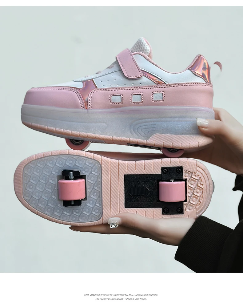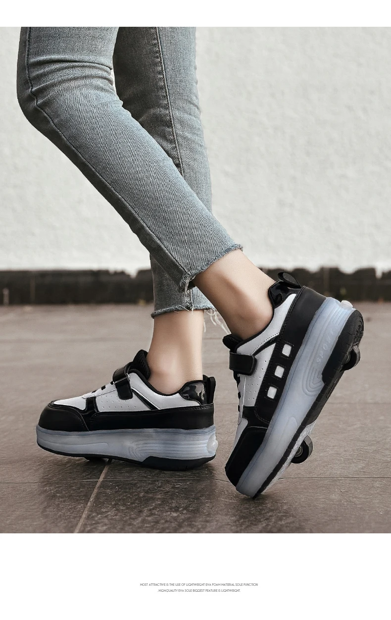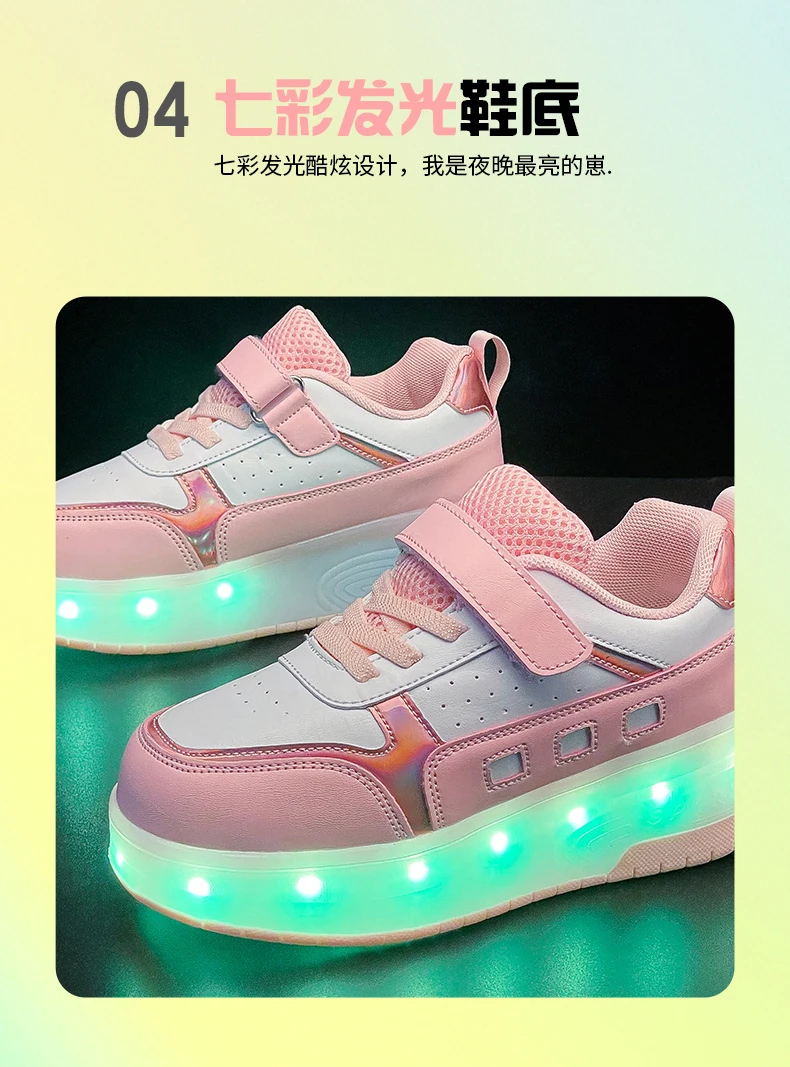 LED Light Kids Roller Skate Shoes Outdoor Deformation Fashion Children Sports Boys Girls Detachable 2 Wheels Skating Shoes Gift