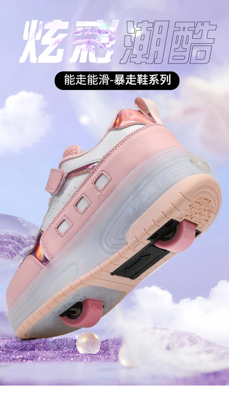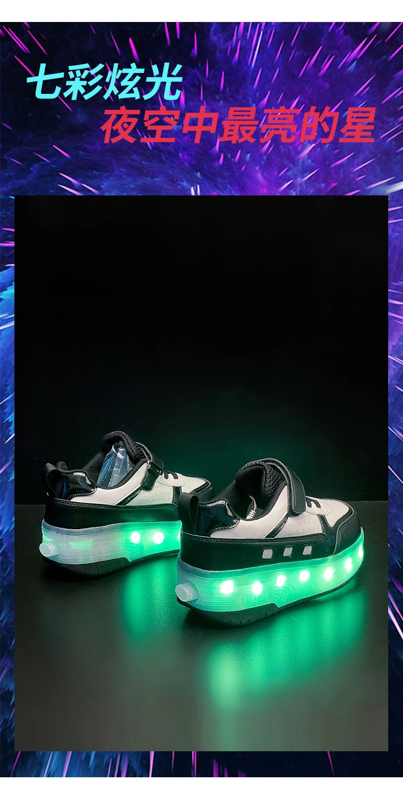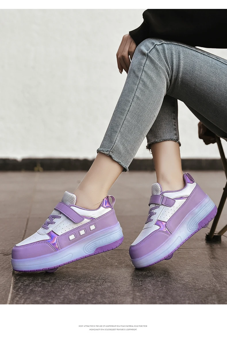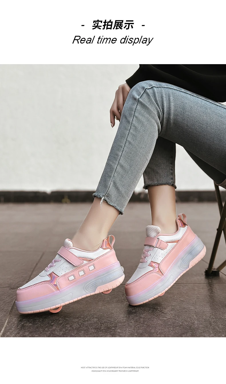 LED Light Kids Roller Skate Shoes Outdoor Deformation Fashion Children Sports Boys Girls Detachable 2 Wheels Skating Shoes Gift