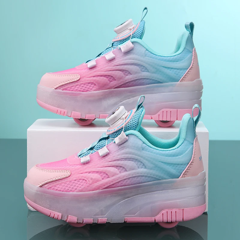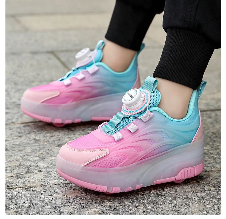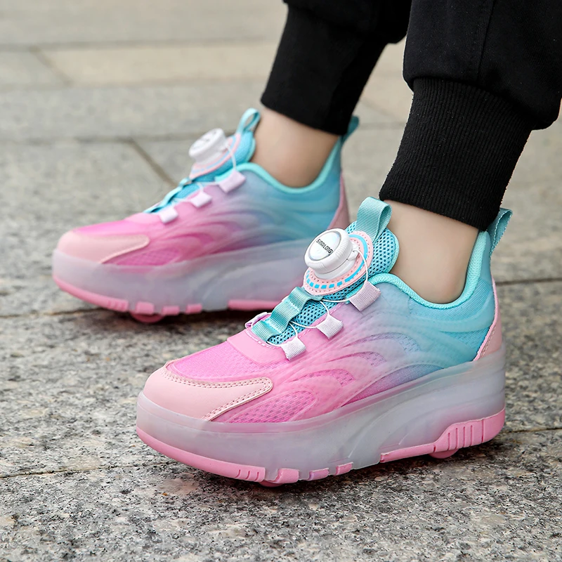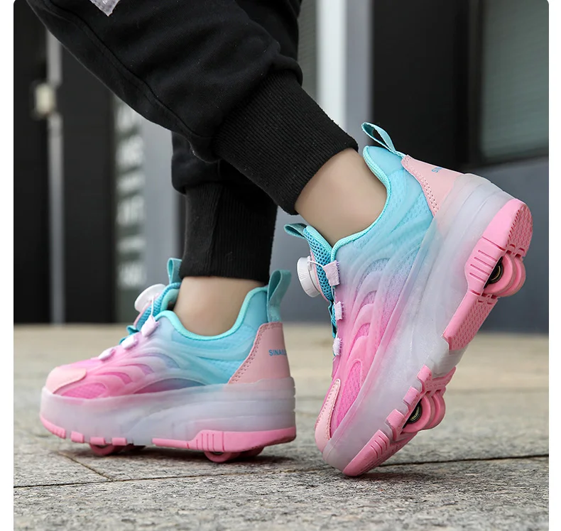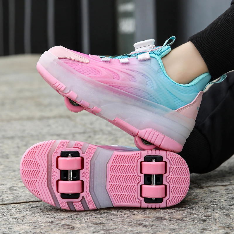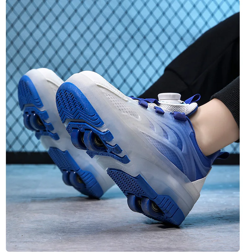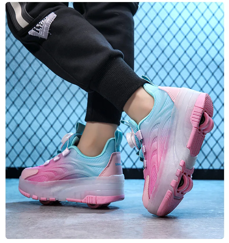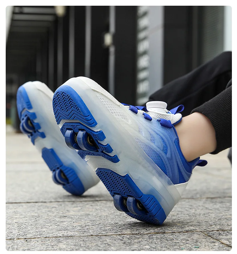LED Light Kids Roller Skating Shoes Detachable Boys Girls 2 Wheels Gift Children Parkour Skate Shoes Outdoor Deformation Running