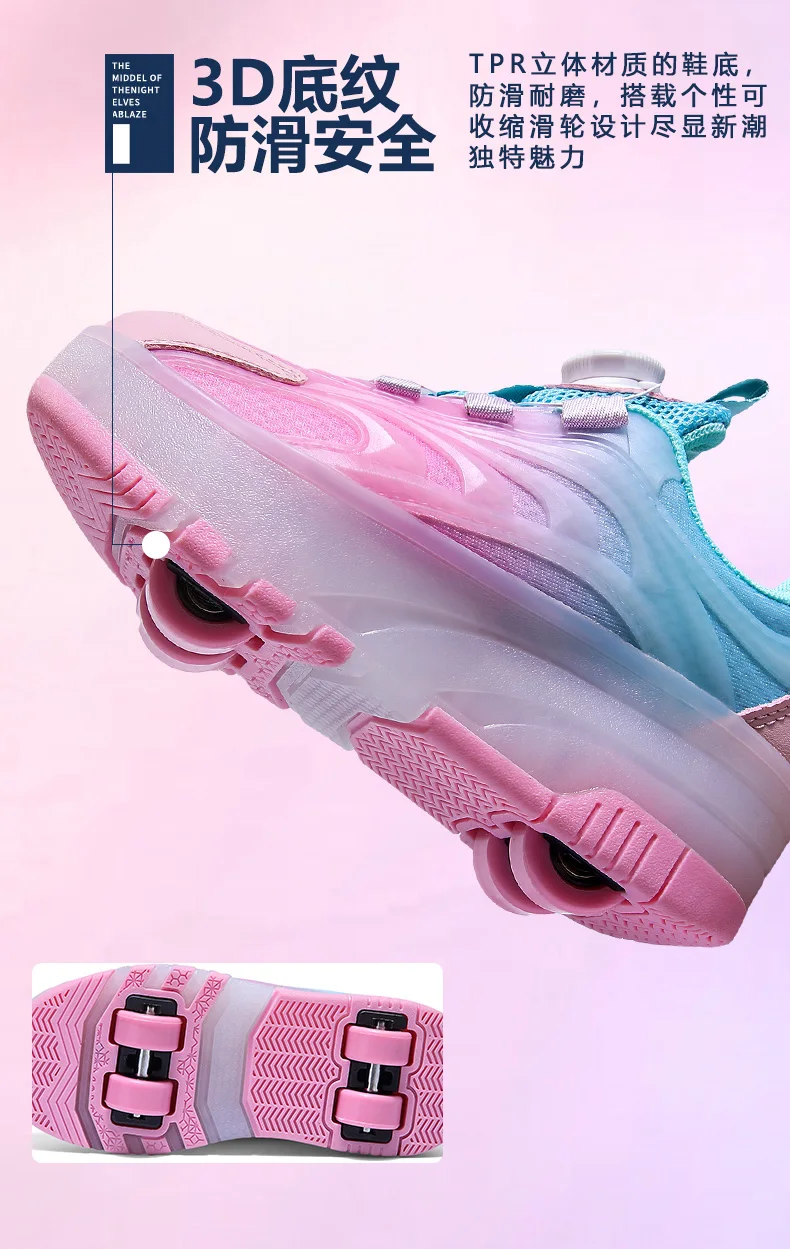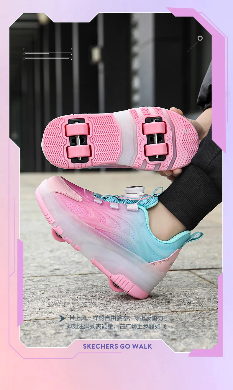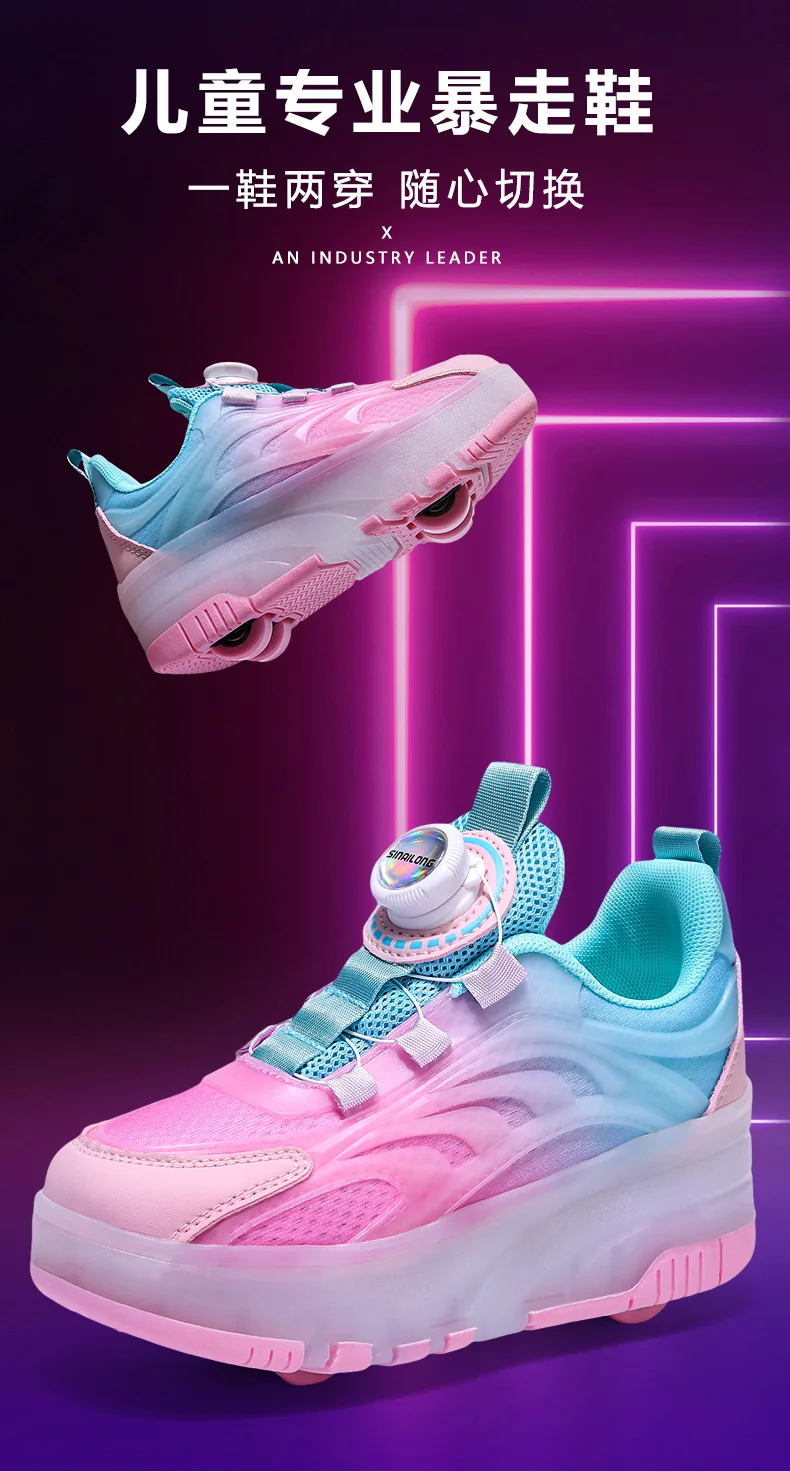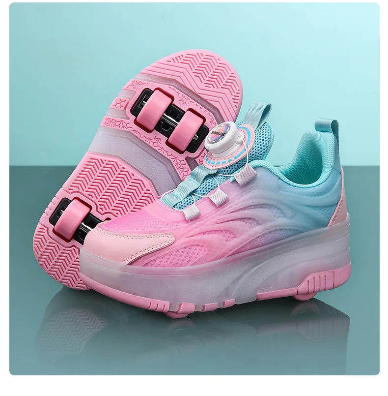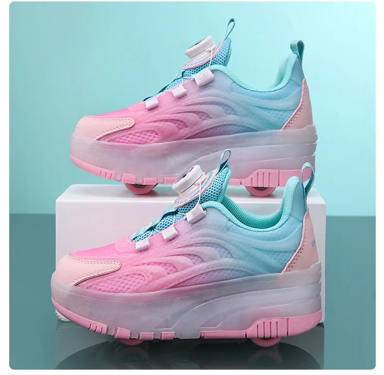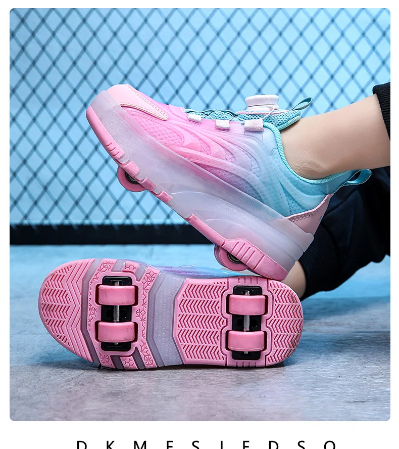 LED Light Kids Roller Skating Shoes Detachable Boys Girls 2 Wheels Gift Children Parkour Skate Shoes Outdoor Deformation Running