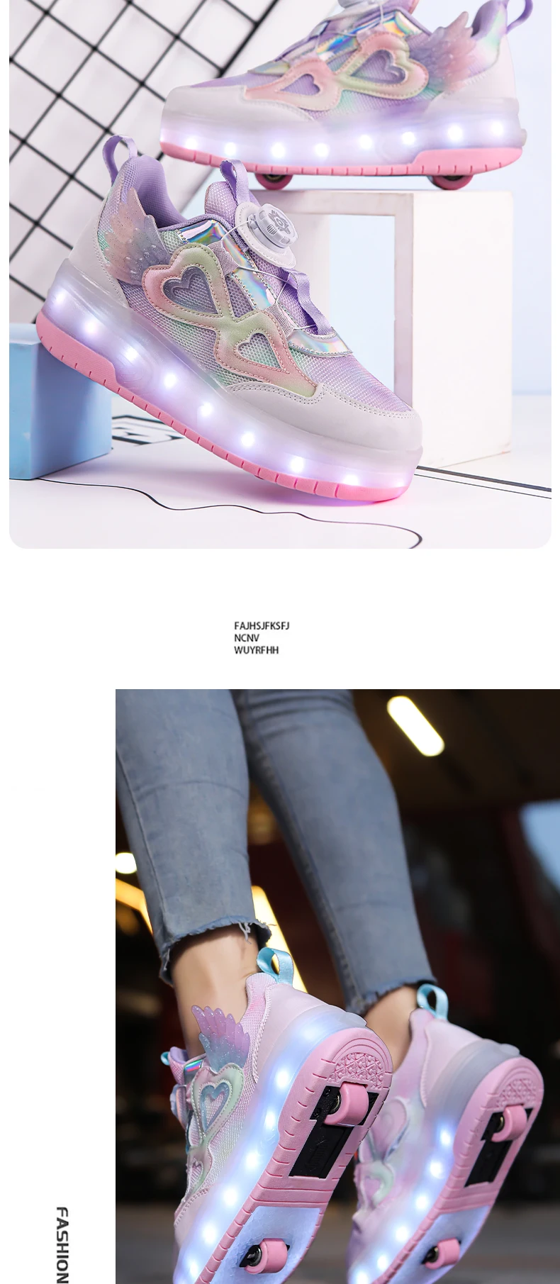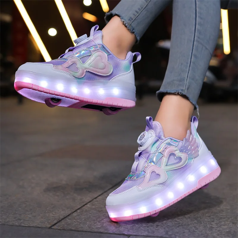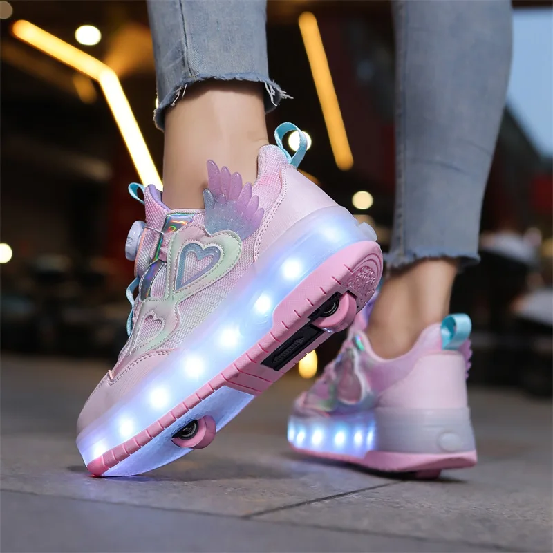LED Light Kids Roller Skating Shoes Parkour Detachable Gift Boys Girls 2 Wheels Children Skate Shoes Outdoor Deformation Running