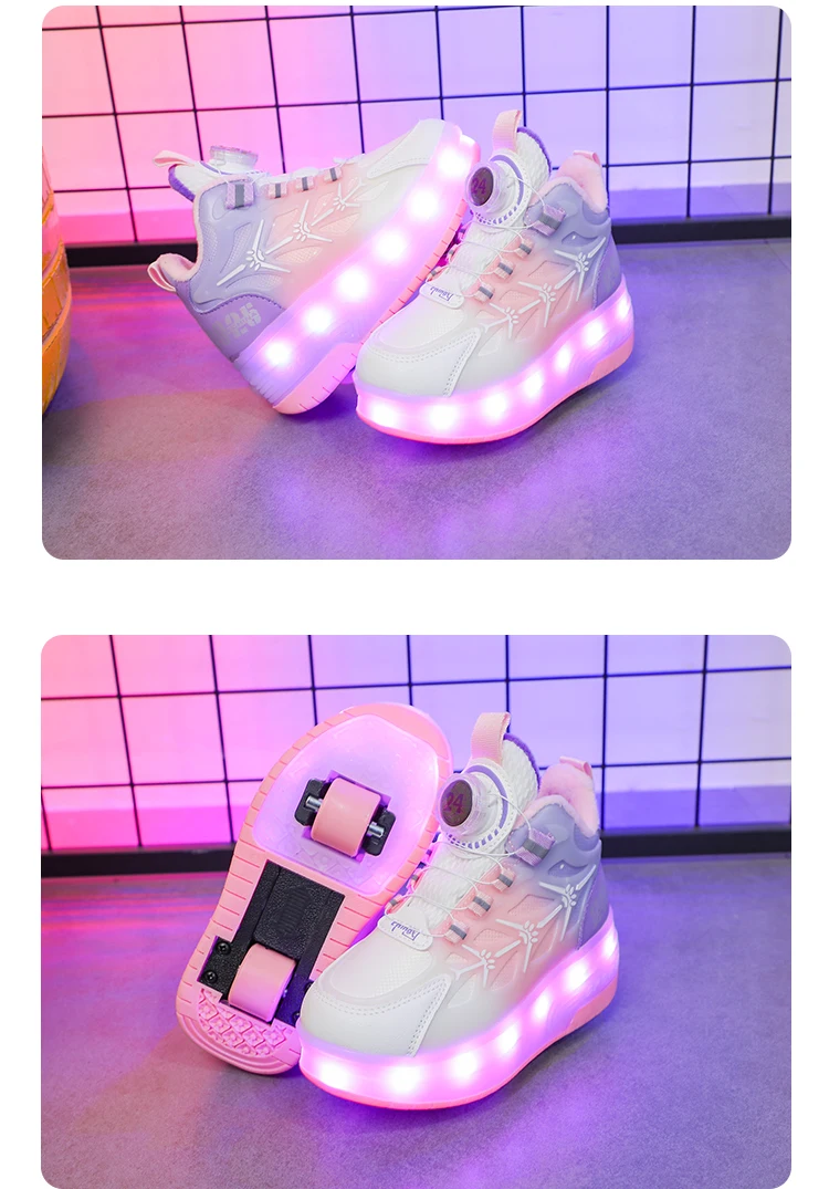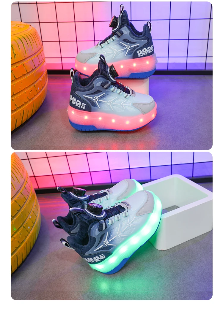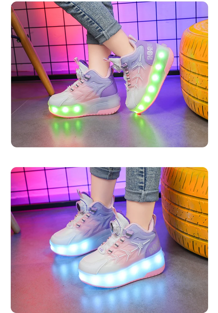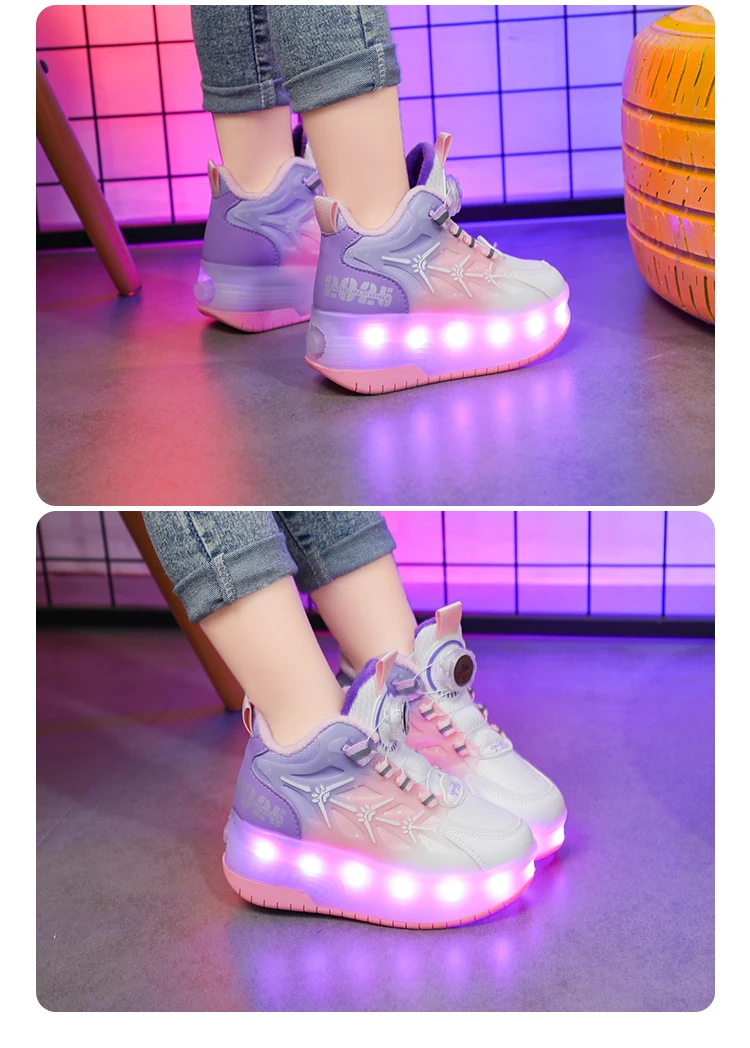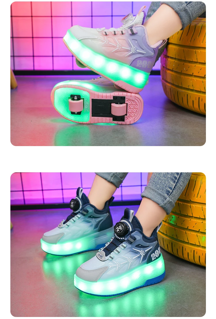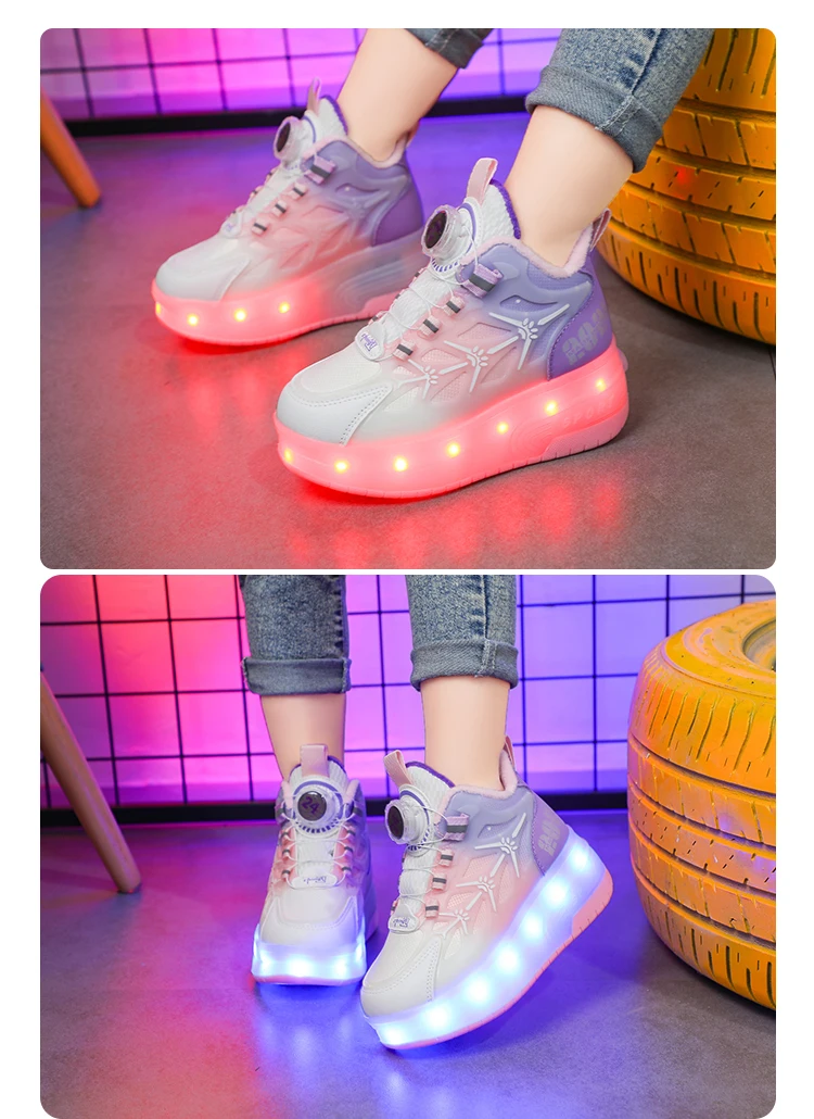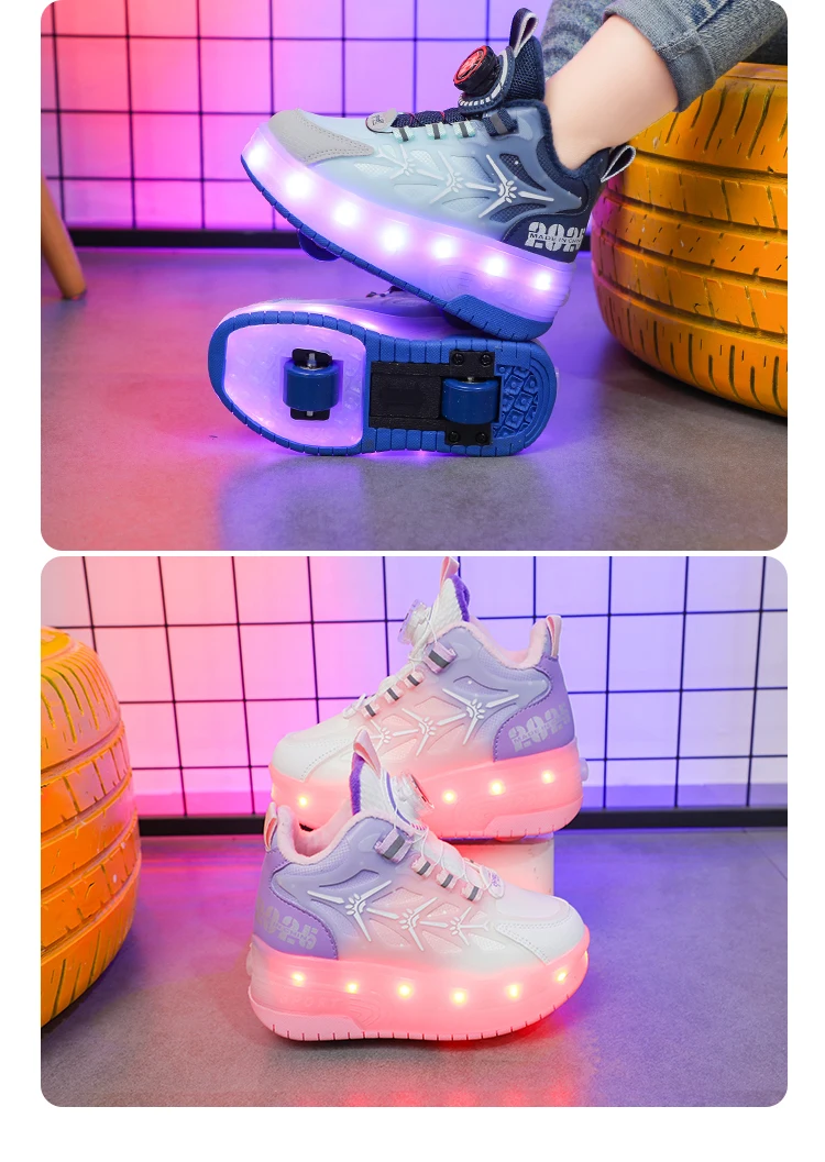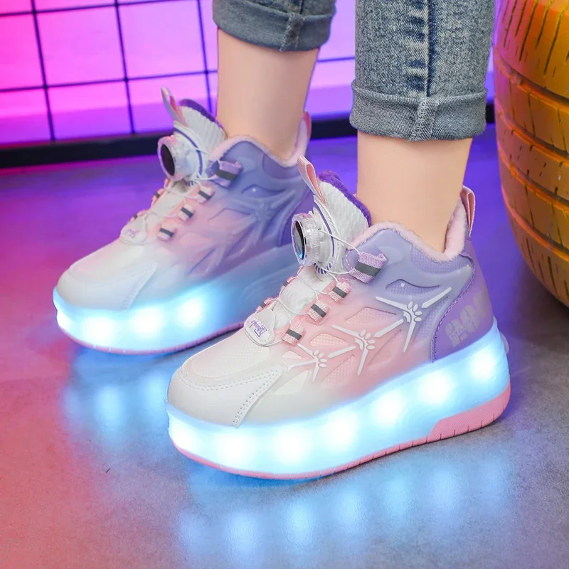LED Light Winter Kids Roller Skate Shoes Girls Boys 2 Wheels Parkour Skating Shoes Children Detachable Running Deformation Gift