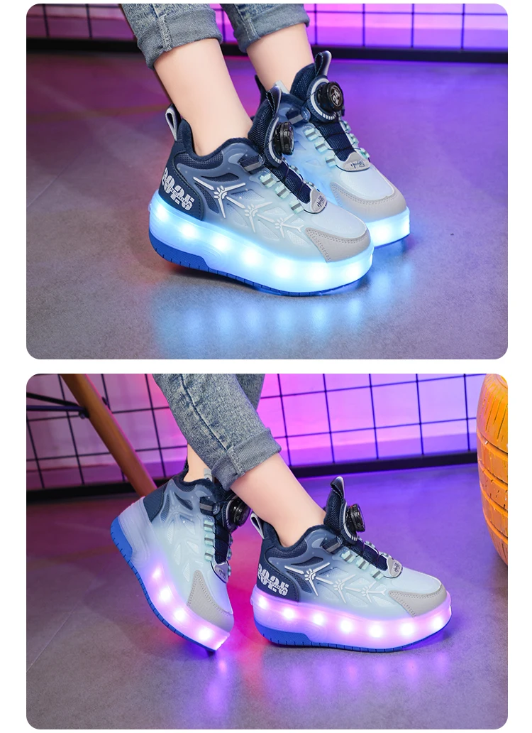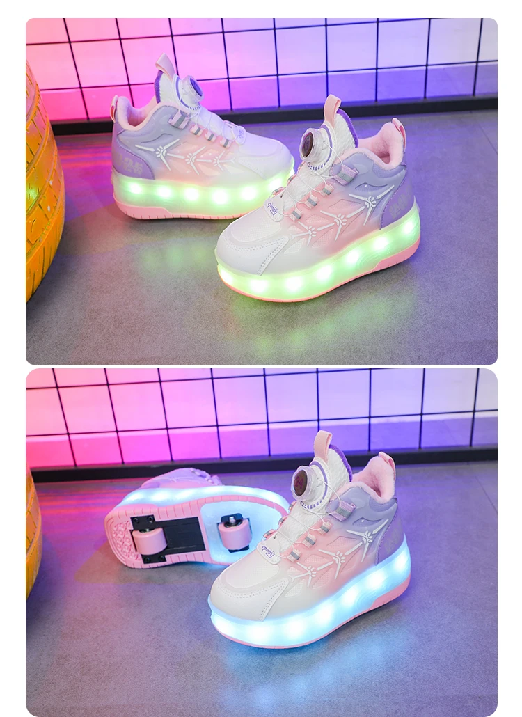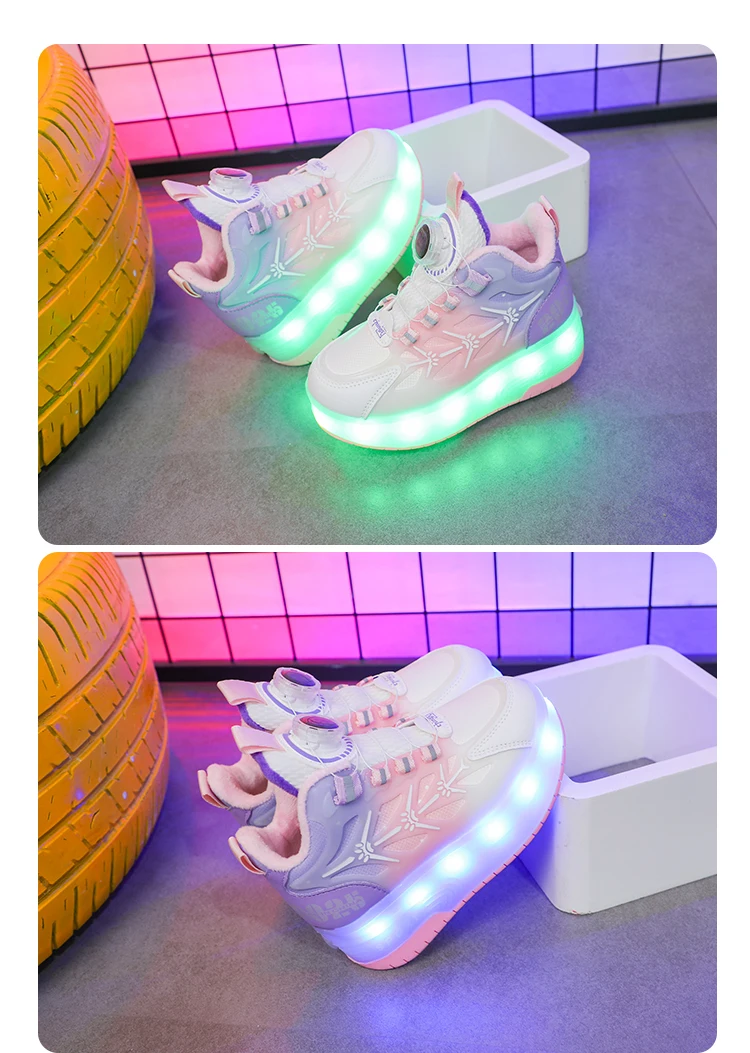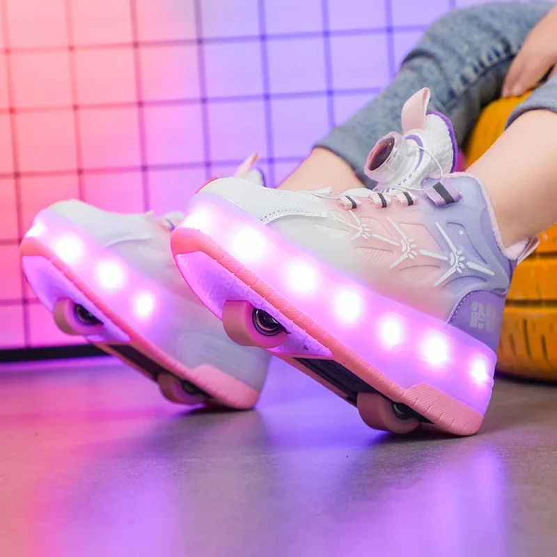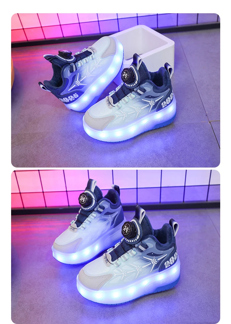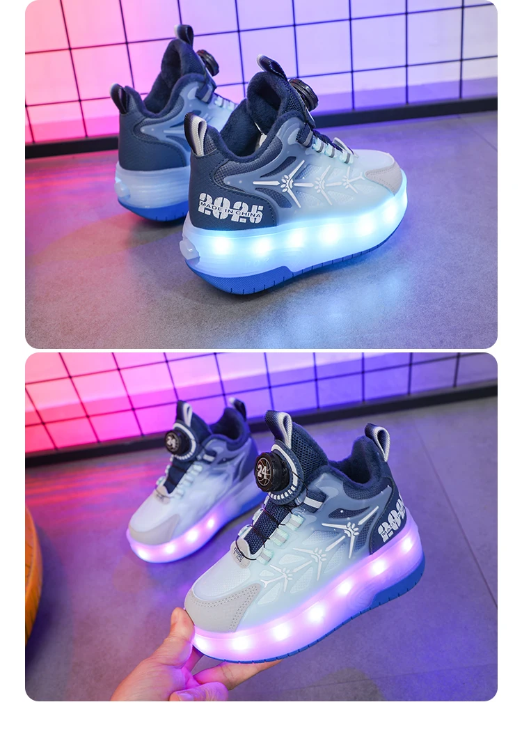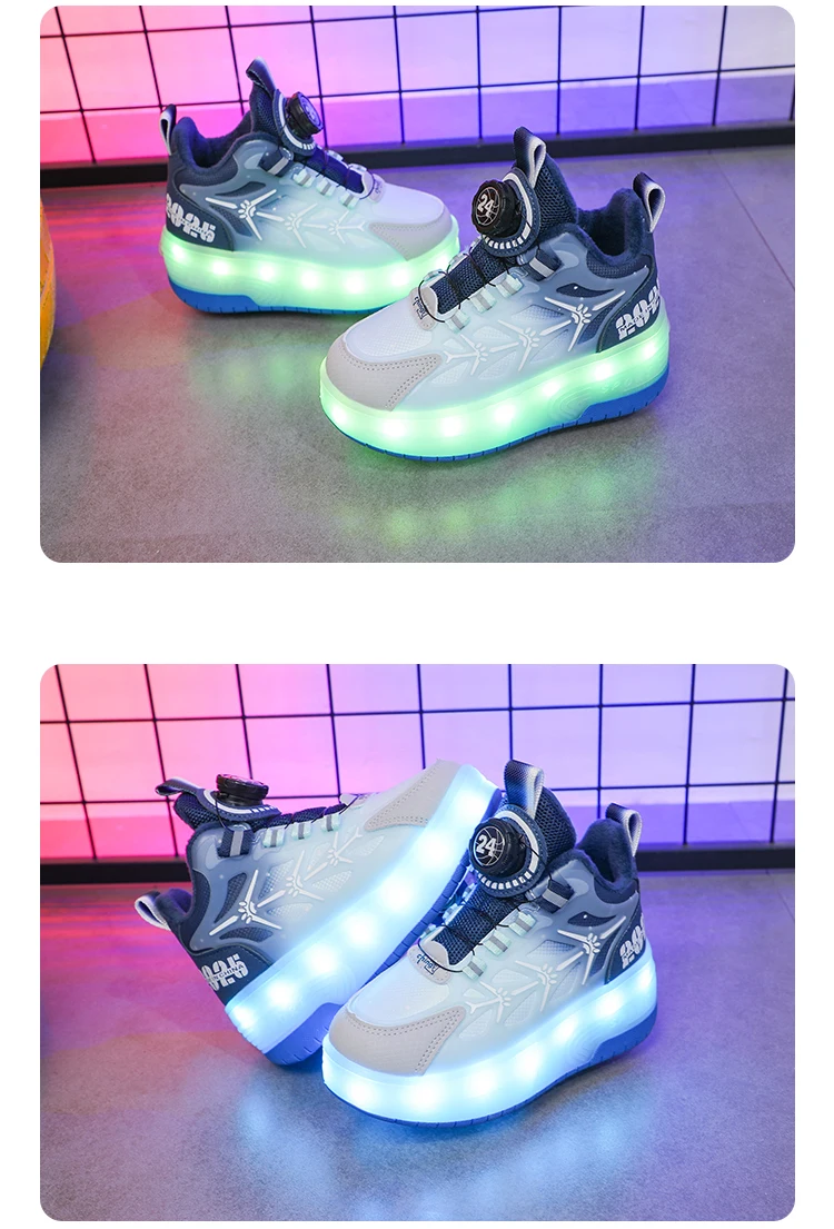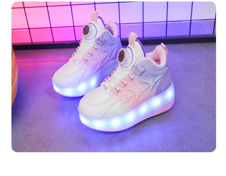 LED Light Winter Kids Roller Skate Shoes Girls Boys 2 Wheels Parkour Skating Shoes Children Detachable Running Deformation Gift