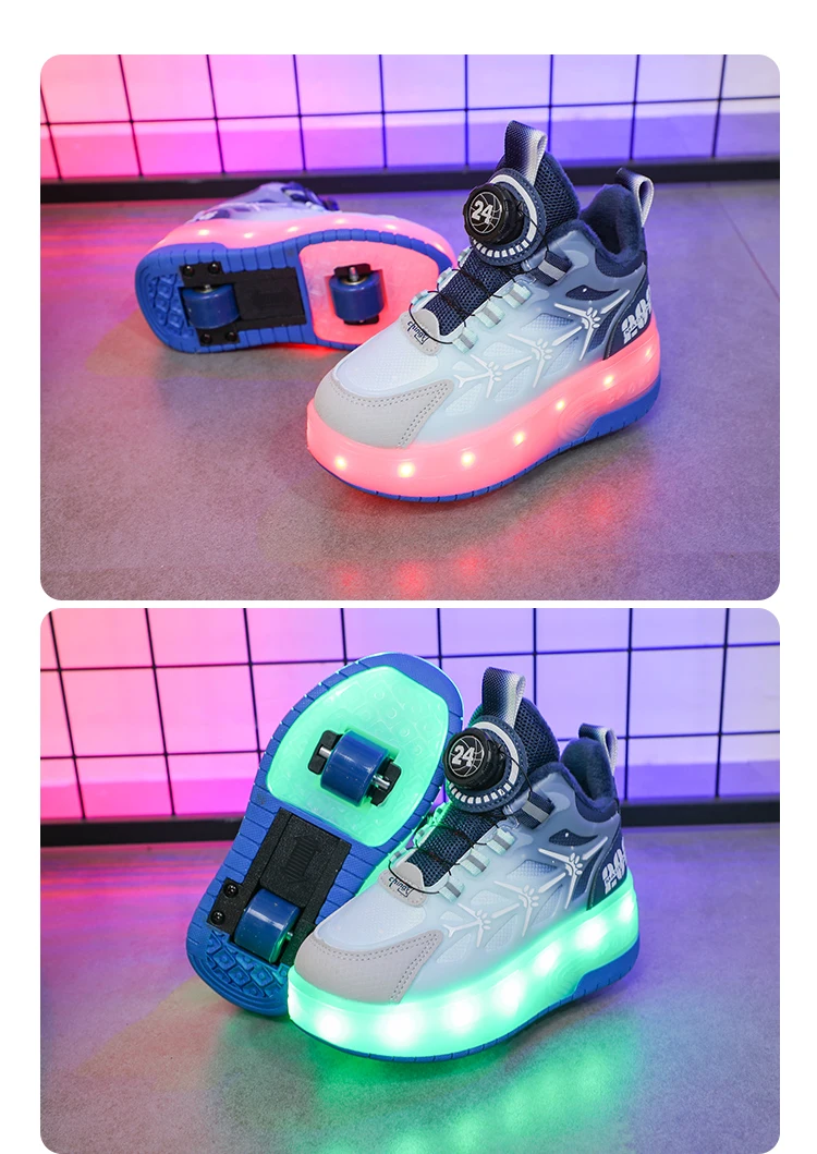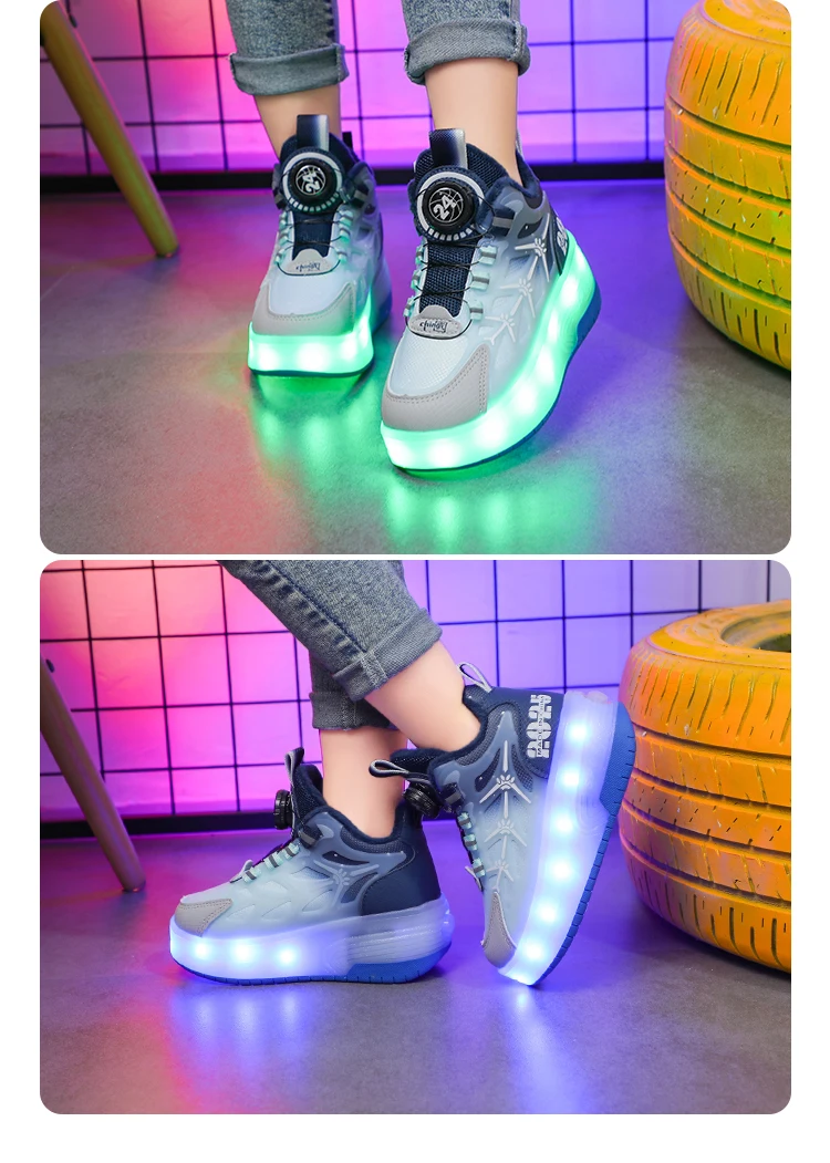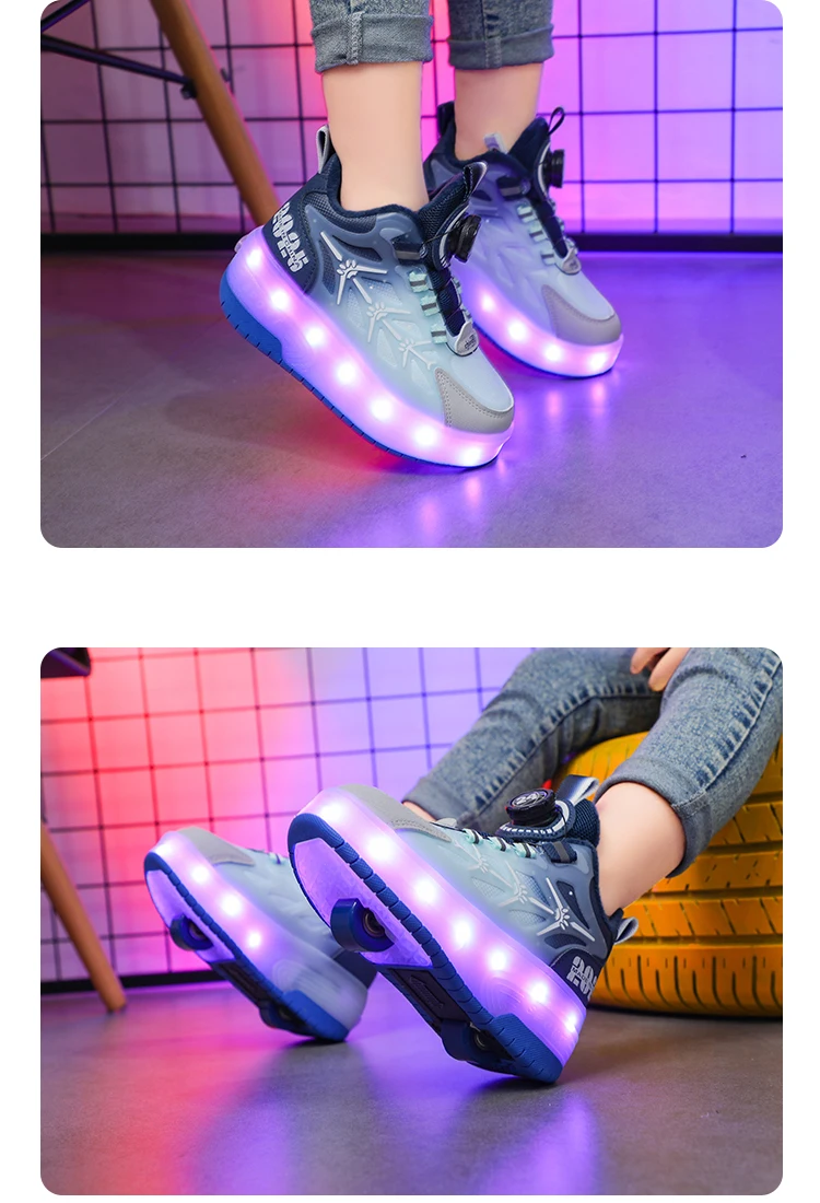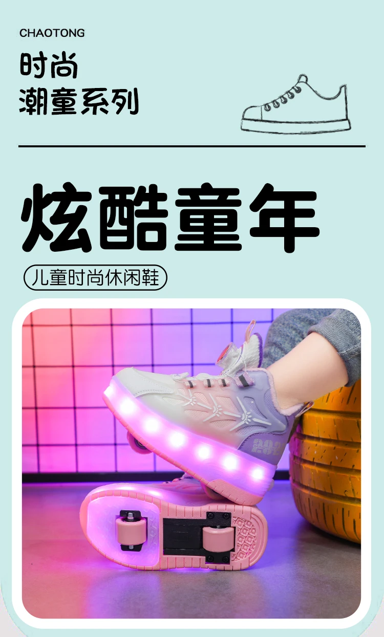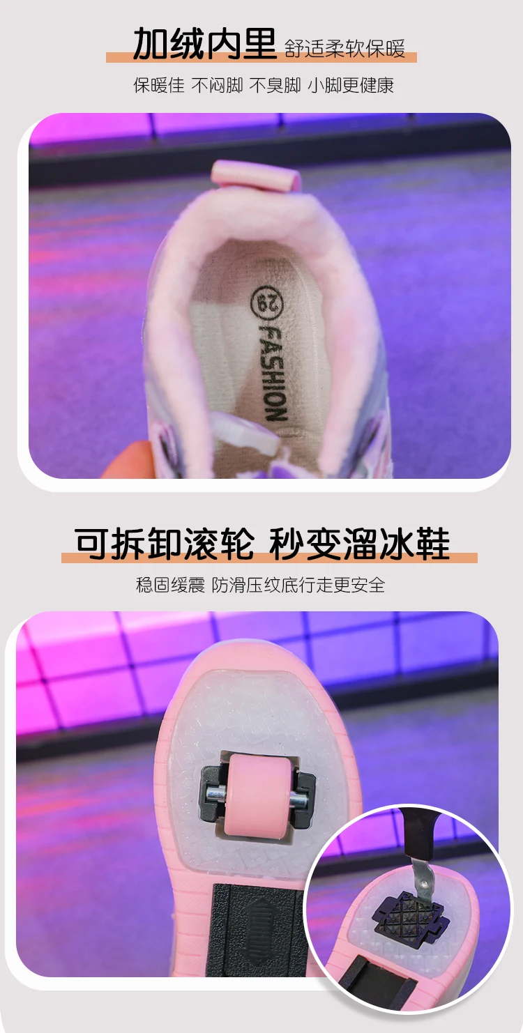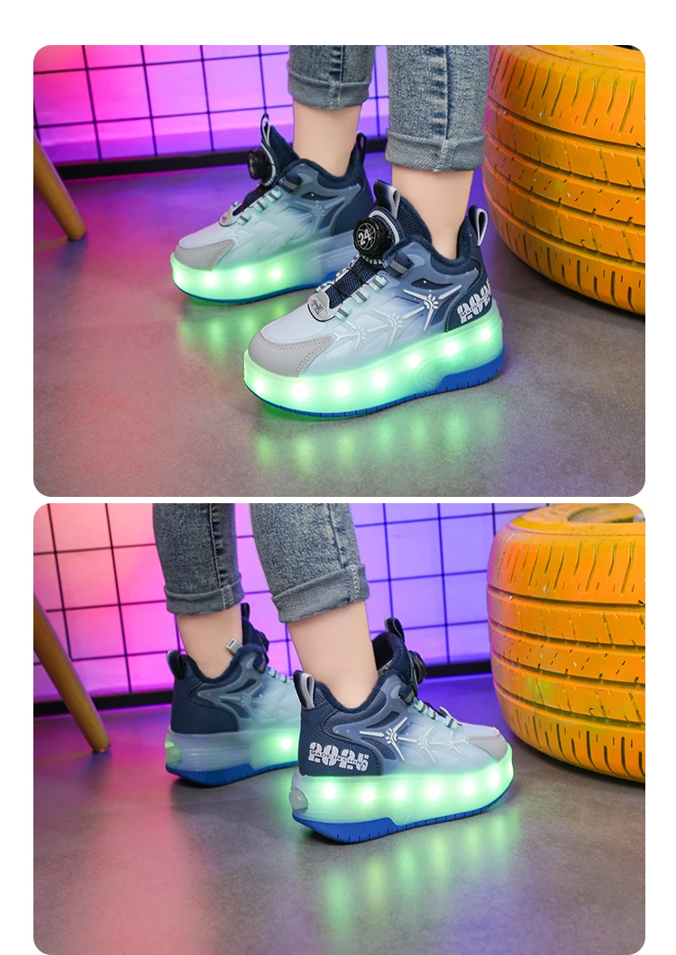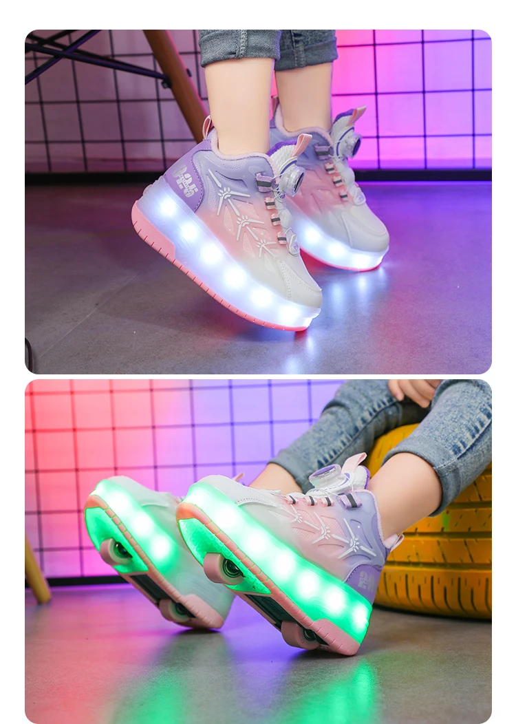 LED Light Winter Kids Roller Skate Shoes Girls Boys 2 Wheels Parkour Skating Shoes Children Detachable Running Deformation Gift