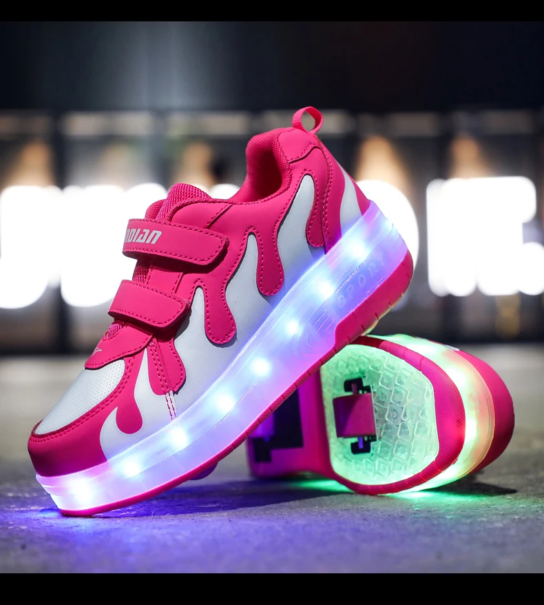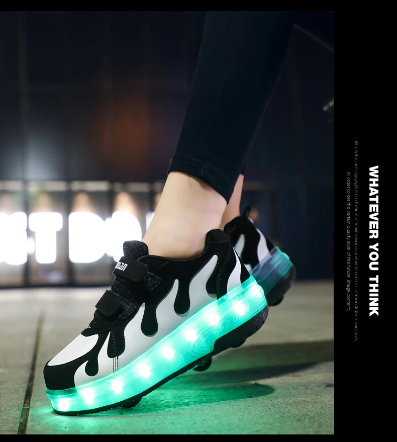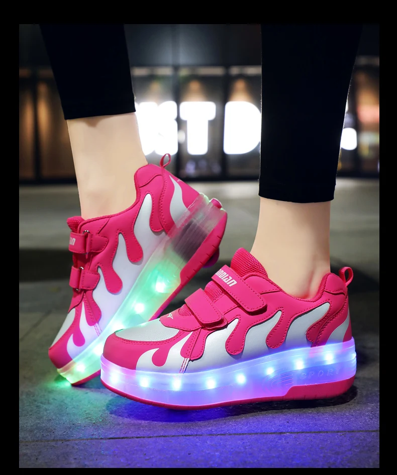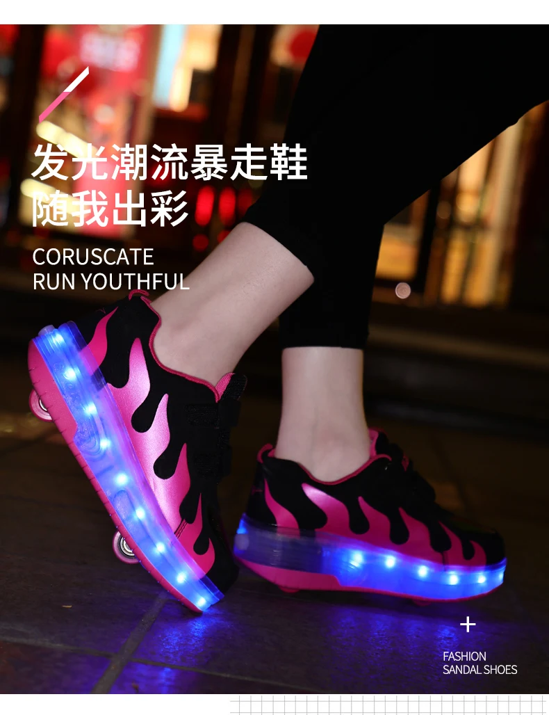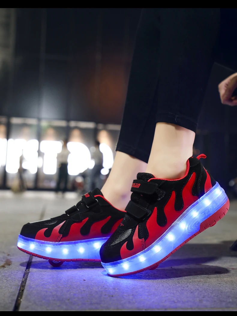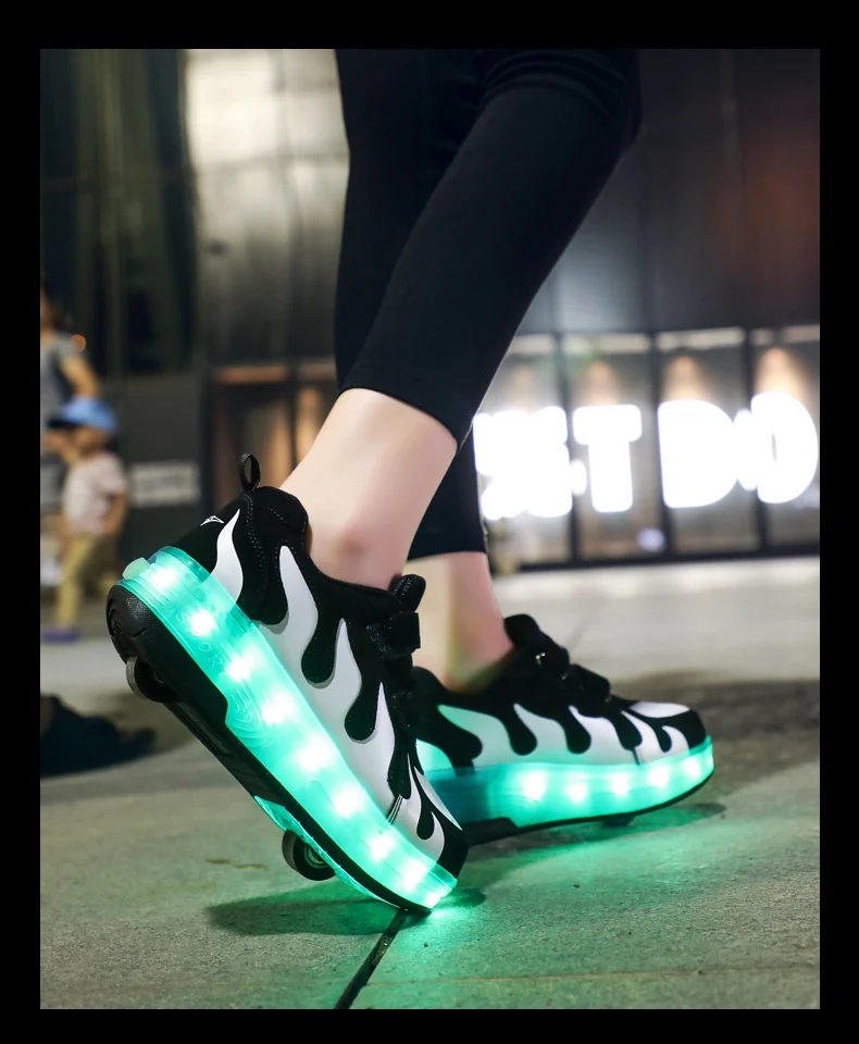 LED Lights Kids Roller Skate Shoes Adult Running Deformation With 2 Wheels Boys Girls Sport Casual Detachable Skating Shoes Gift