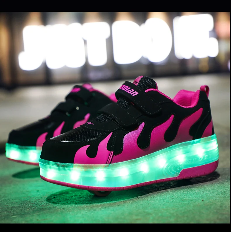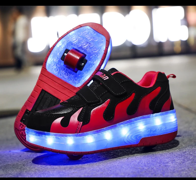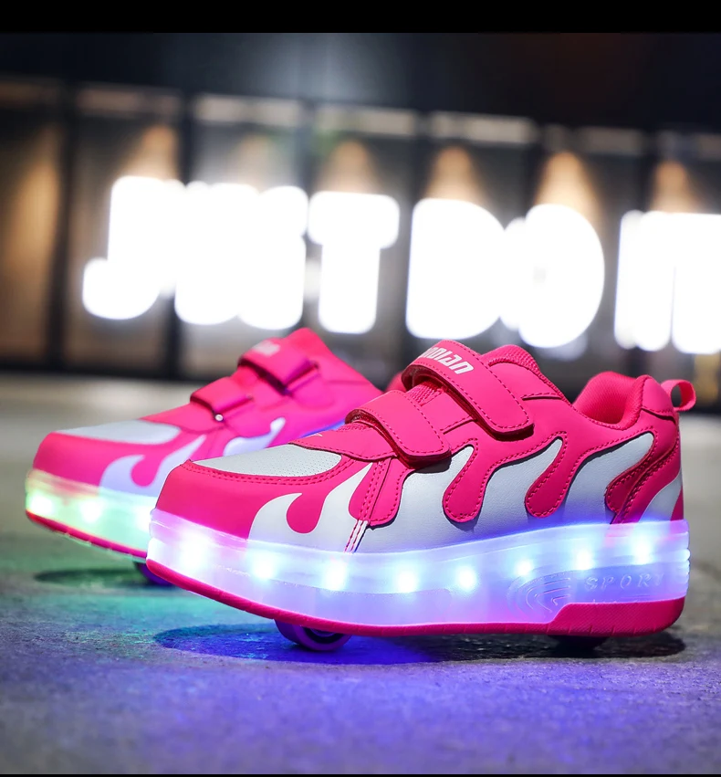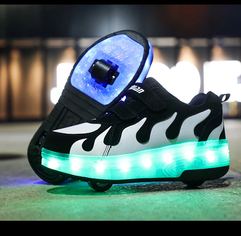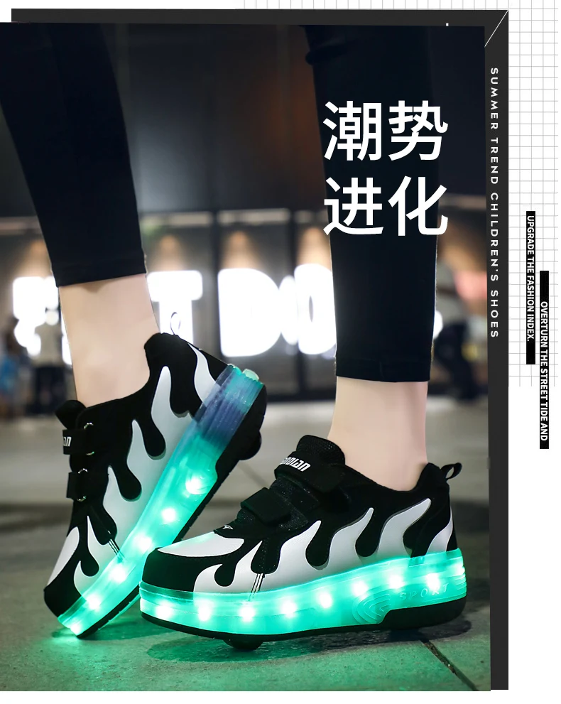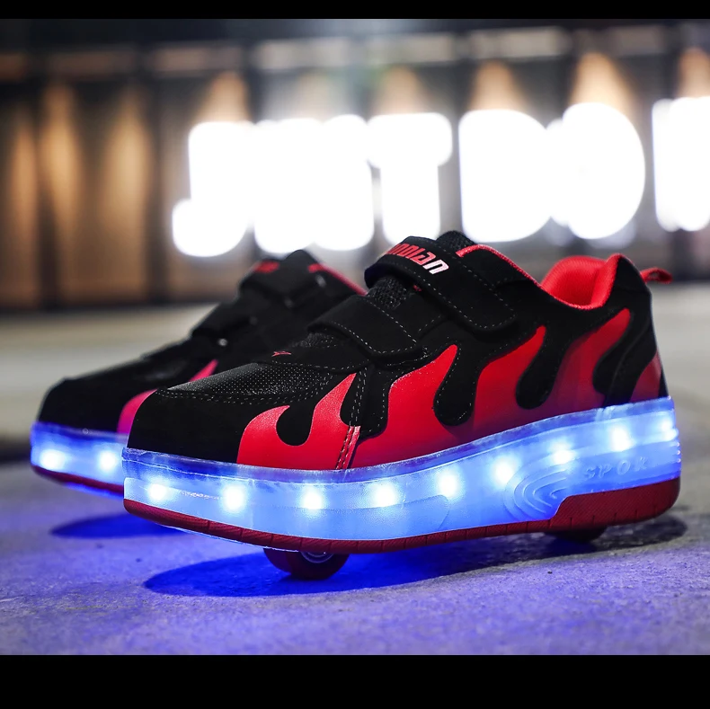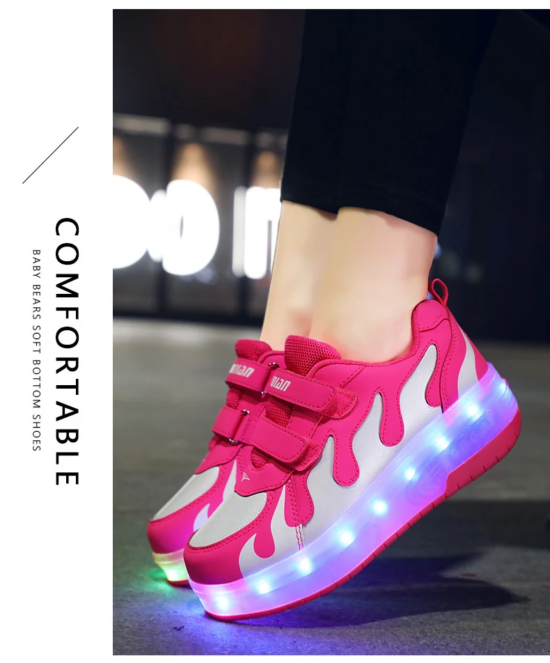 LED Lights Kids Roller Skate Shoes Adult Running Deformation With 2 Wheels Boys Girls Sport Casual Detachable Skating Shoes Gift