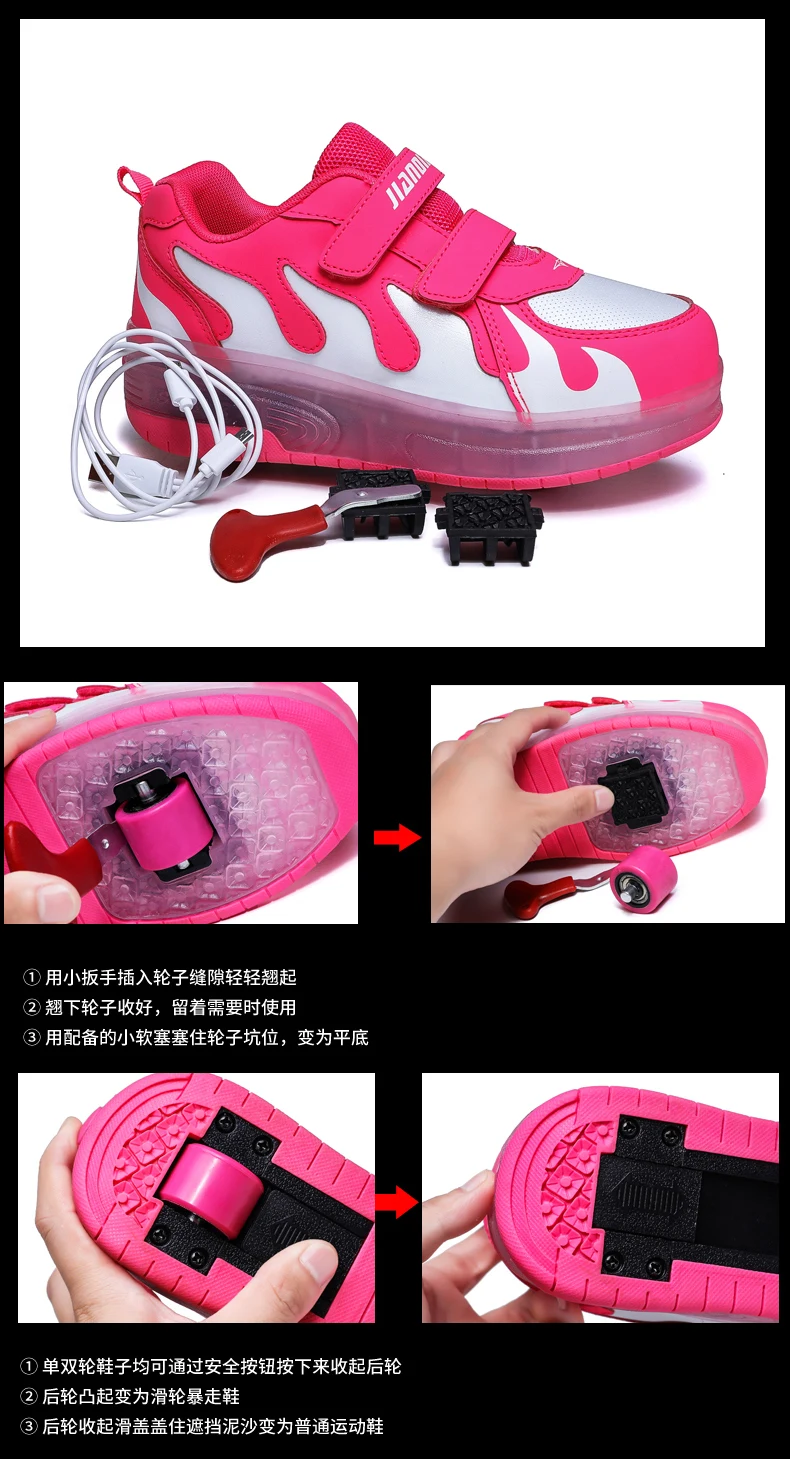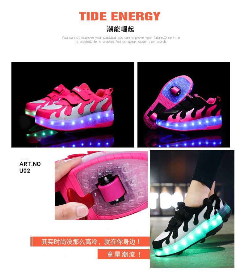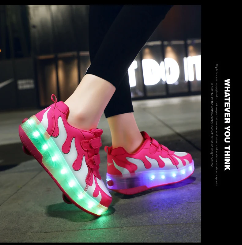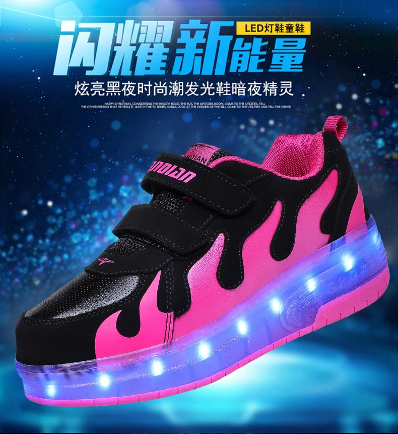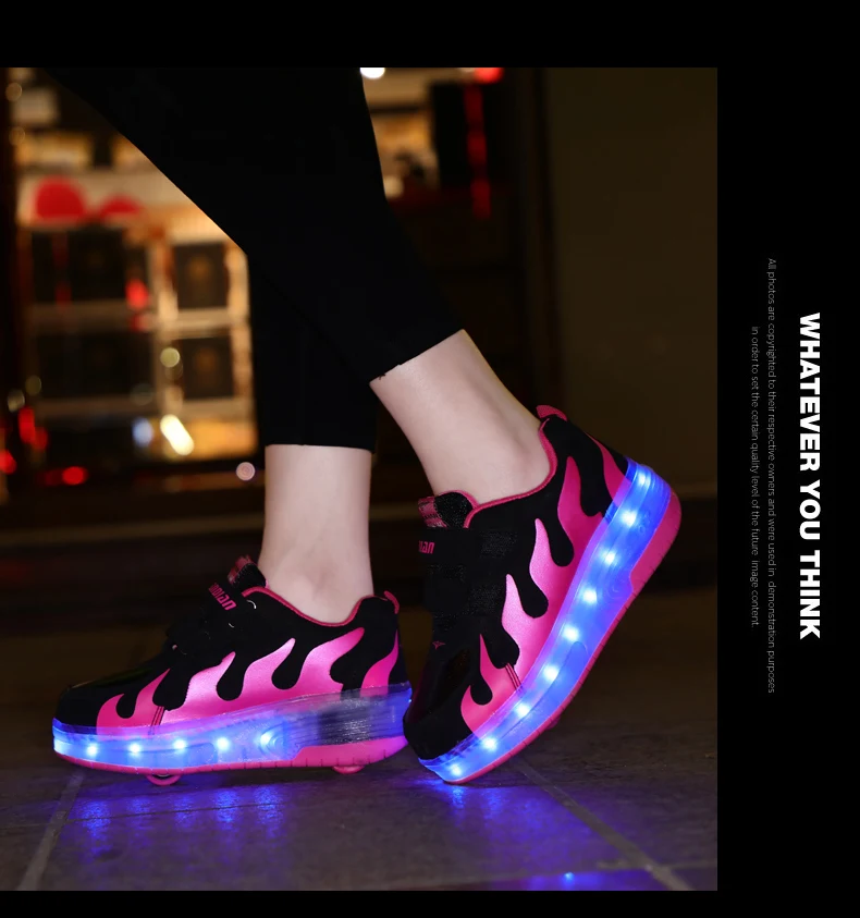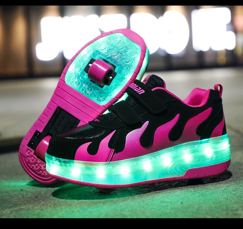 LED Lights Kids Roller Skate Shoes Adult Running Deformation With 2 Wheels Boys Girls Sport Casual Detachable Skating Shoes Gift