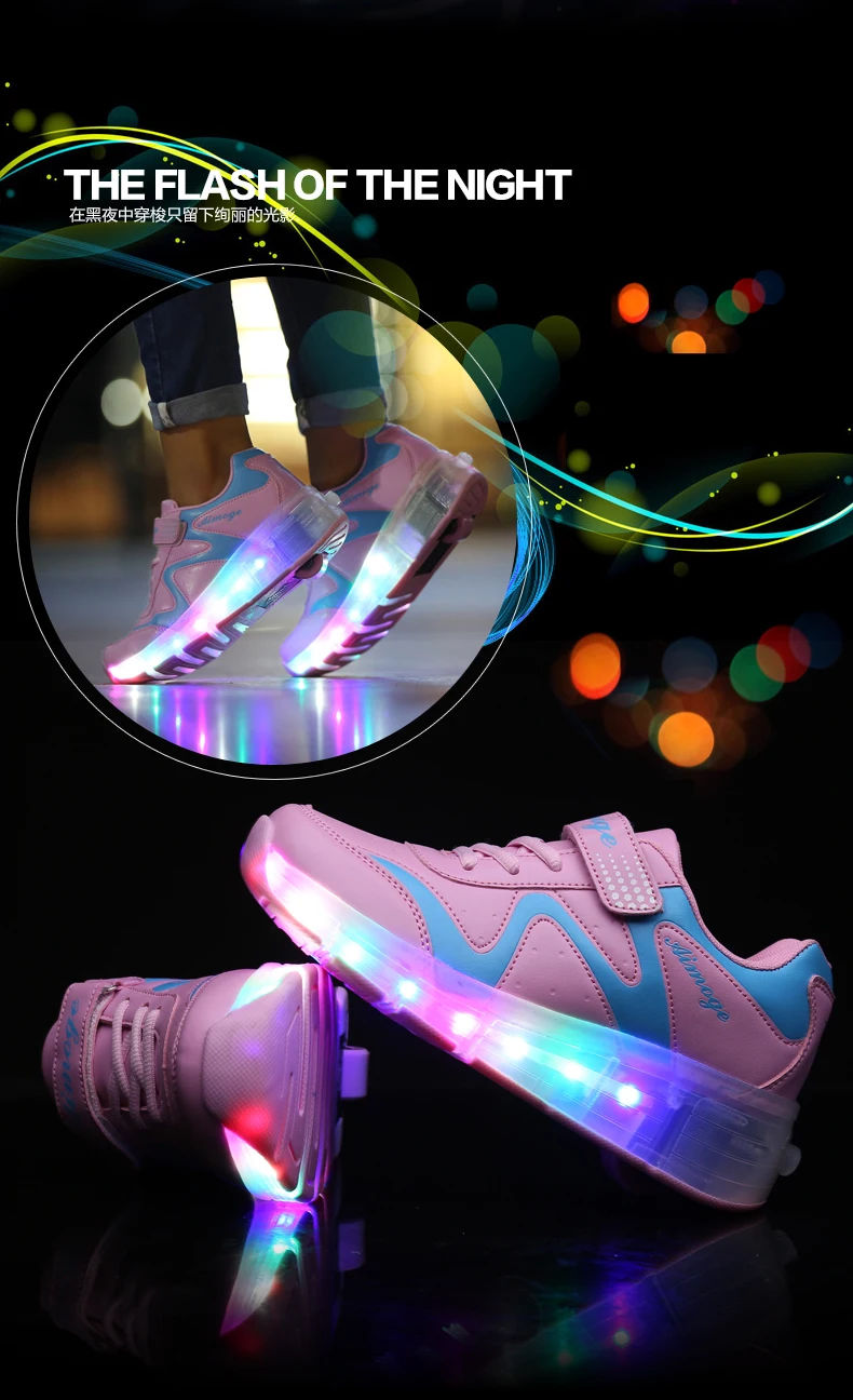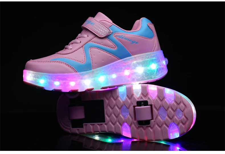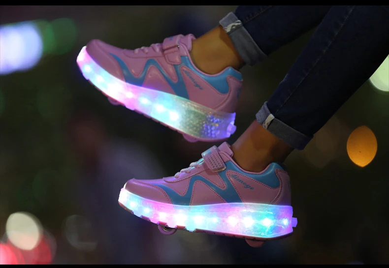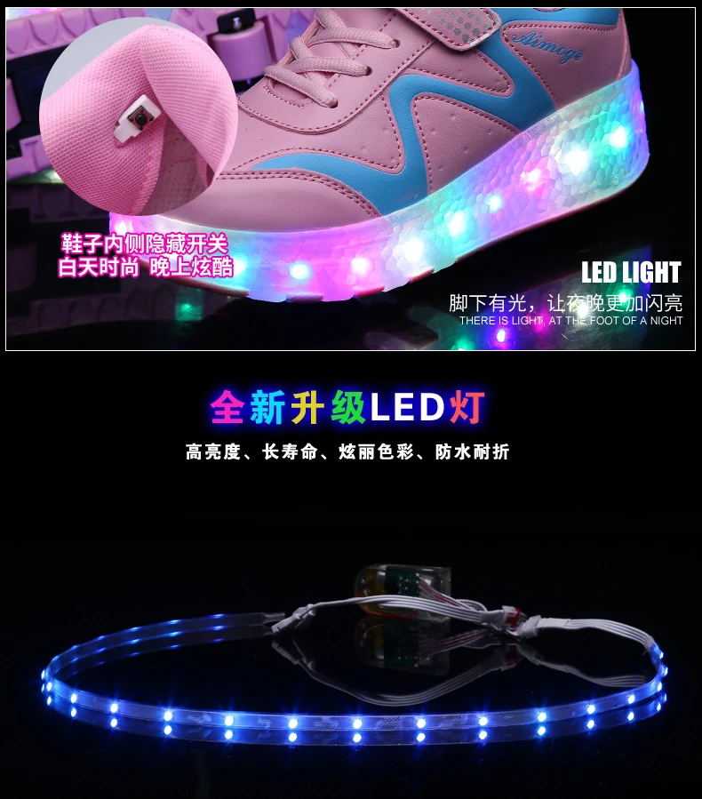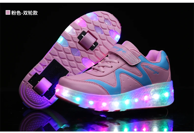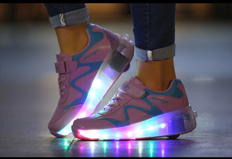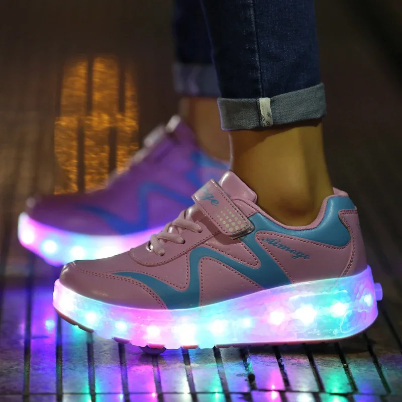 LED Lights Kids Roller Skate Shoes Adults Casual Running With 2 Wheels Detachable Boys Girls Parkour Deformation Skating Shoes