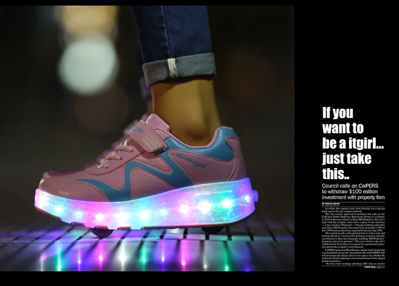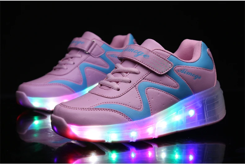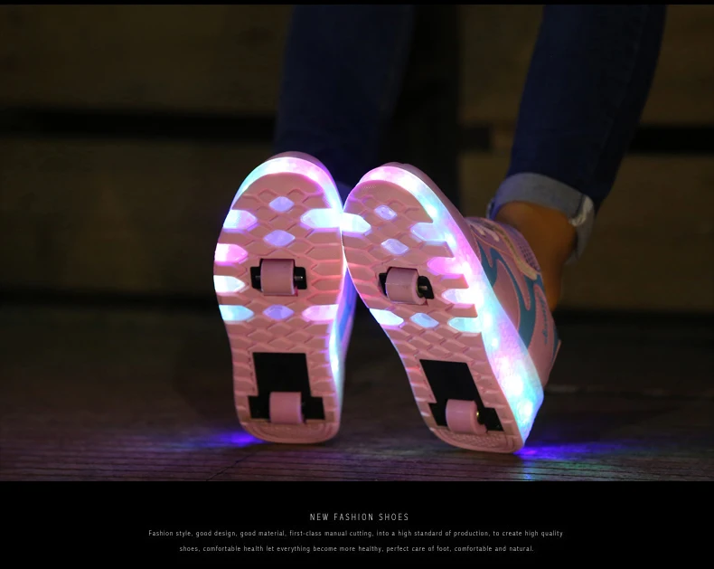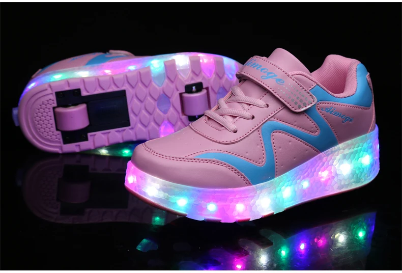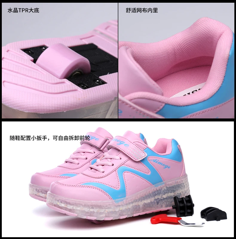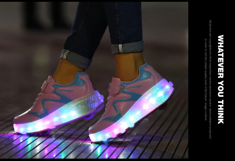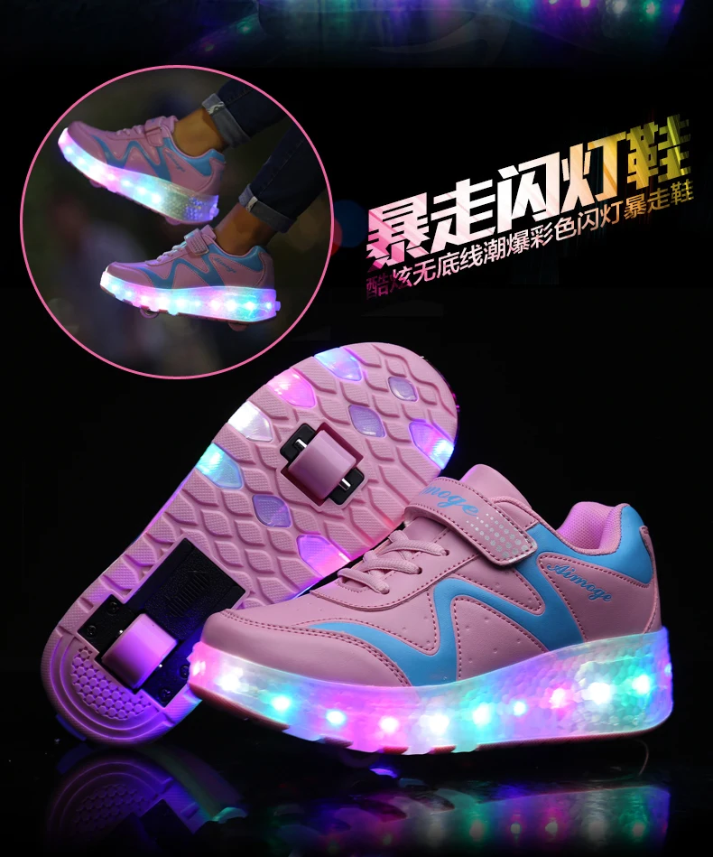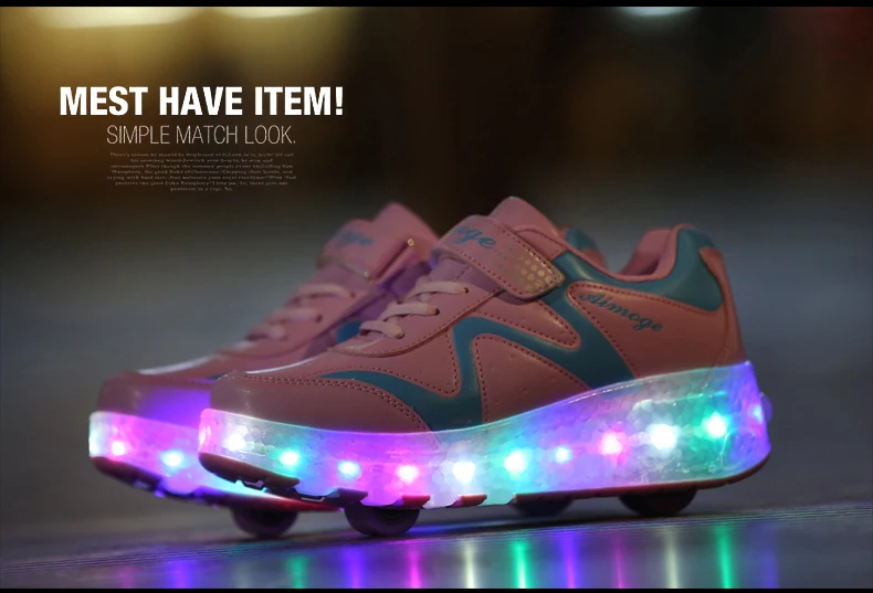 LED Lights Kids Roller Skate Shoes Adults Casual Running With 2 Wheels Detachable Boys Girls Parkour Deformation Skating Shoes