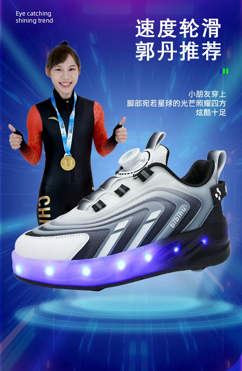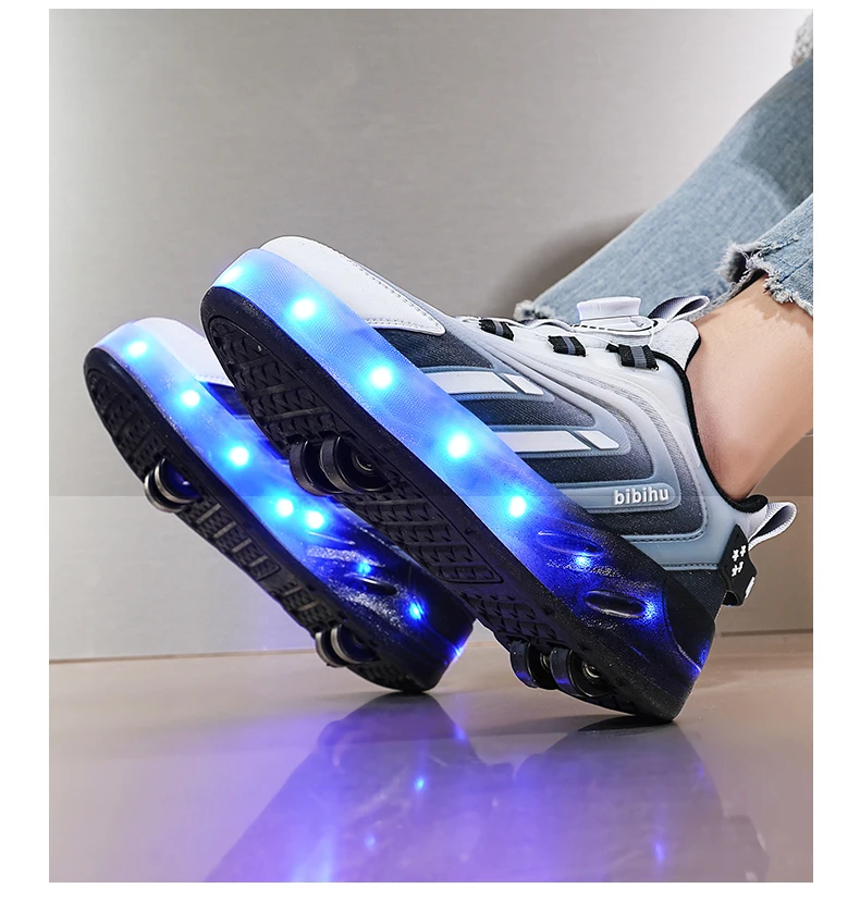 LED Lights Kids Roller Skate Shoes Adults Detachable With 4 Wheels Boys Girls Running Casual Parkour Deformation Skating Shoes