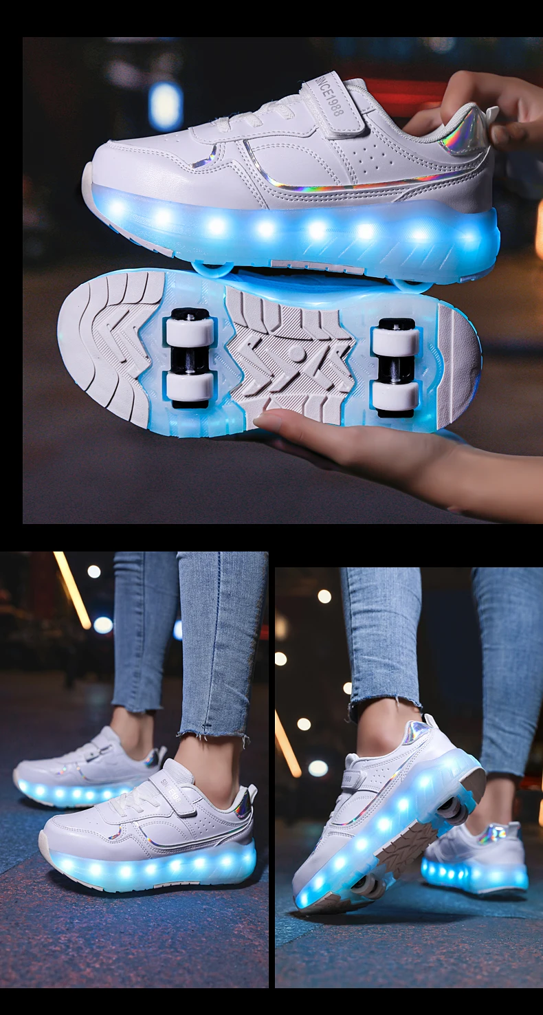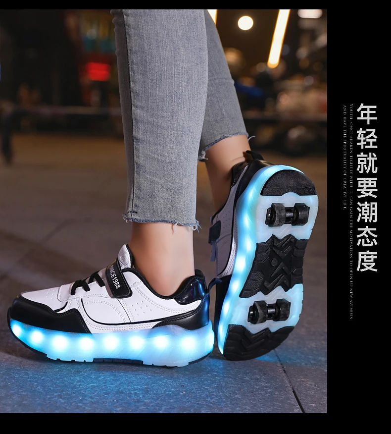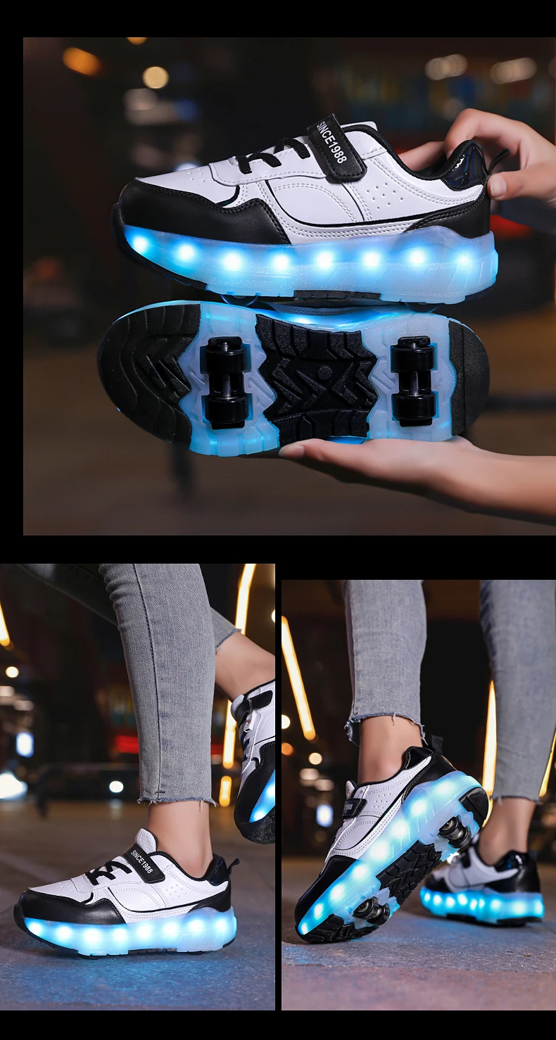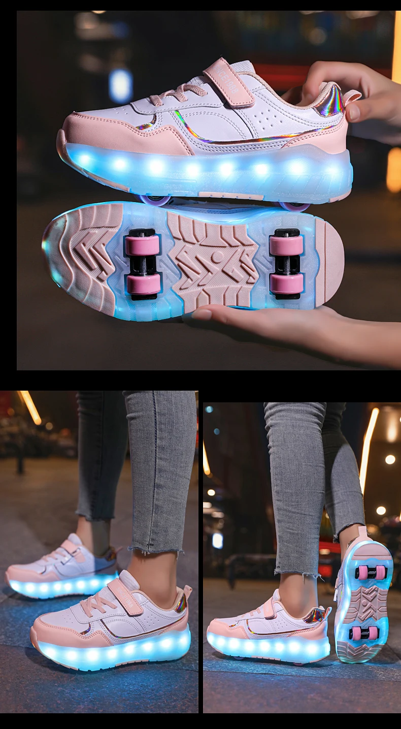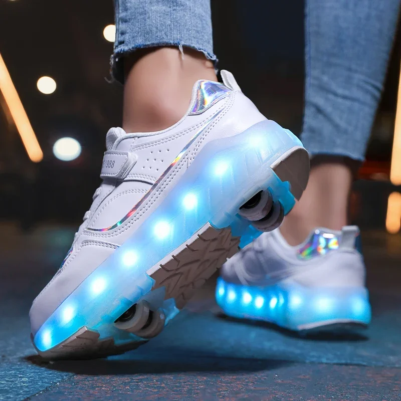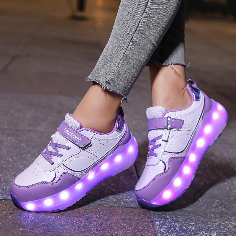 LED Lights Kids Roller Skate Shoes Boys Girls Parkour With 4 Wheels Detachable Adults Casual Deformation Running Skating Shoes