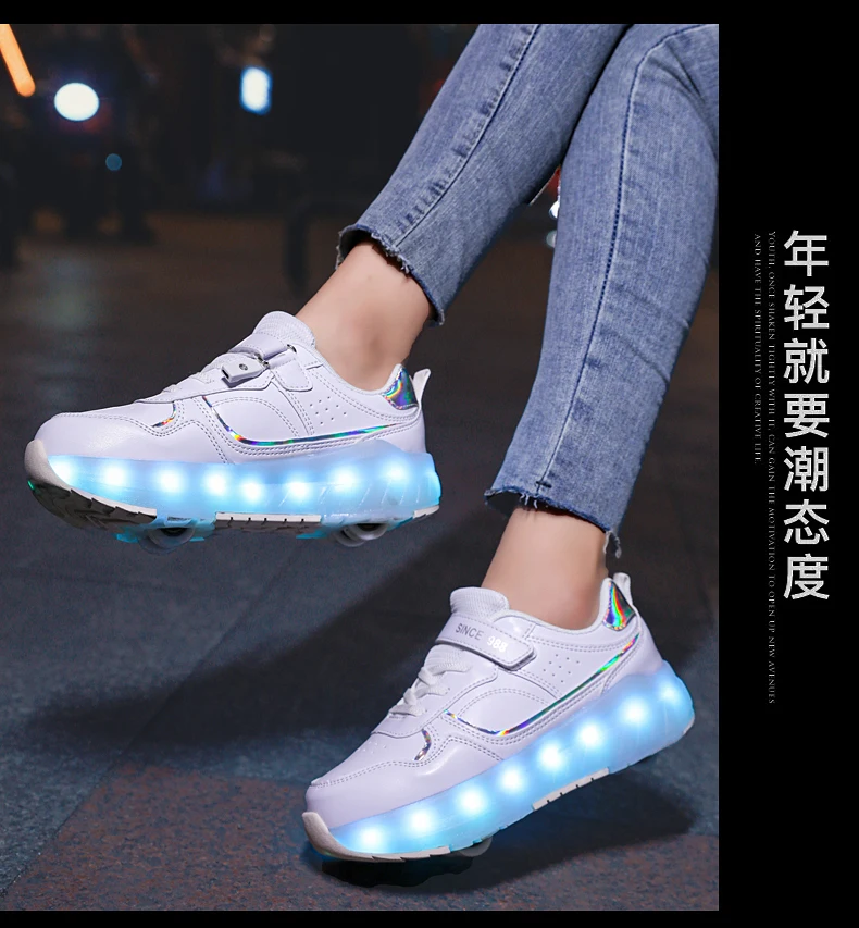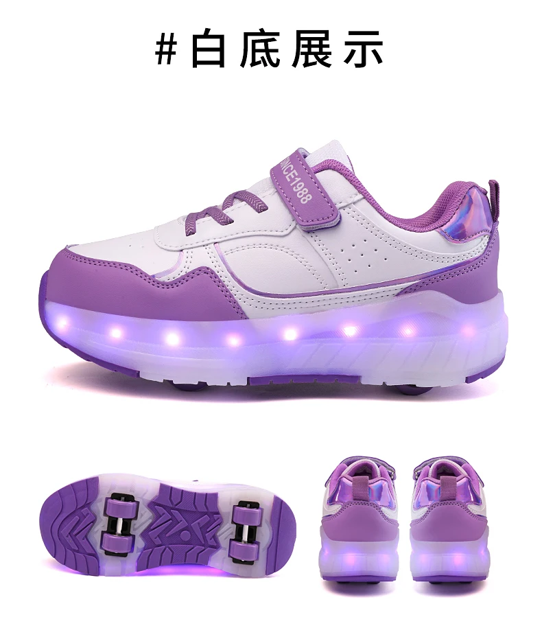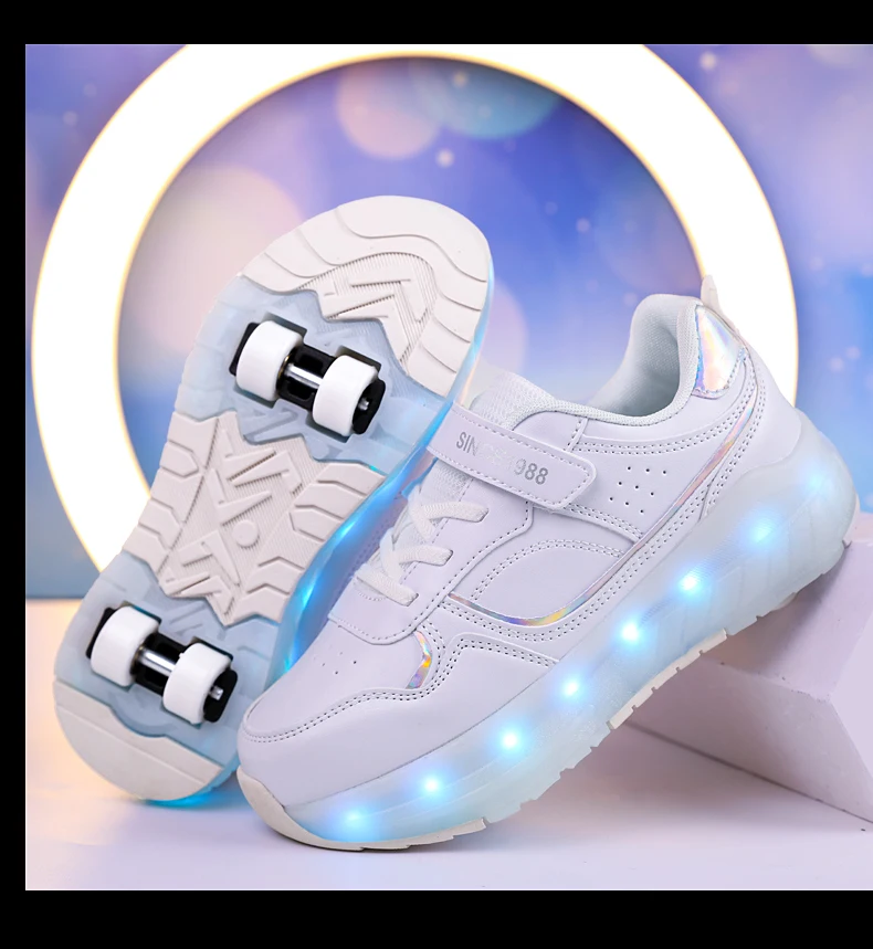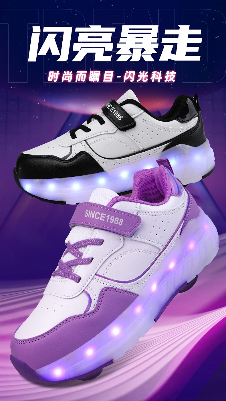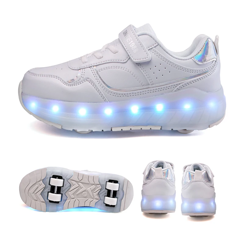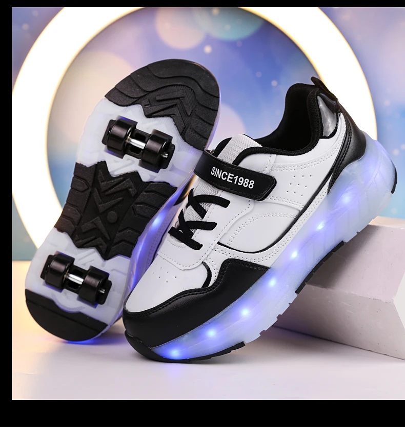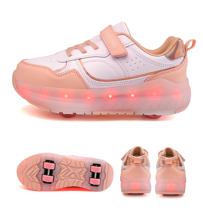 LED Lights Kids Roller Skate Shoes Boys Girls Parkour With 4 Wheels Detachable Adults Casual Deformation Running Skating Shoes