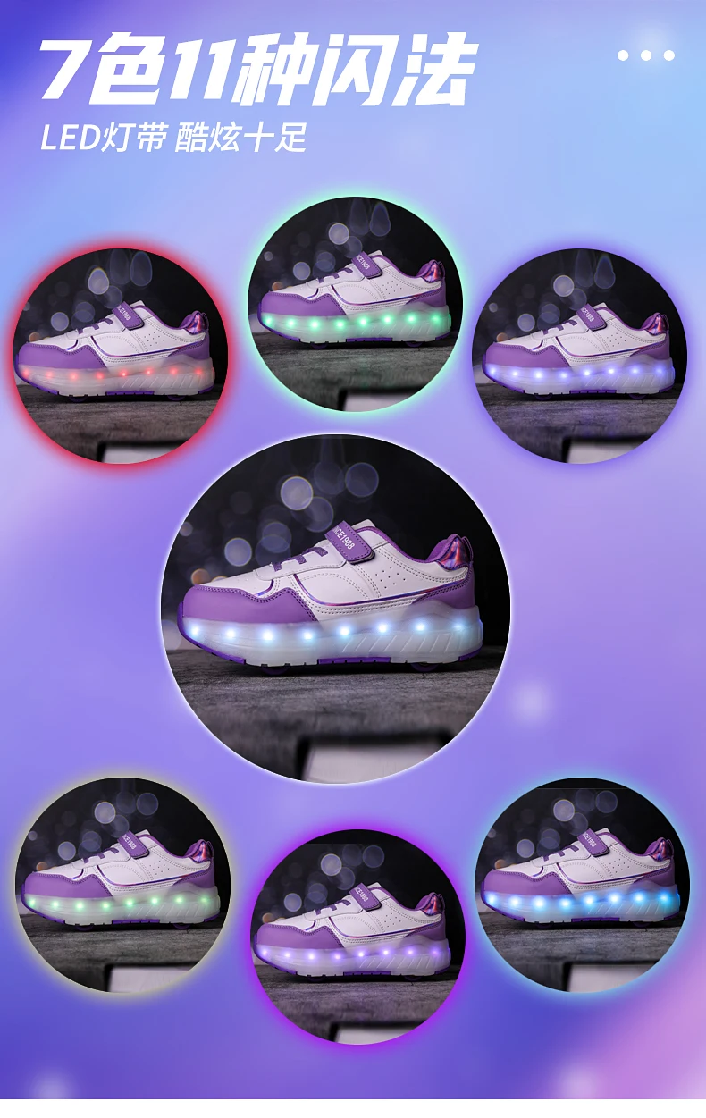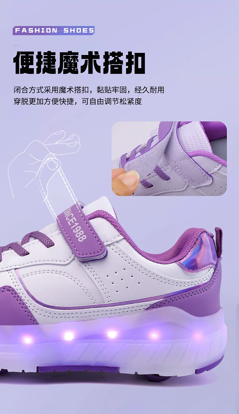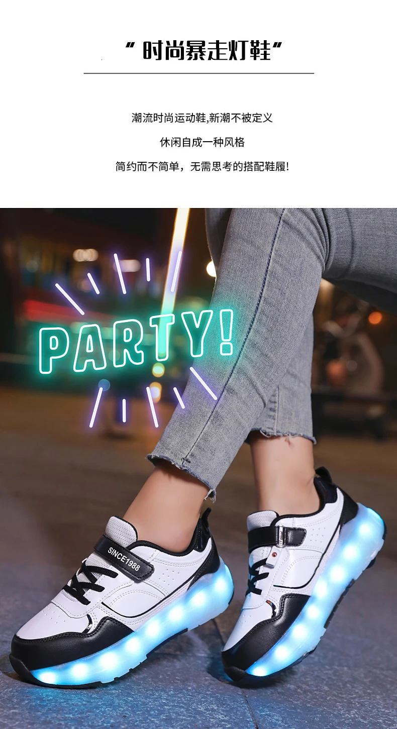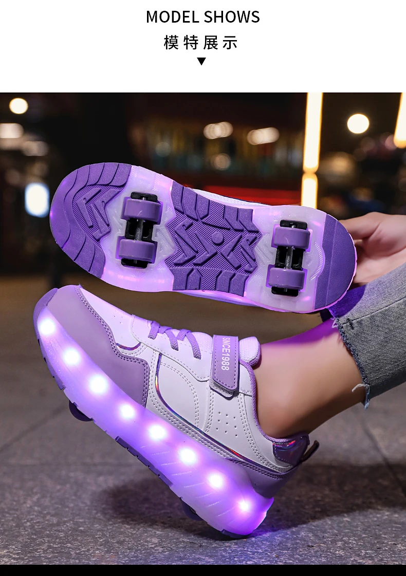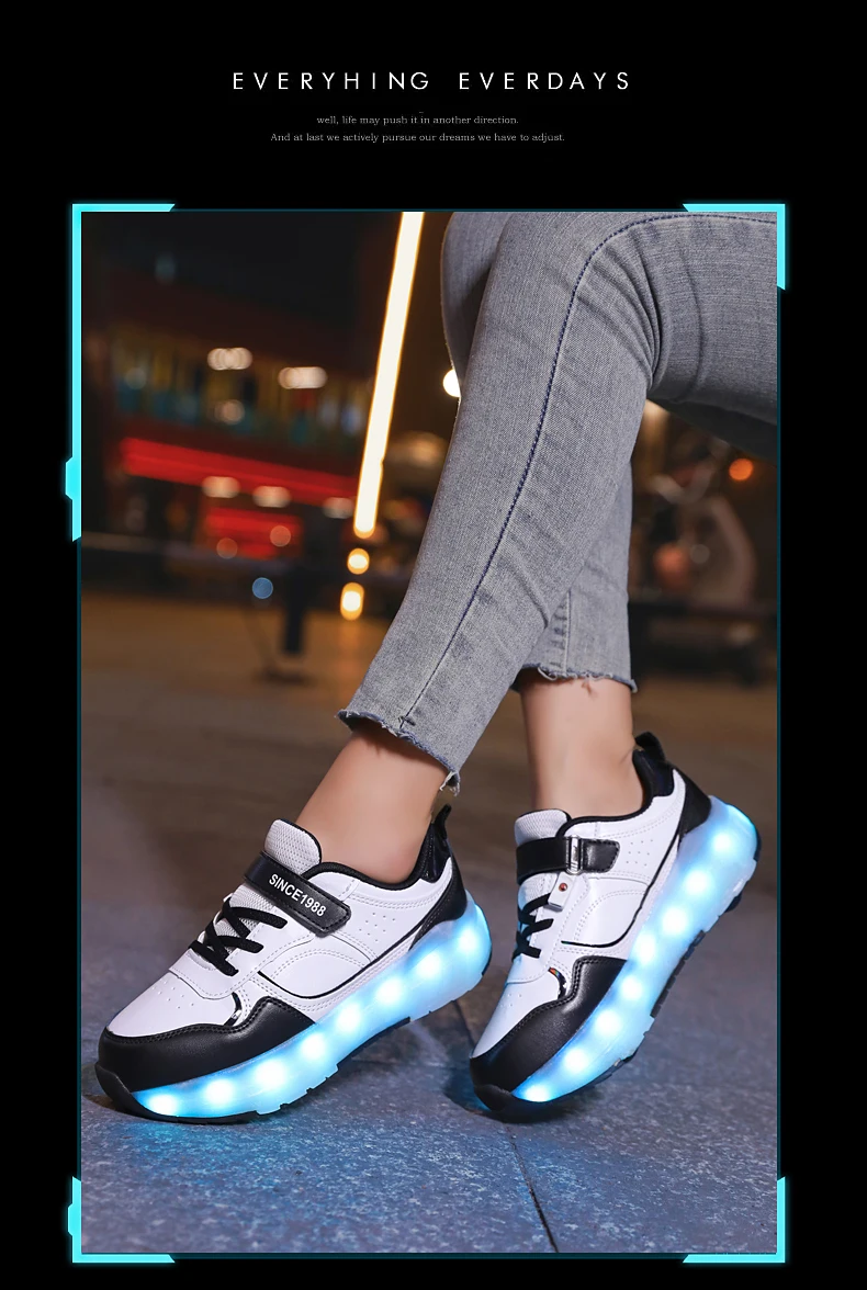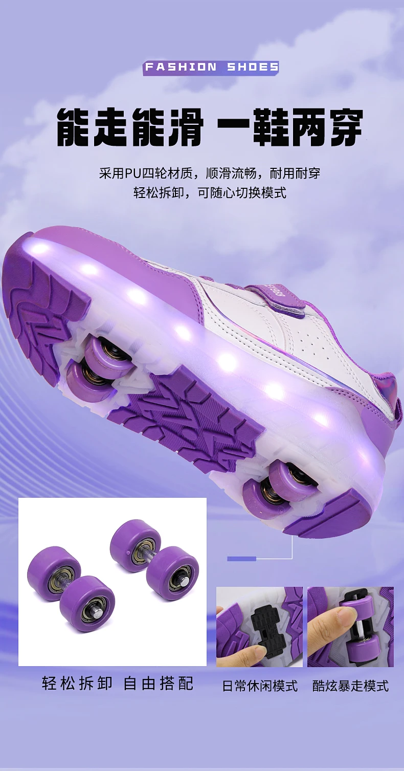 LED Lights Kids Roller Skate Shoes Boys Girls Parkour With 4 Wheels Detachable Adults Casual Deformation Running Skating Shoes