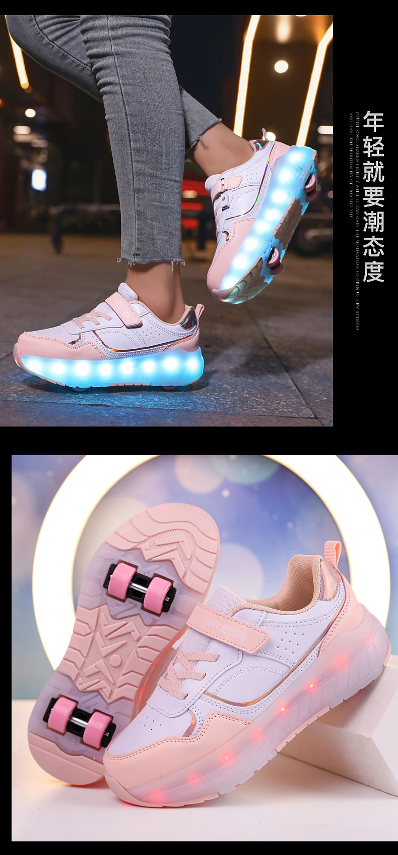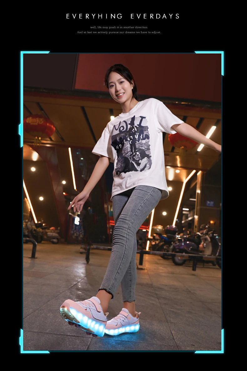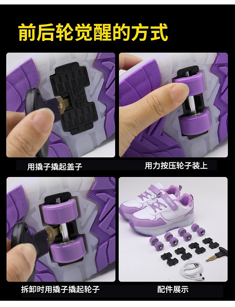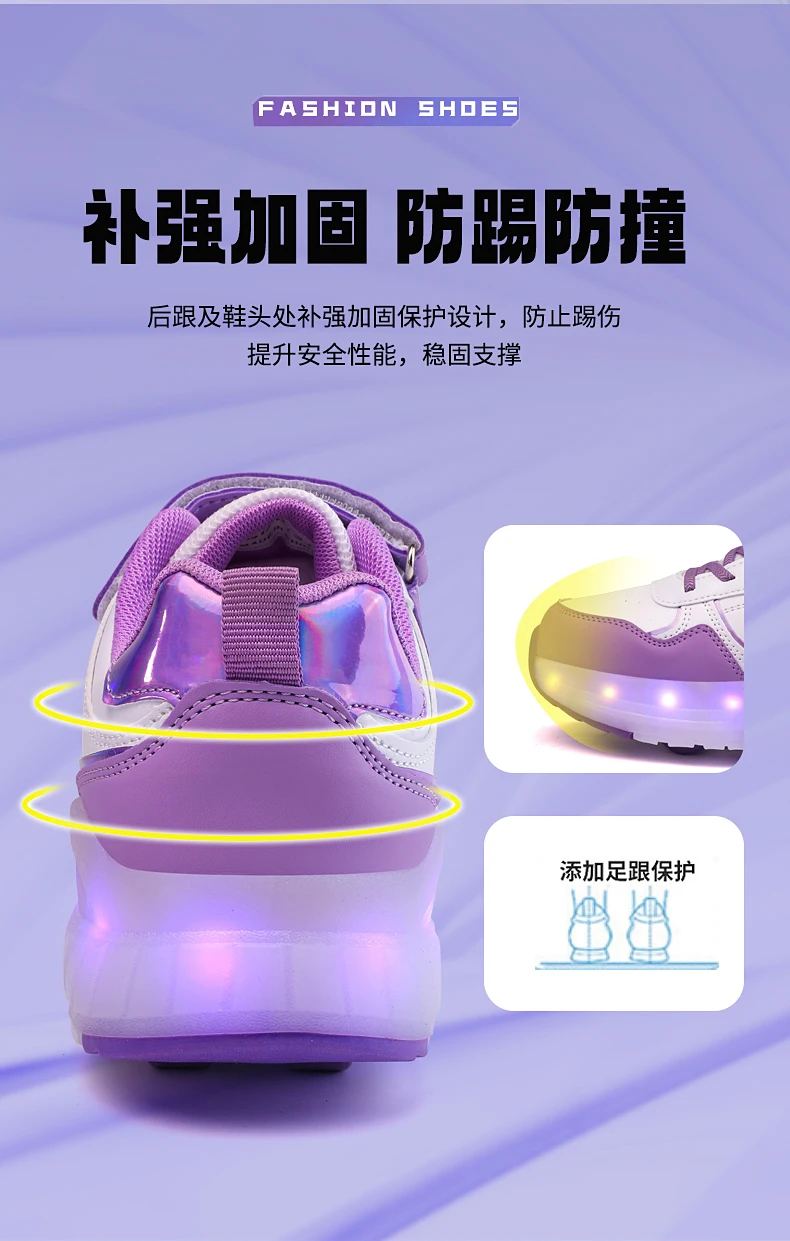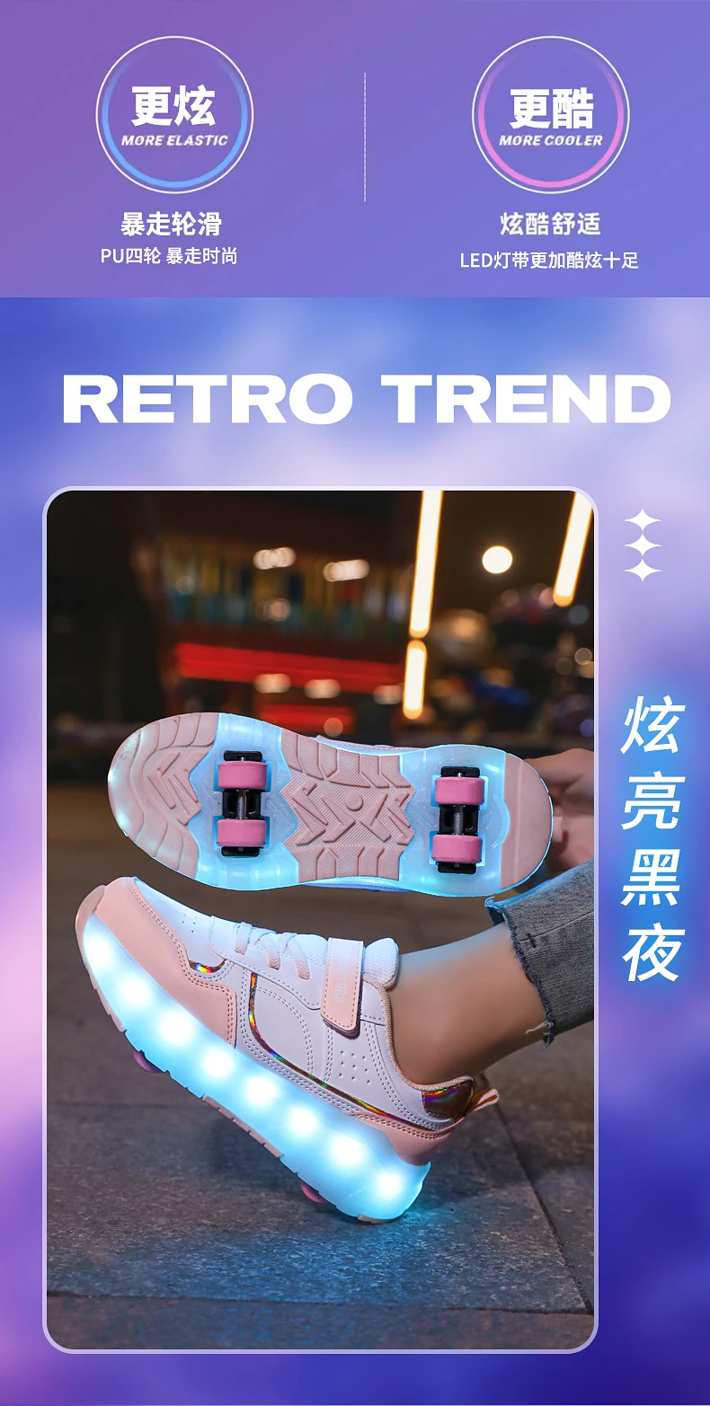 LED Lights Kids Roller Skate Shoes Boys Girls Parkour With 4 Wheels Detachable Adults Casual Deformation Running Skating Shoes