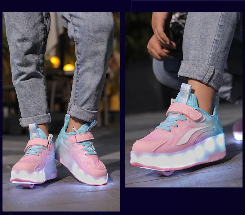 LED Lights Kids Roller Skate Shoes Boys Girls With 4 Wheels Parkour Running Deformation Sport Adults Detachable Skating Shoes