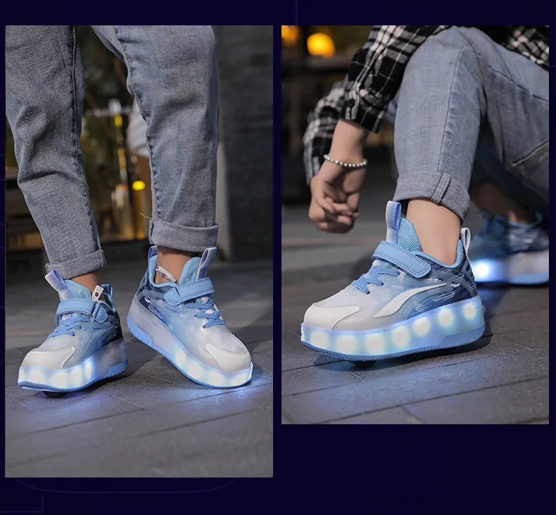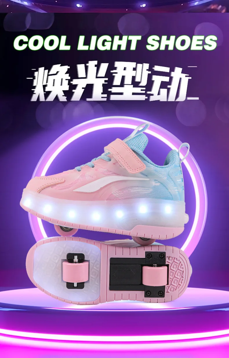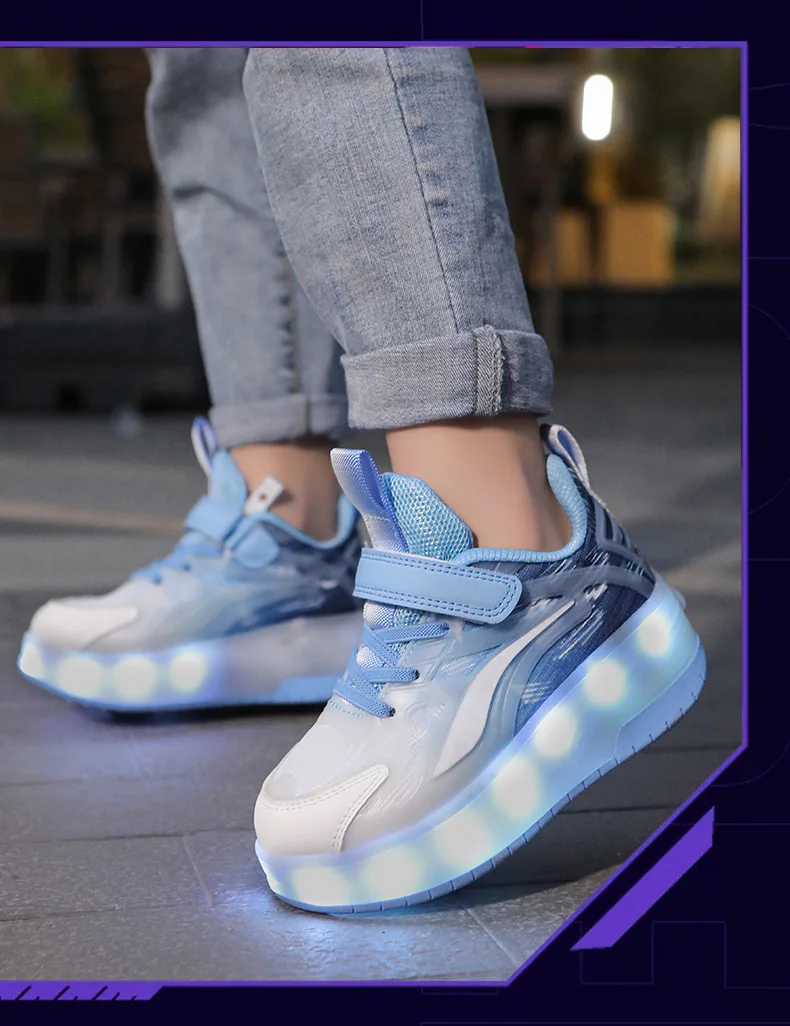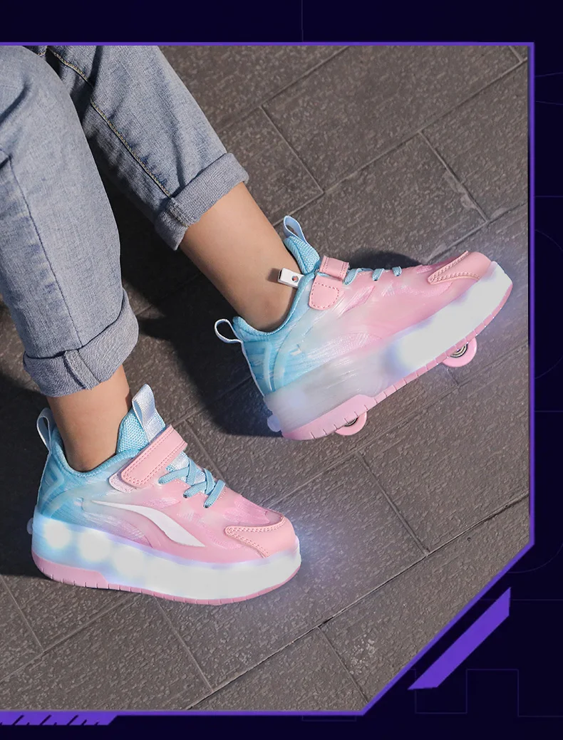 LED Lights Kids Roller Skate Shoes Boys Girls With 4 Wheels Parkour Running Deformation Sport Adults Detachable Skating Shoes