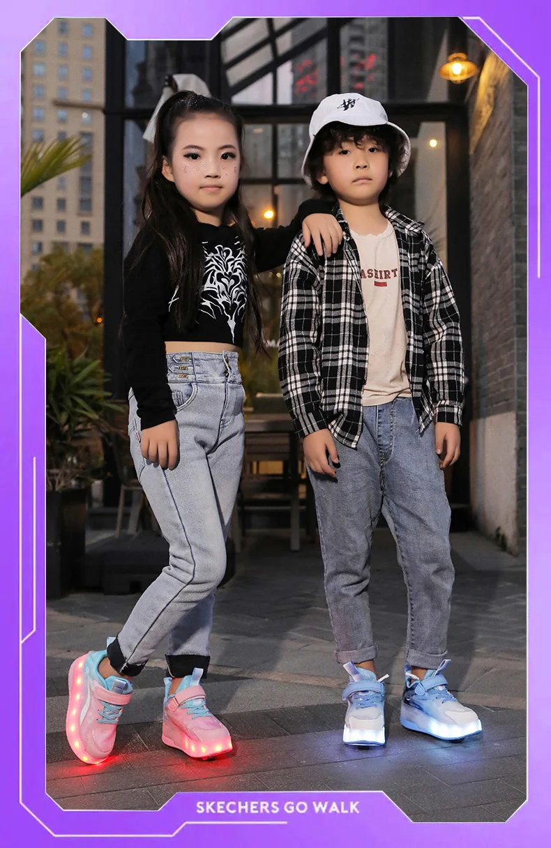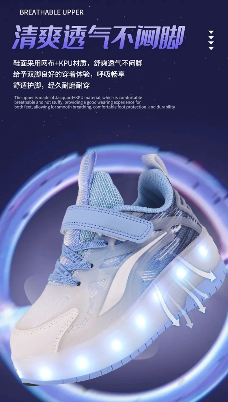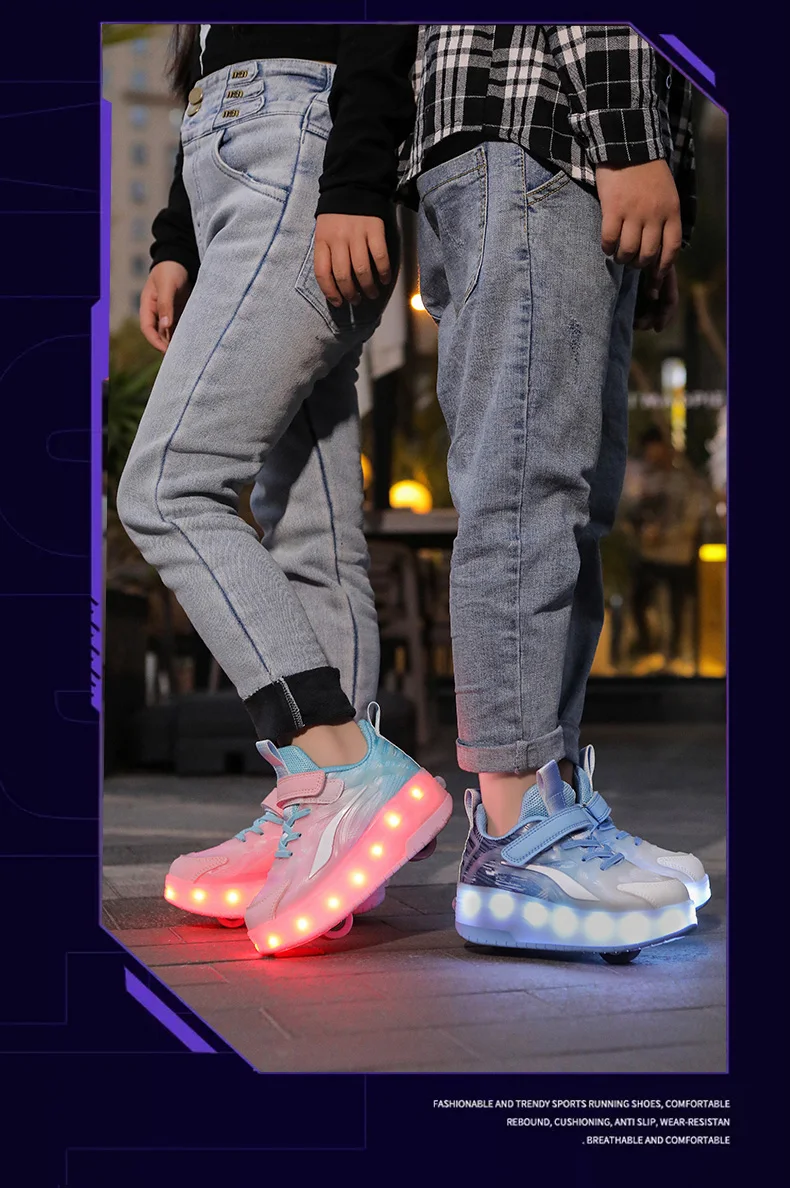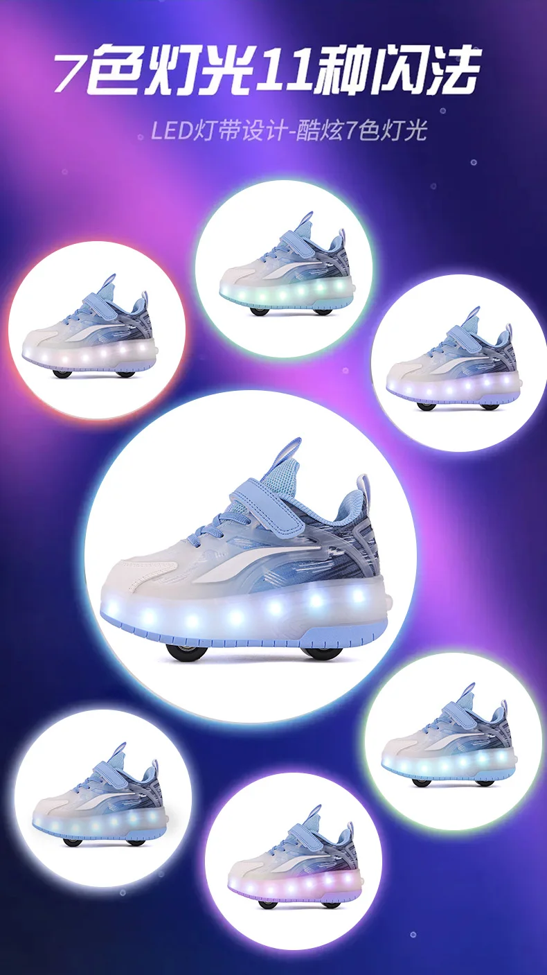 LED Lights Kids Roller Skate Shoes Boys Girls With 4 Wheels Parkour Running Deformation Sport Adults Detachable Skating Shoes