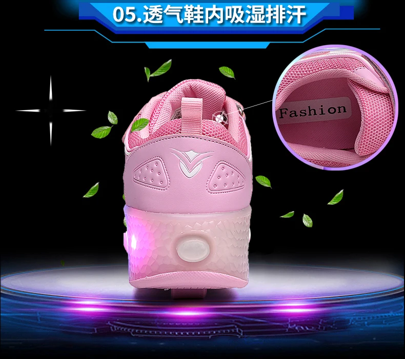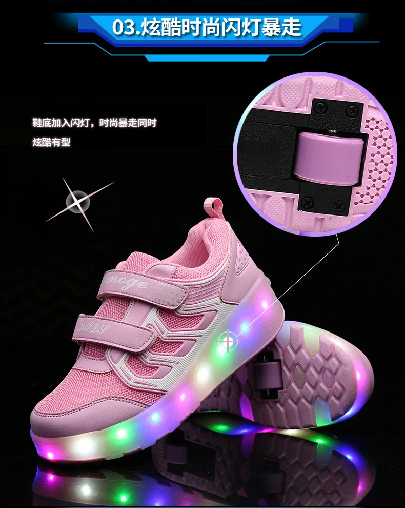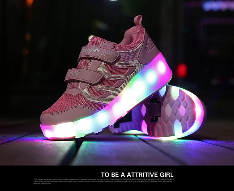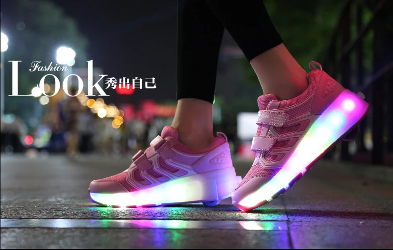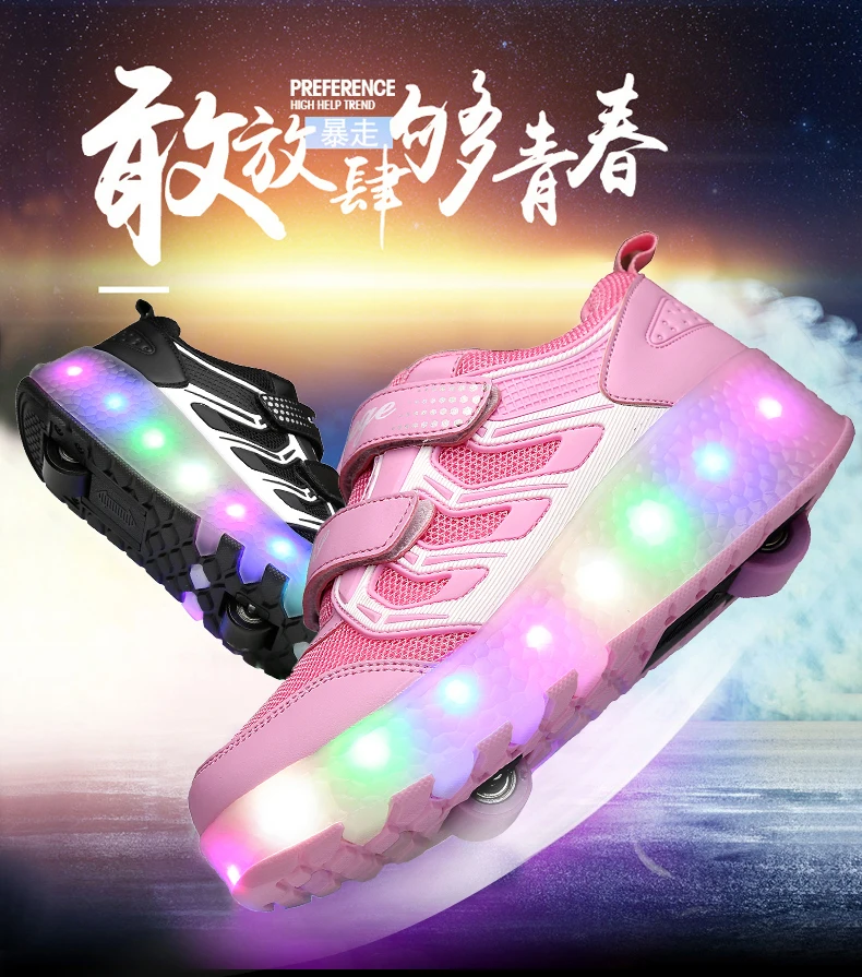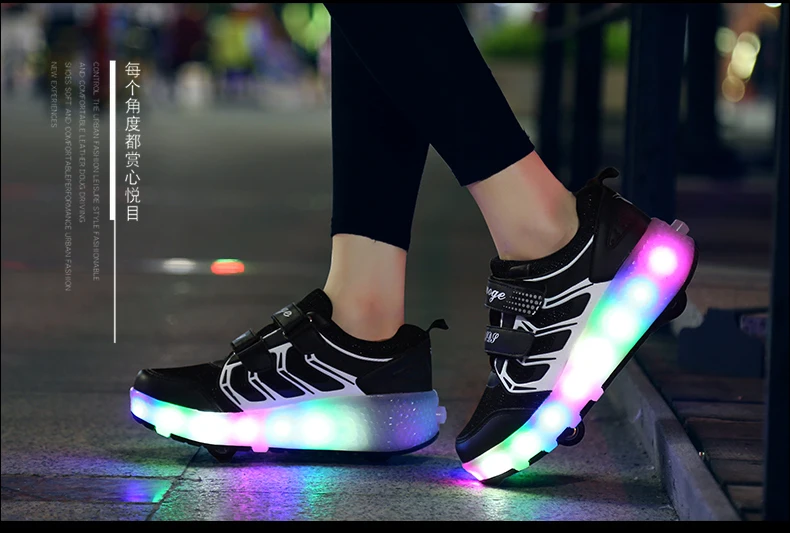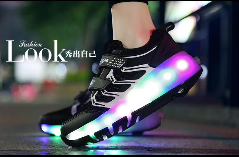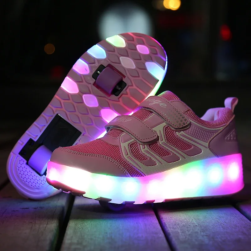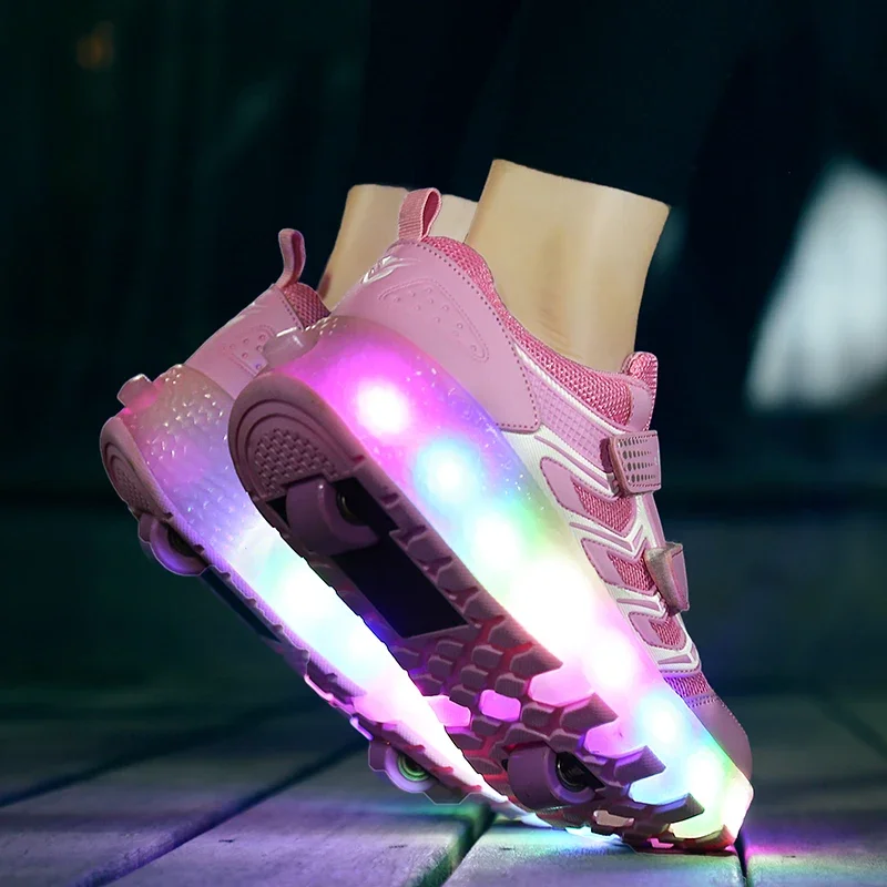 LED Lights Kids Roller Skate Shoes Casual Adults Running With 2 Wheels Detachable Parkour Boys Girls Deformation Skating Shoes