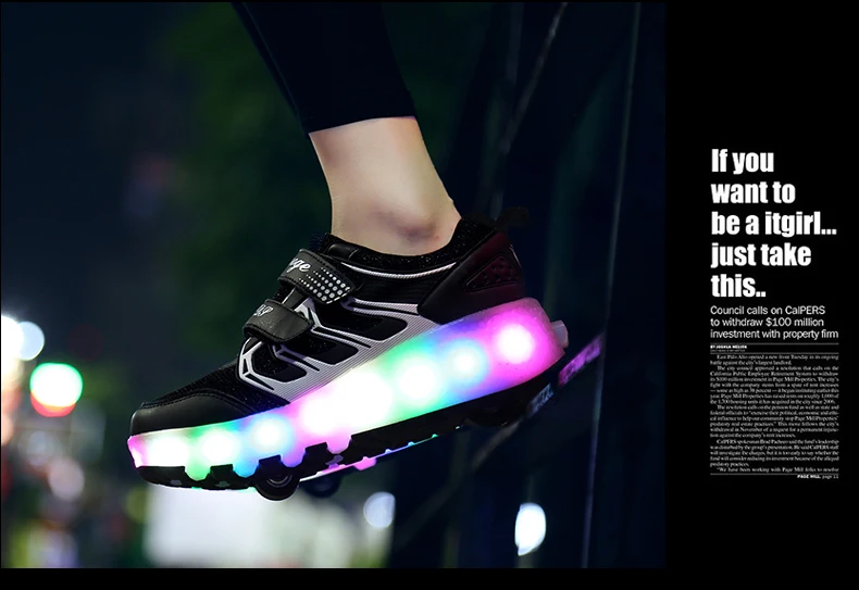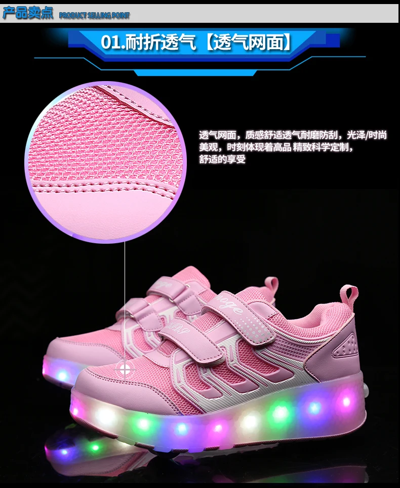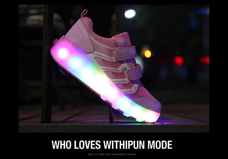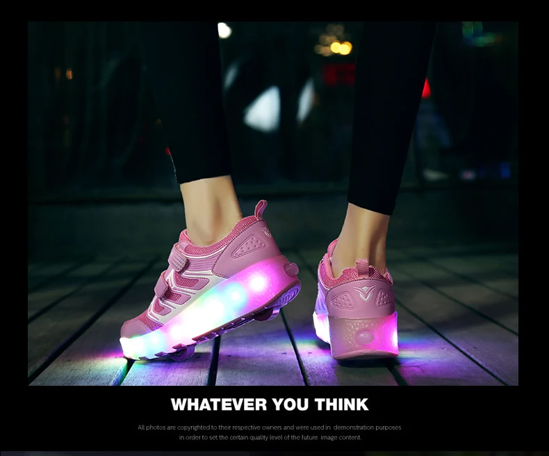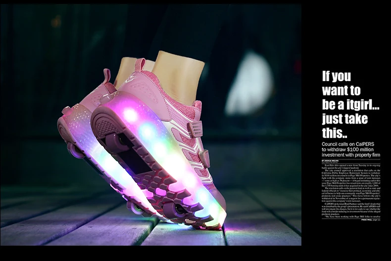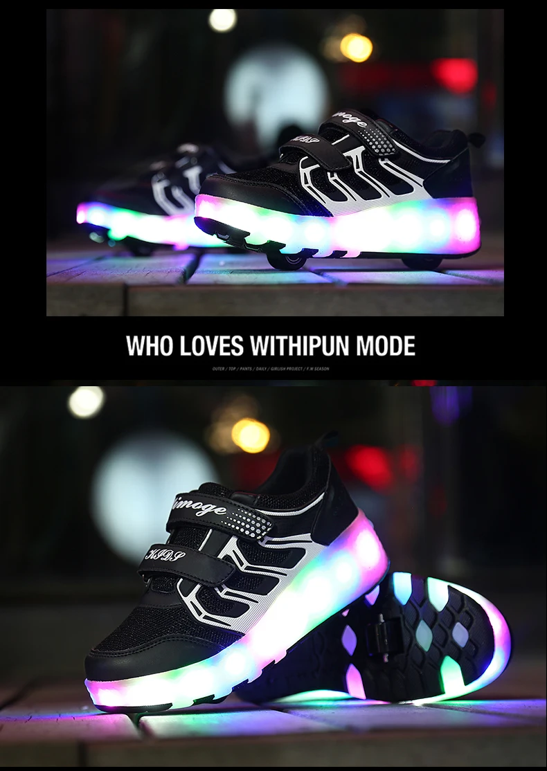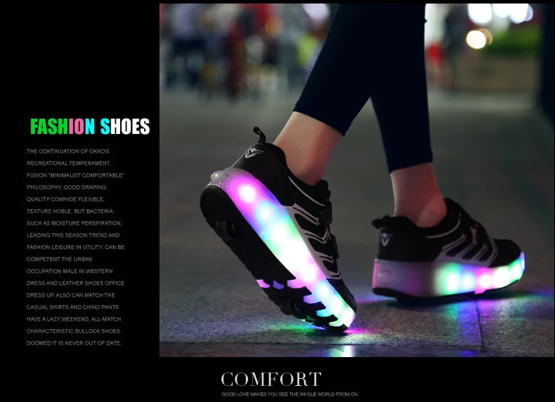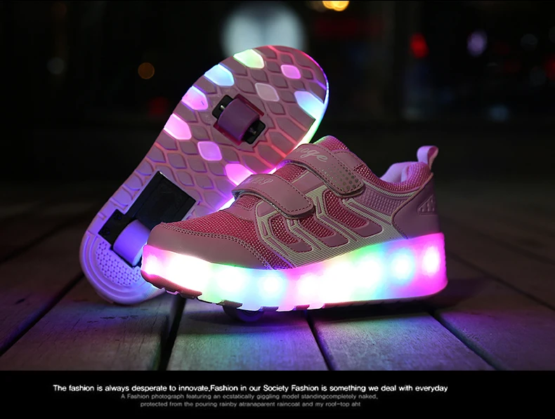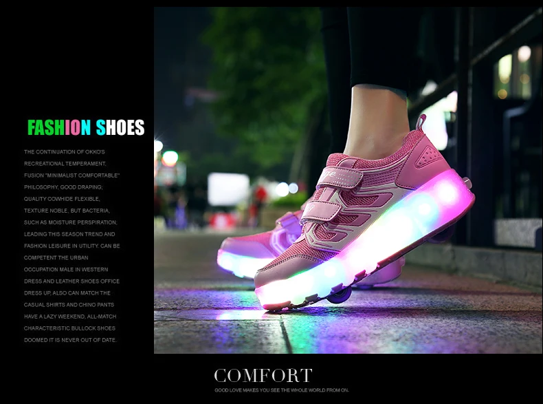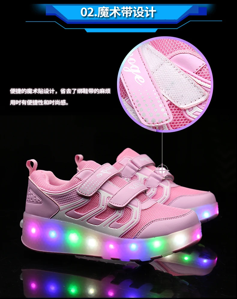 LED Lights Kids Roller Skate Shoes Casual Adults Running With 2 Wheels Detachable Parkour Boys Girls Deformation Skating Shoes