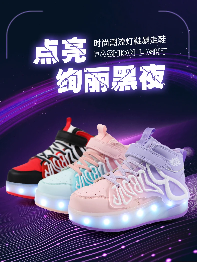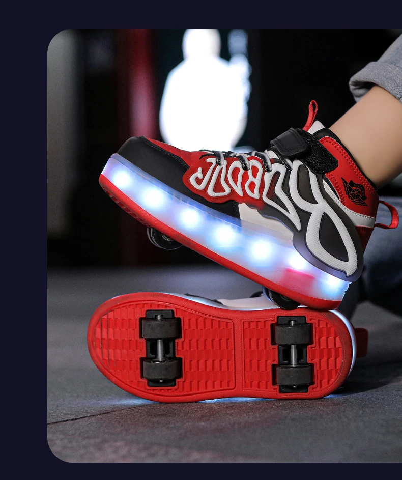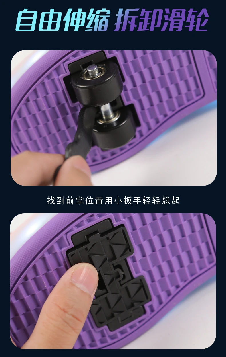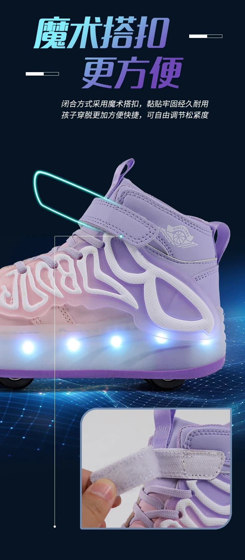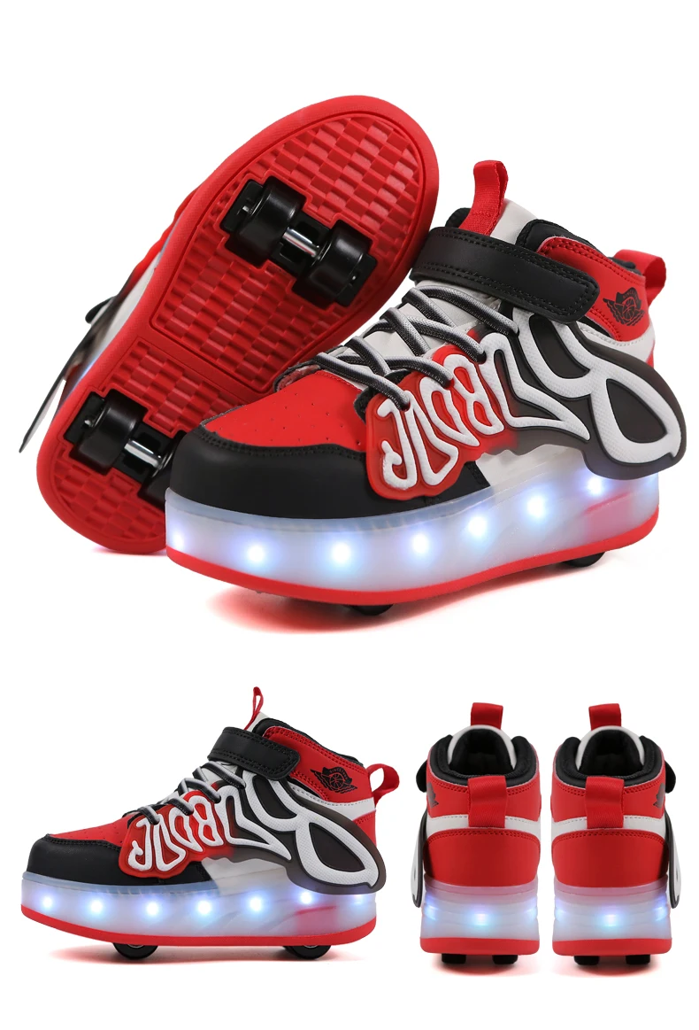 LED Lights Kids Roller Skate Shoes Casual Parkour Sport Boys Girls Deformation Sneakers With 4 Wheels Detachable Skating Shoes