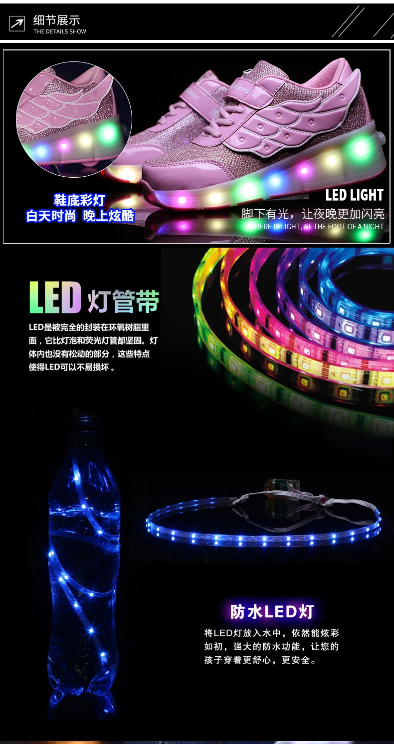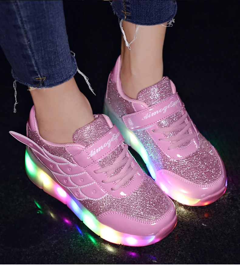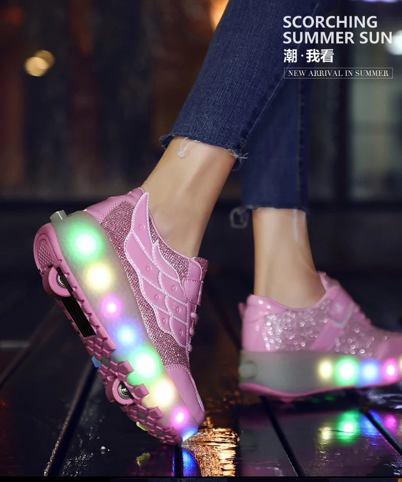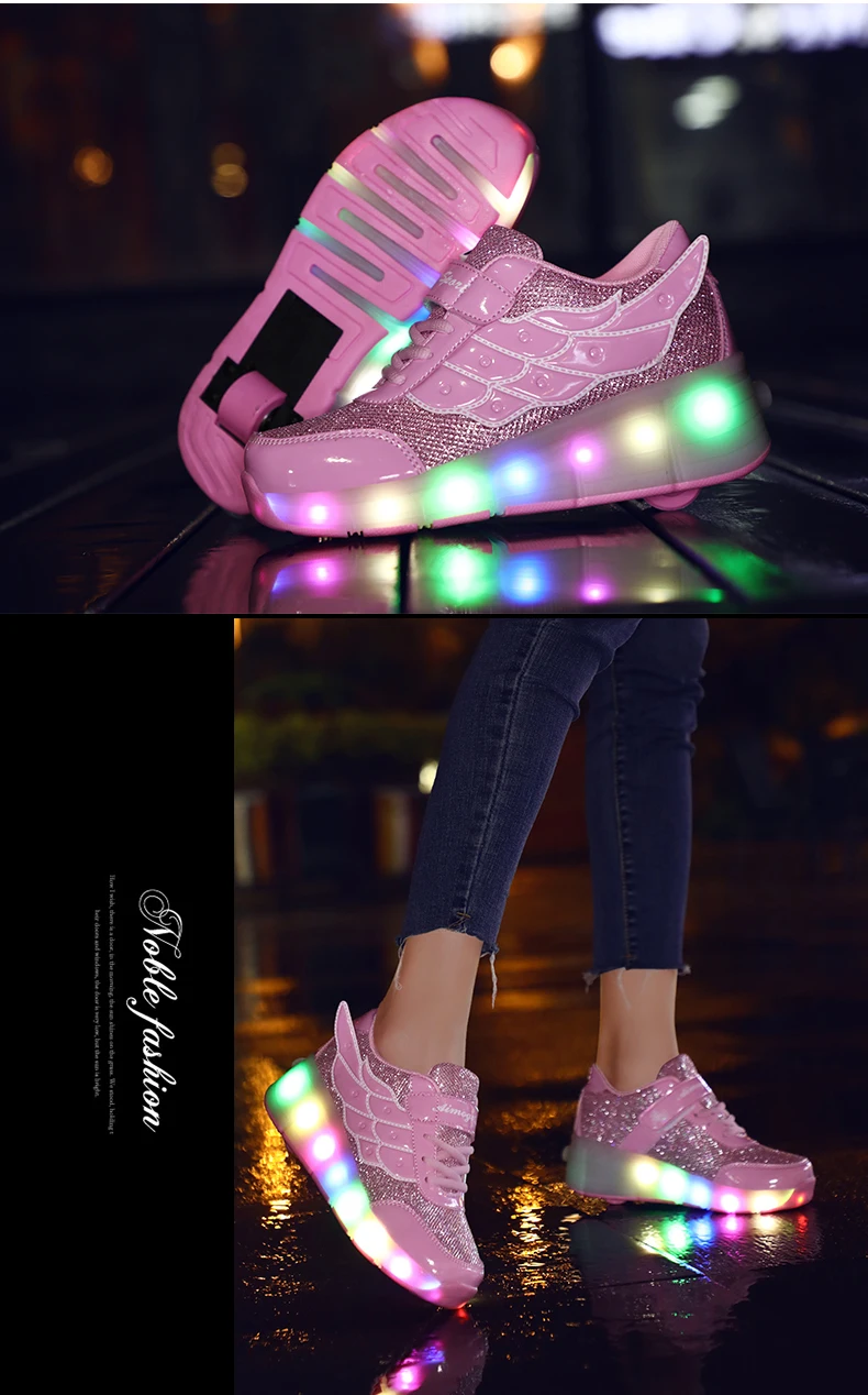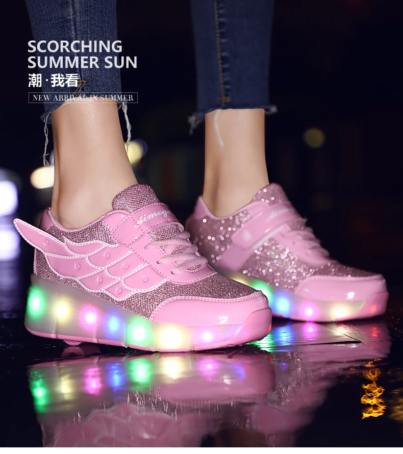 LED Lights Kids Roller Skate Shoes Casual Running Boys Girls Adults With 2 Wheels Parkour Detachable Deformation Skating Shoes