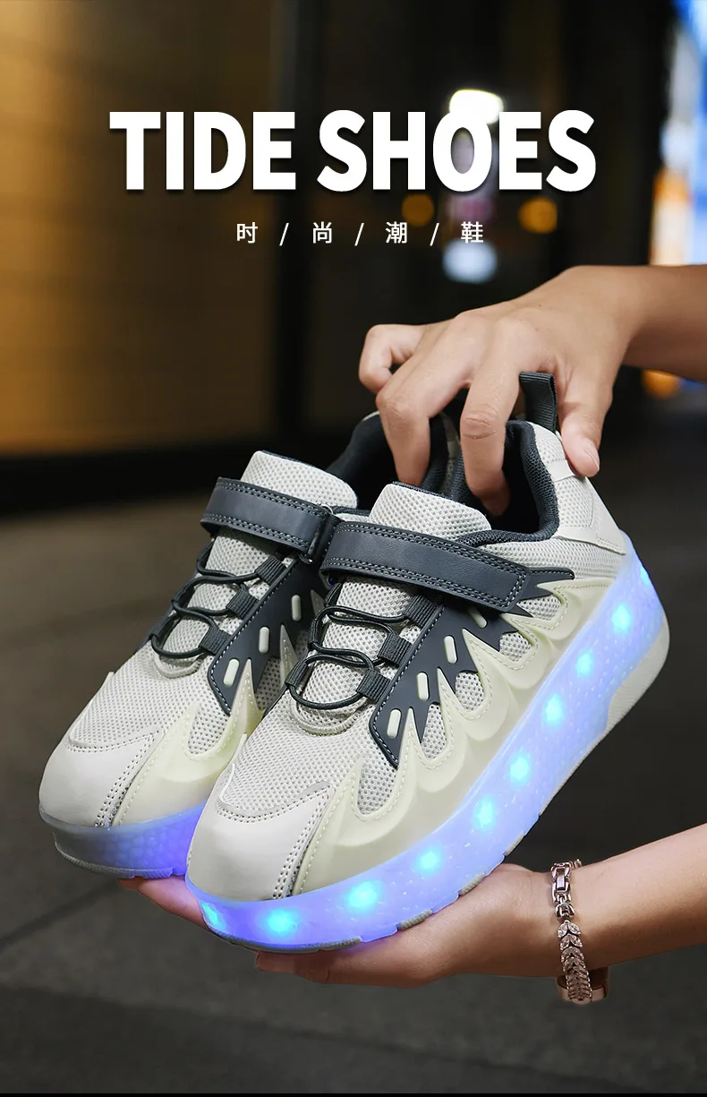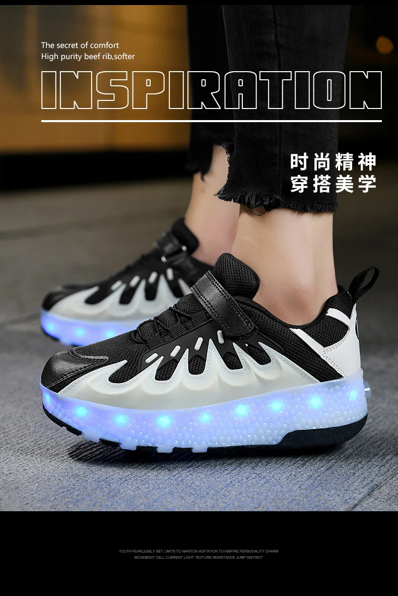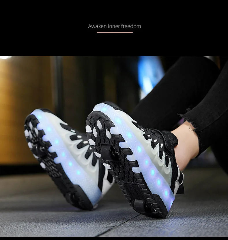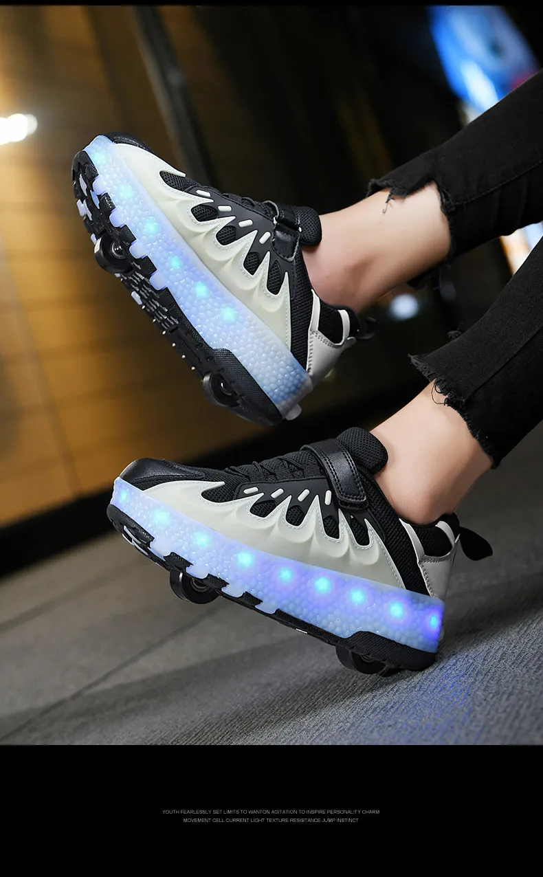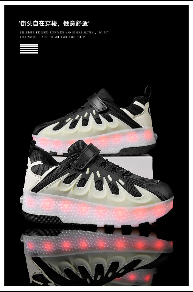 LED Lights Kids Roller Skate Shoes Casual With 2 Wheels Detachable Running Deformation Adults Boys Girls Parkour Skating Shoes