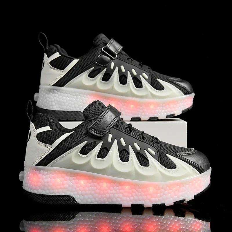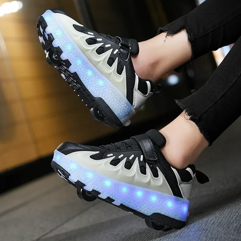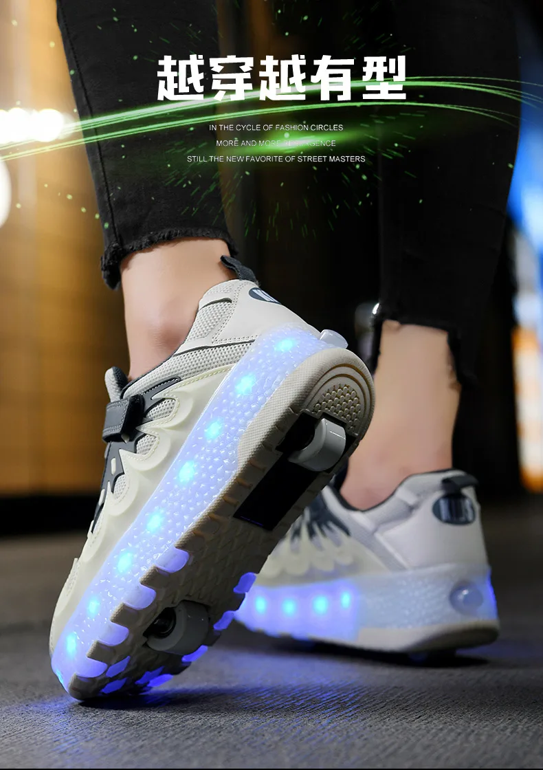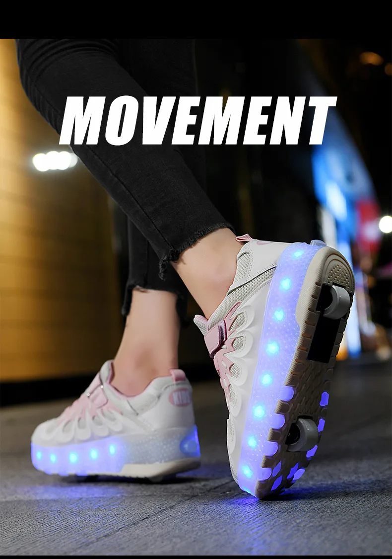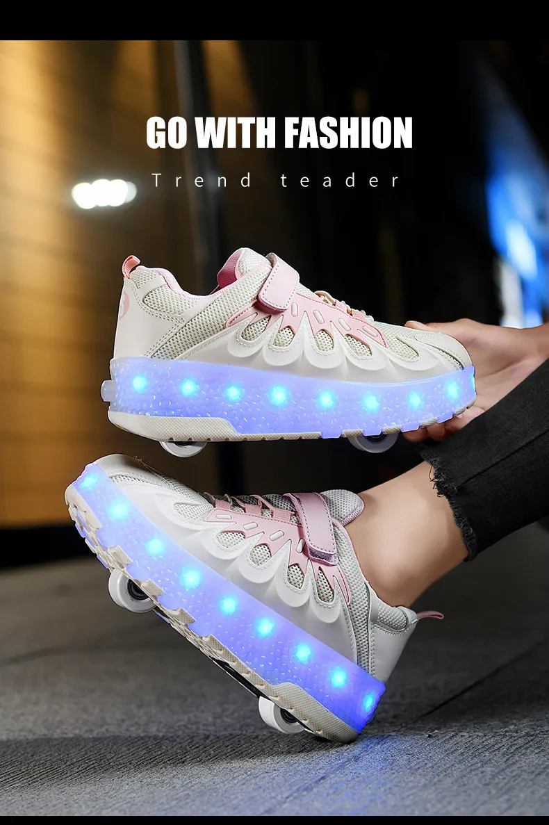 LED Lights Kids Roller Skate Shoes Casual With 2 Wheels Detachable Running Deformation Adults Boys Girls Parkour Skating Shoes
