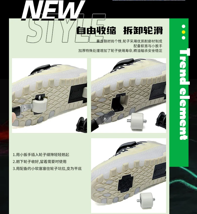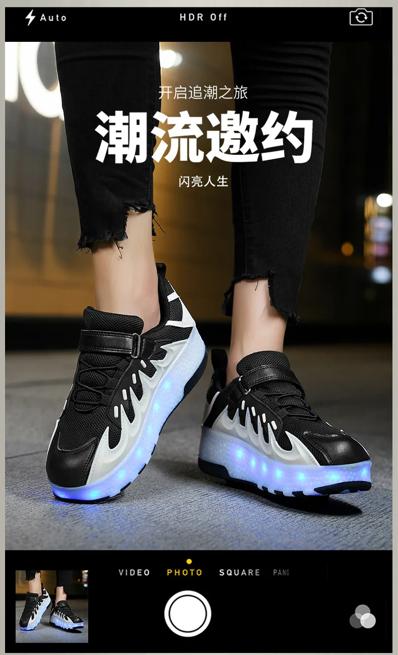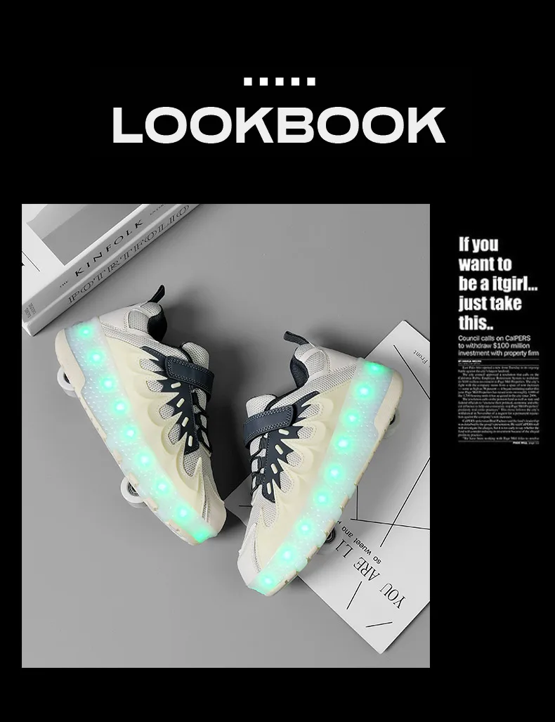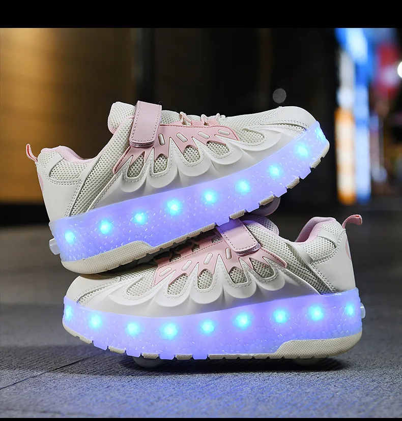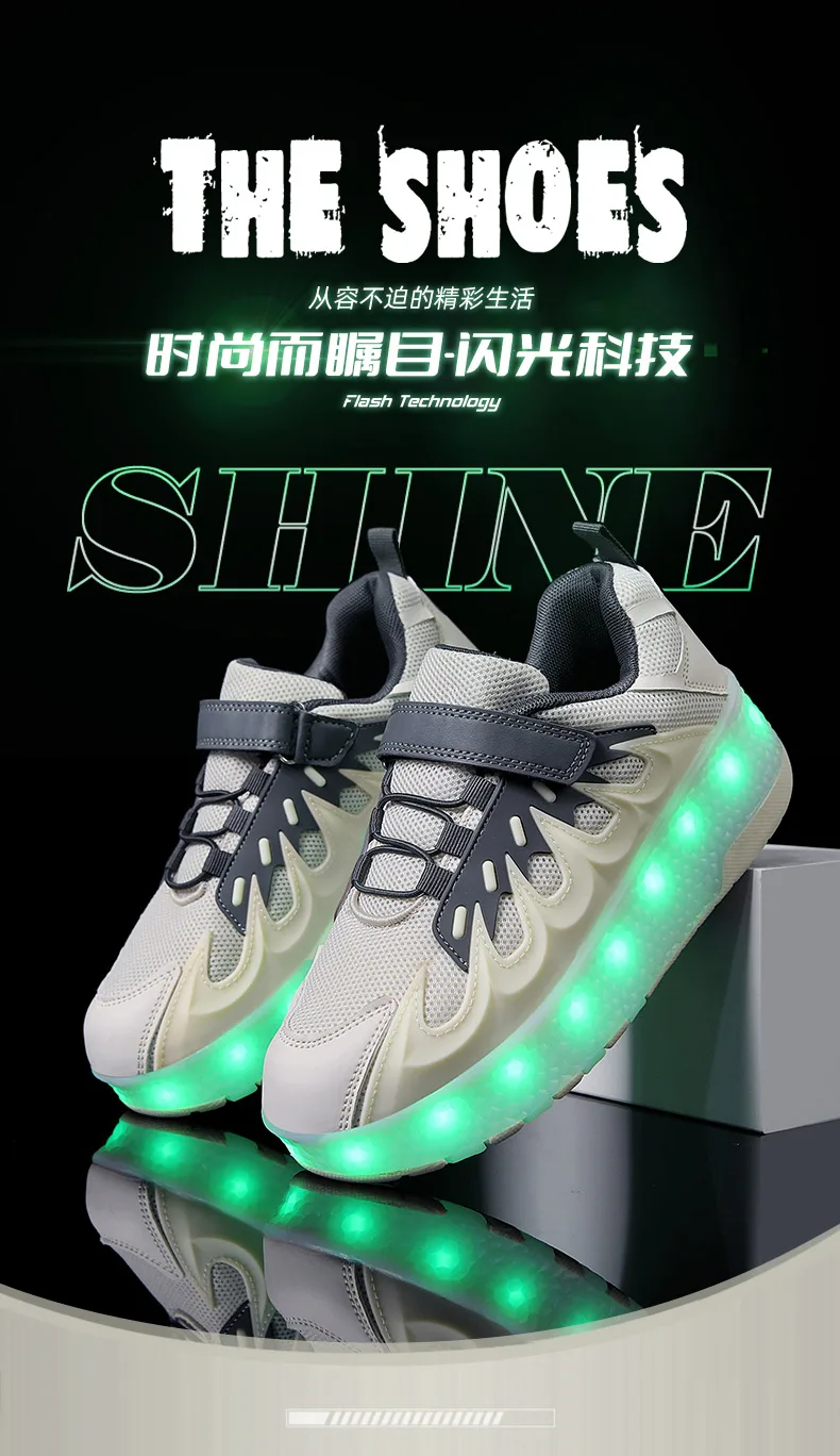 LED Lights Kids Roller Skate Shoes Casual With 2 Wheels Detachable Running Deformation Adults Boys Girls Parkour Skating Shoes
