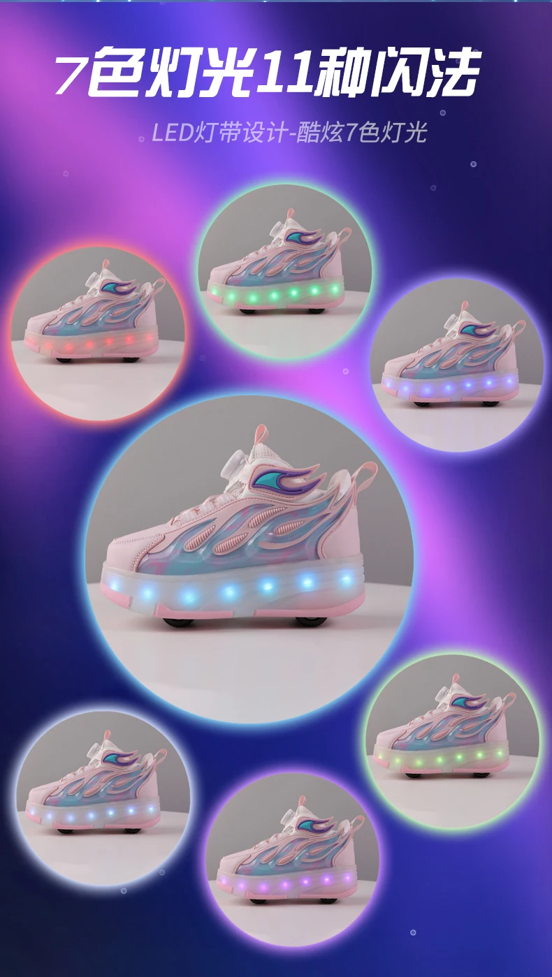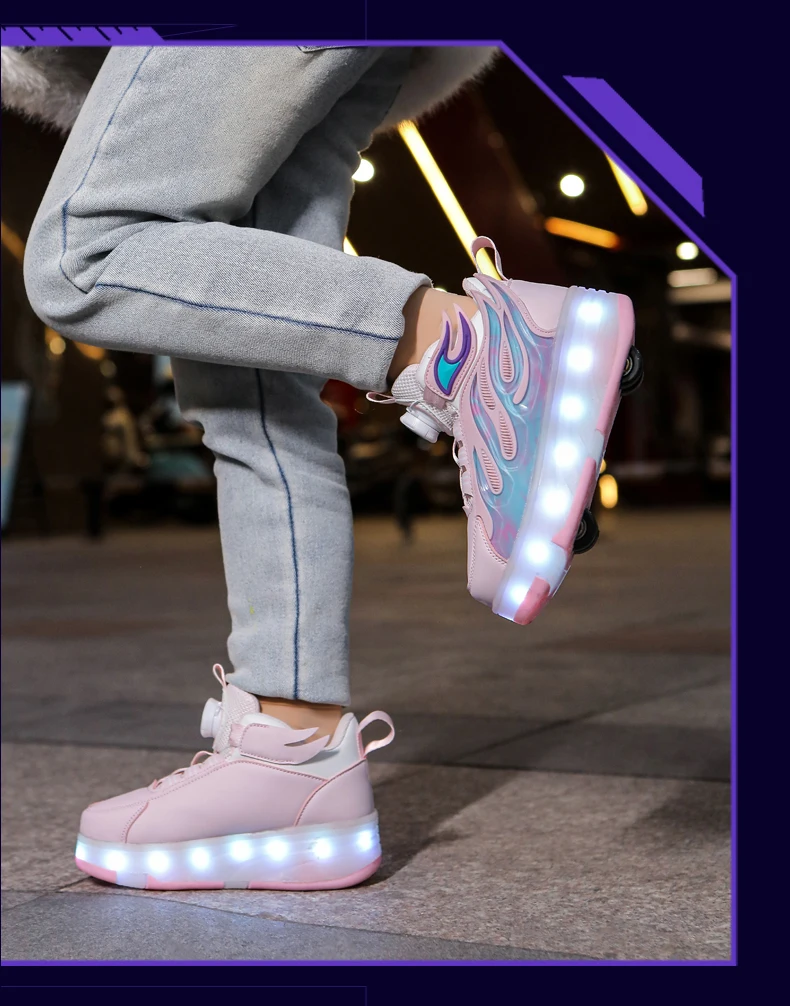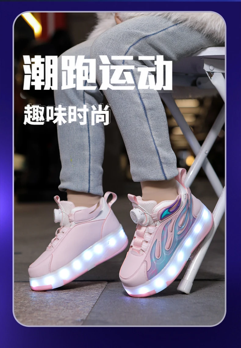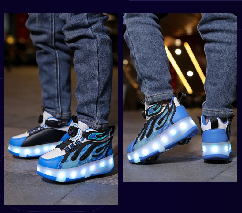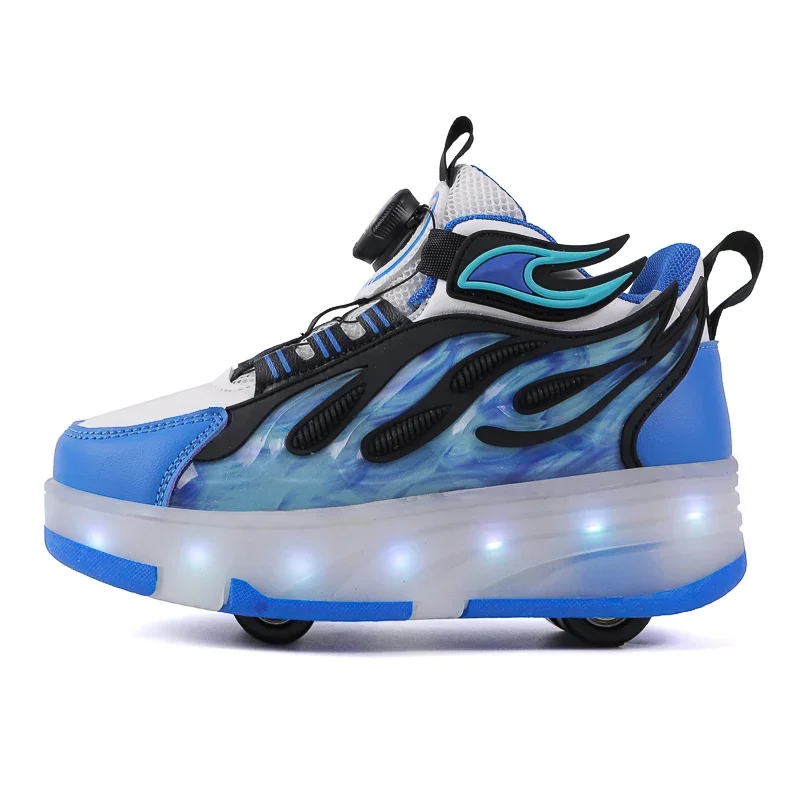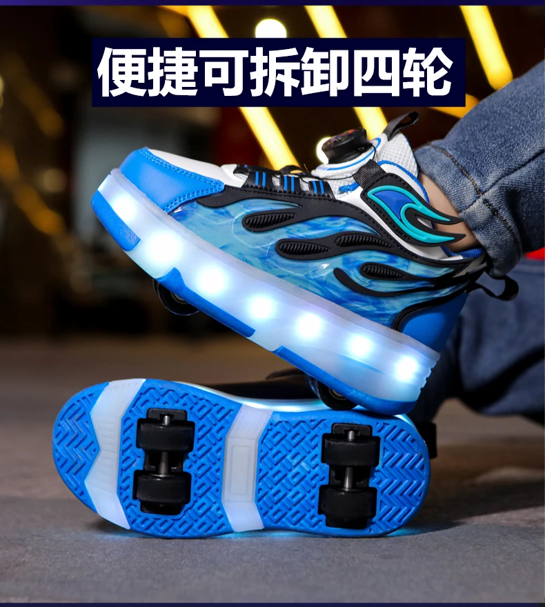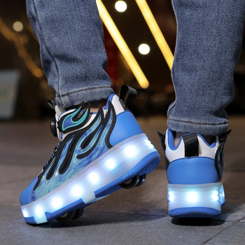 LED Lights Kids Roller Skate Shoes Deformation Sport Boys Girls Parkour Sneakers Running With 4 Wheels Detachable Skating Shoes