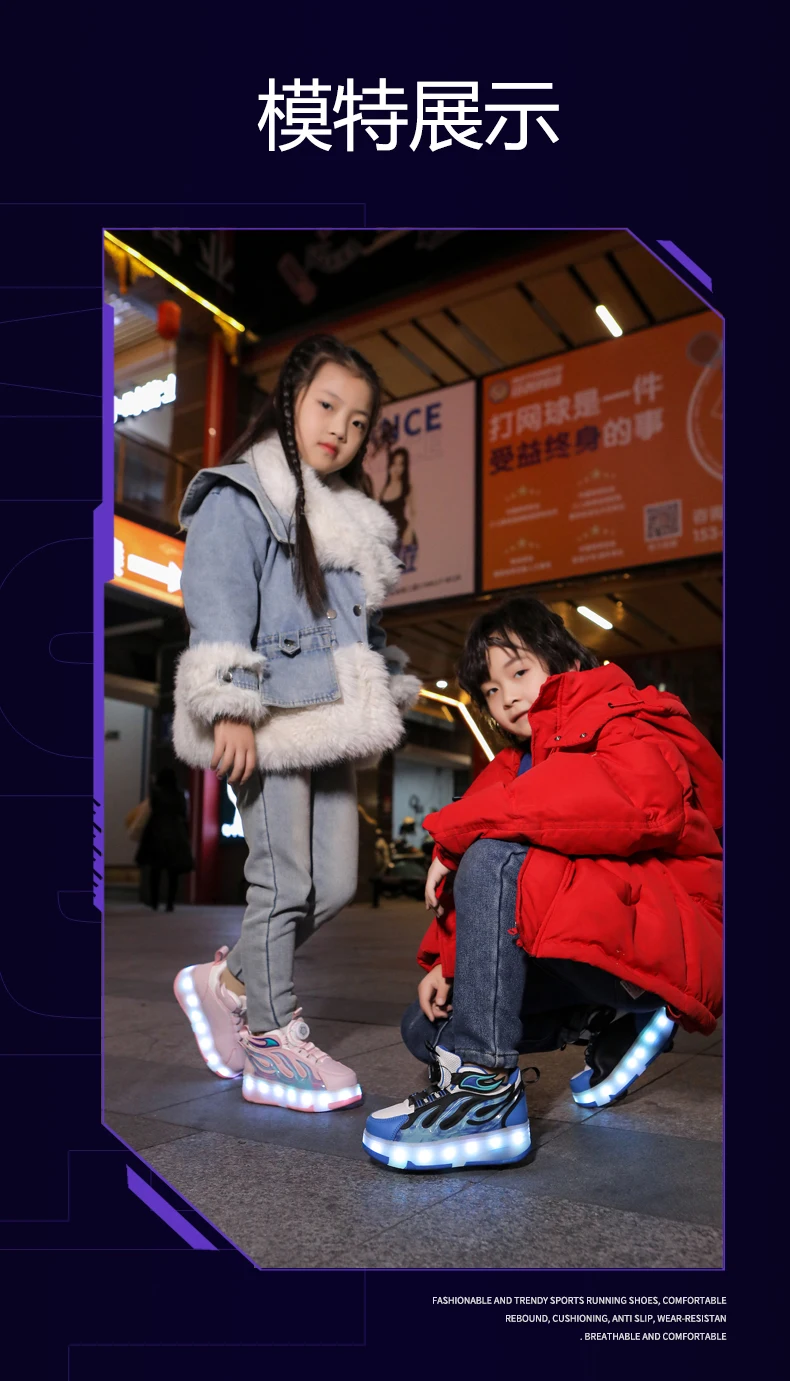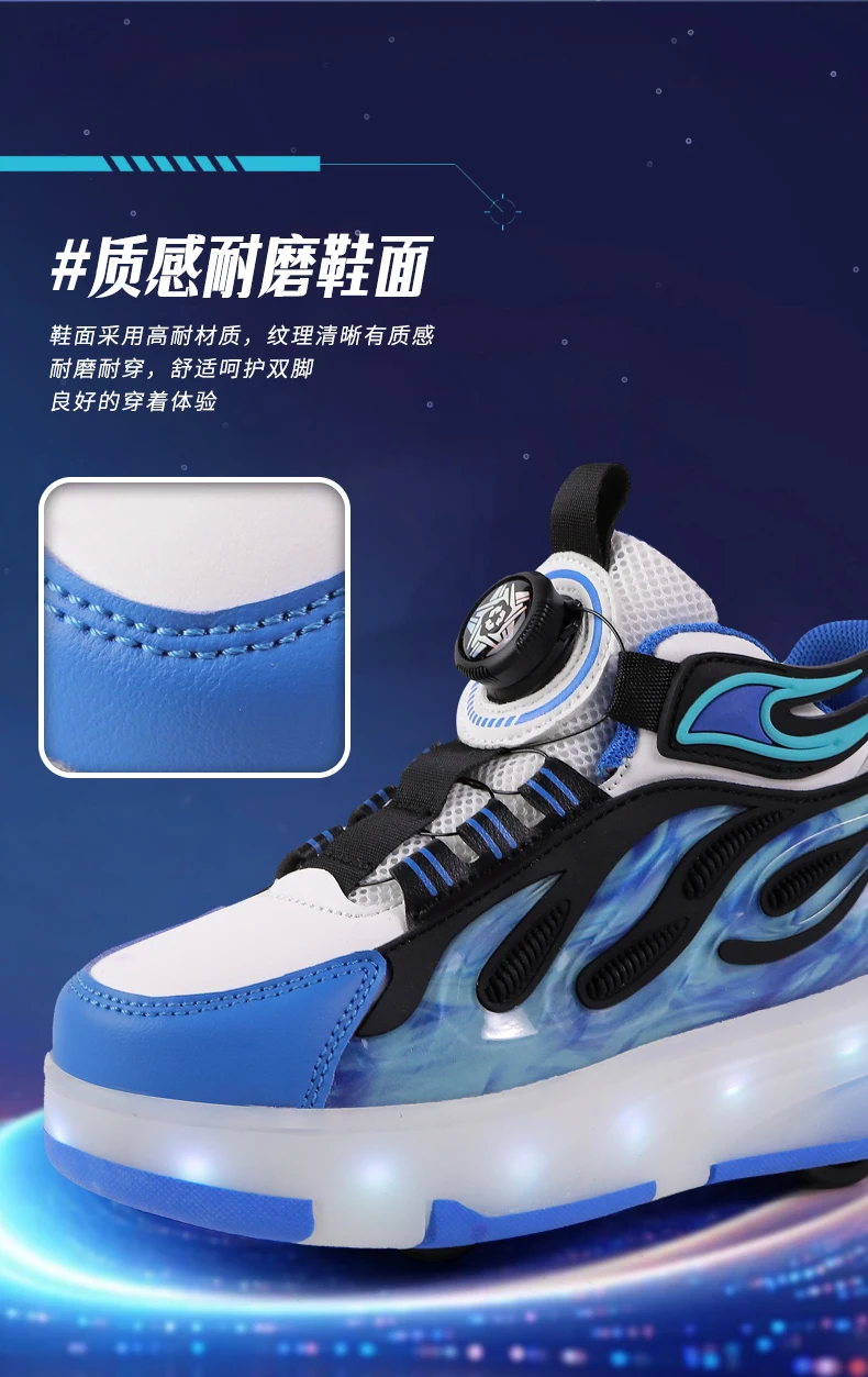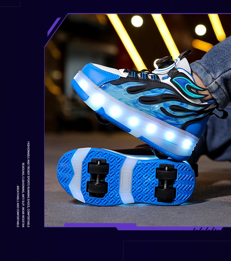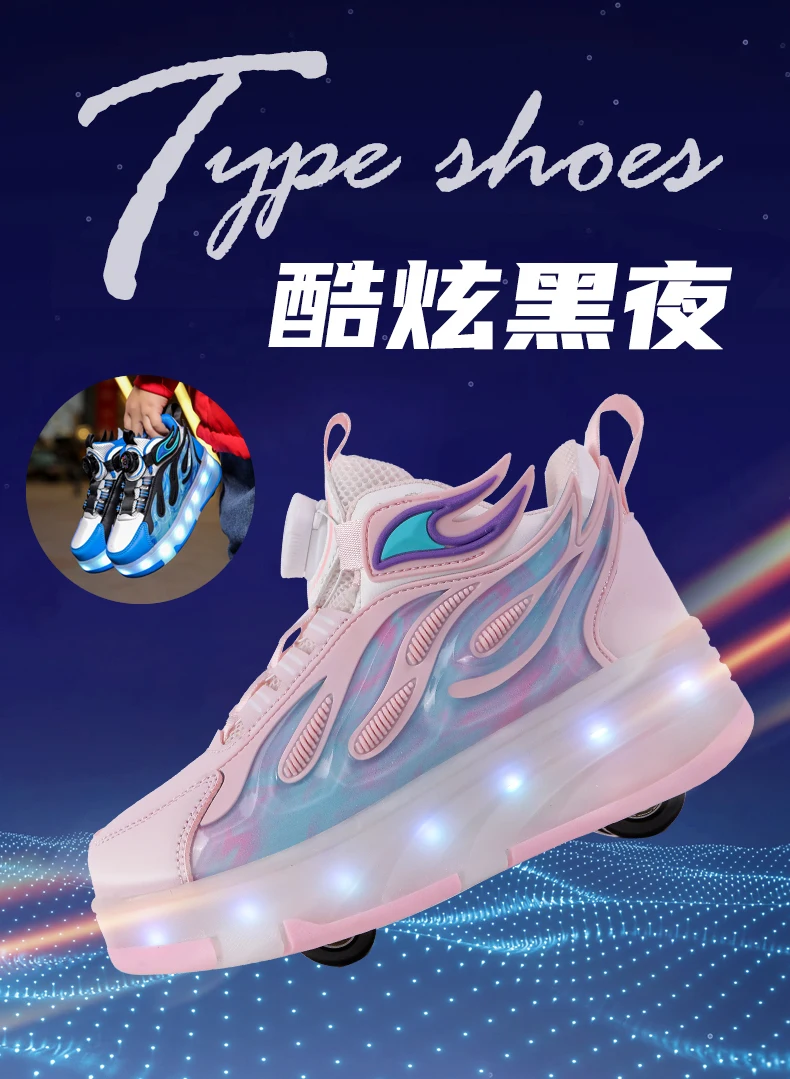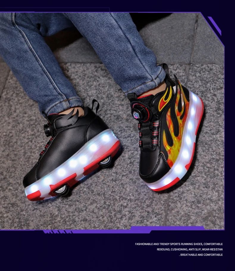 LED Lights Kids Roller Skate Shoes Deformation Sport Boys Girls Parkour Sneakers Running With 4 Wheels Detachable Skating Shoes