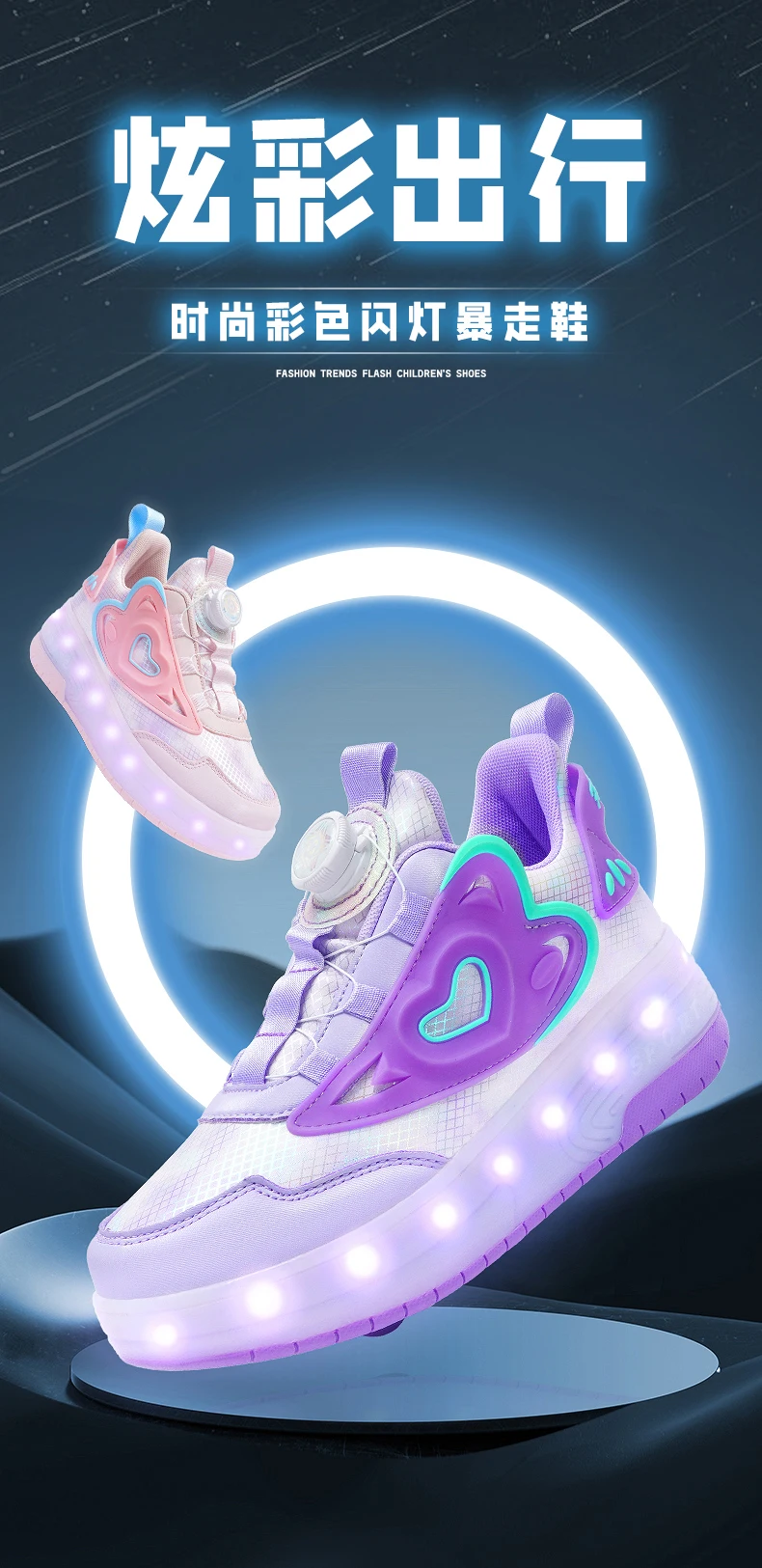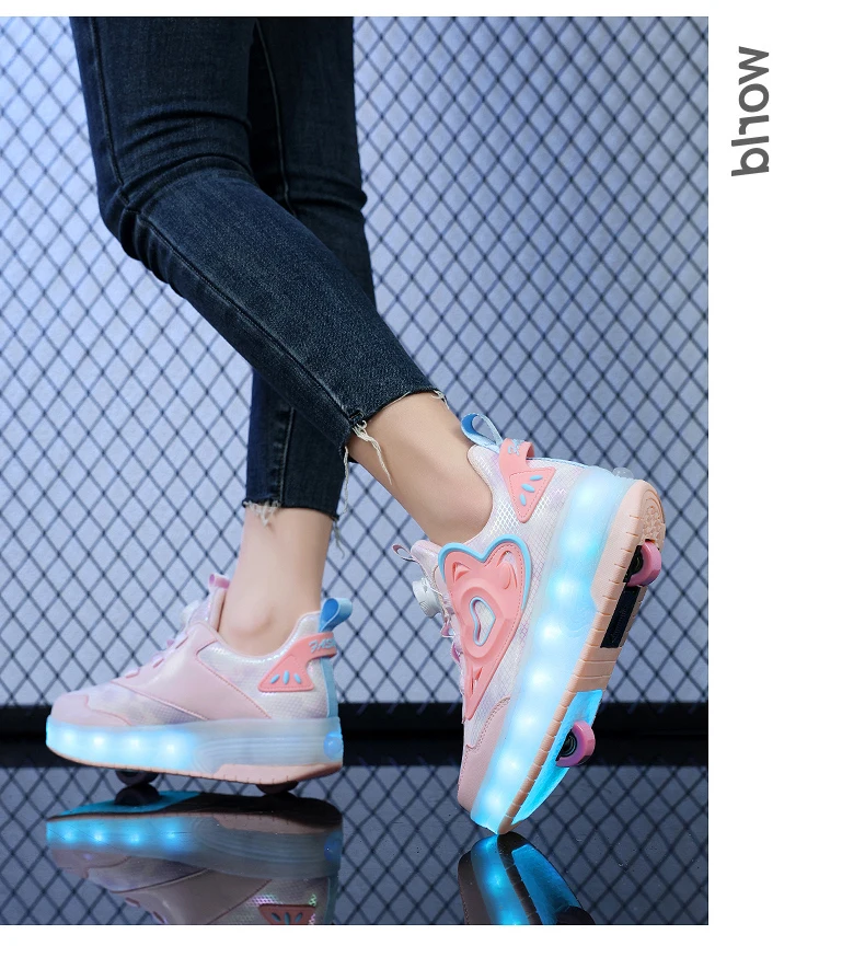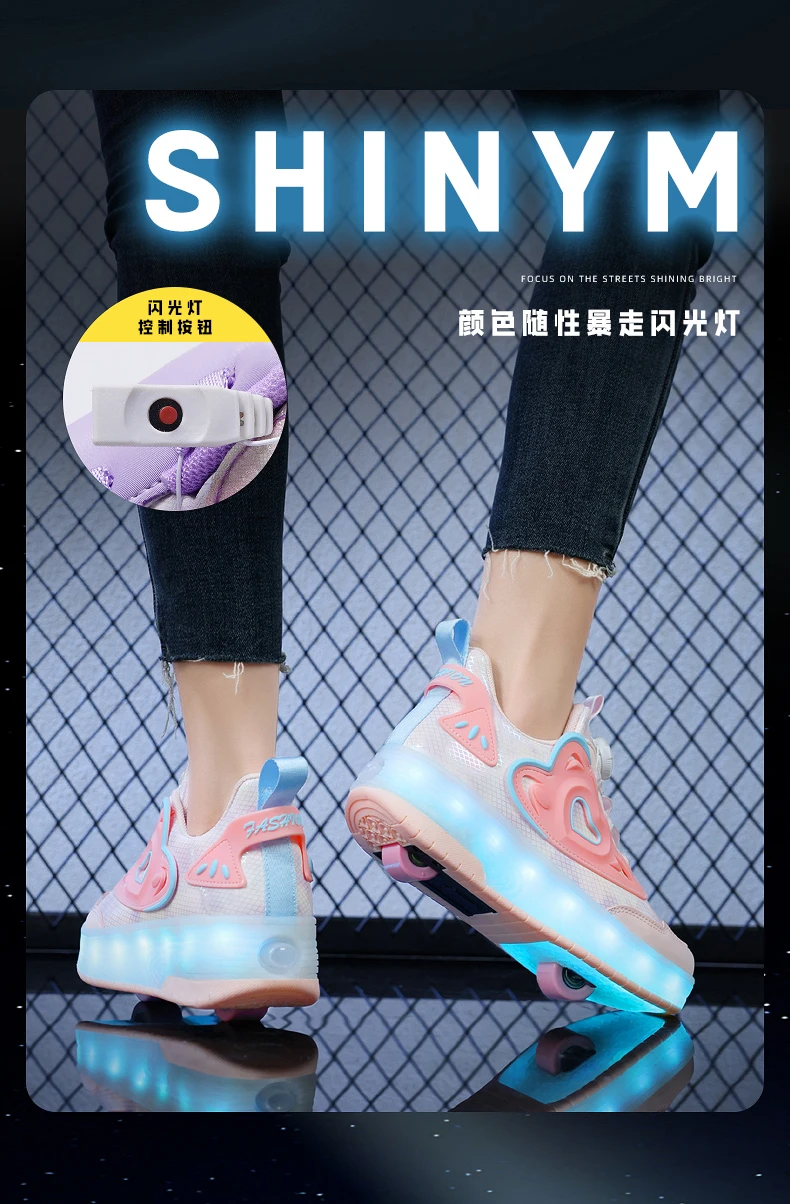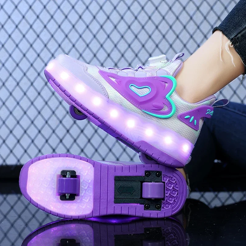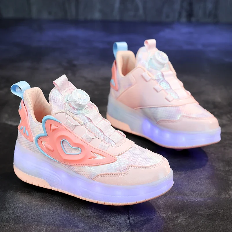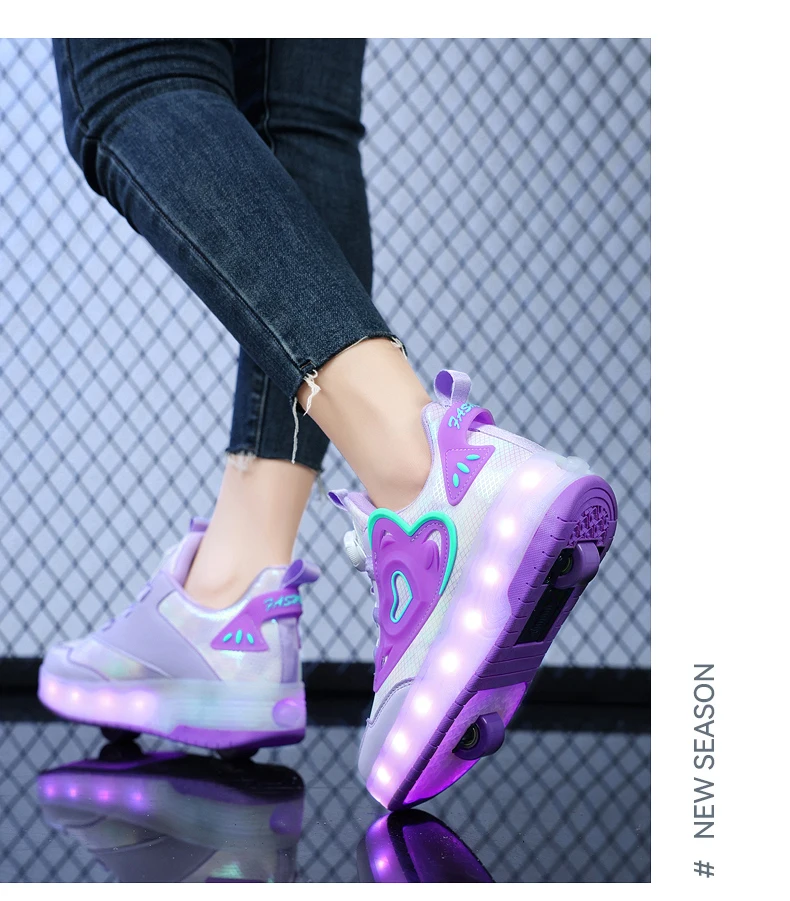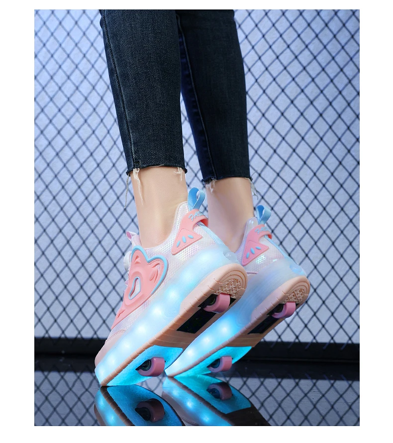 LED Lights Kids Roller Skate Shoes Detachable Casual Boys Girls With 2 Wheels Parkour Sport Deformation Running Skating Shoes