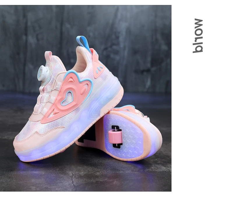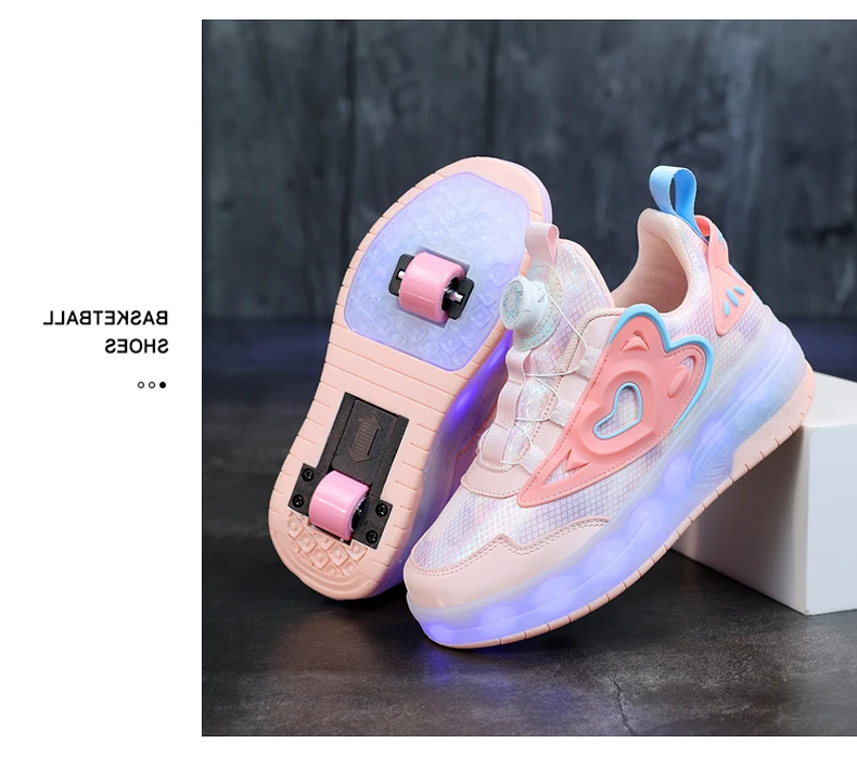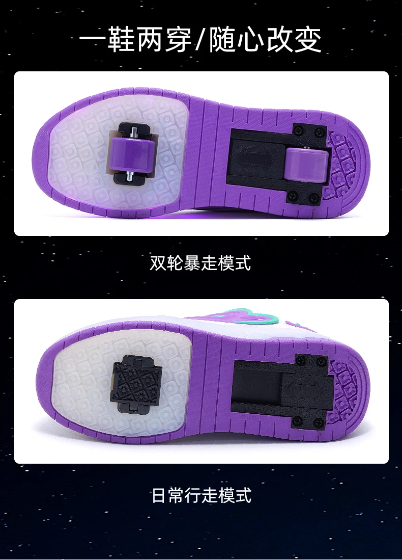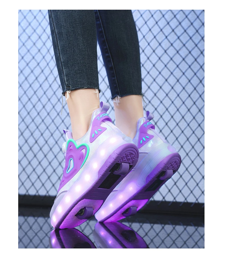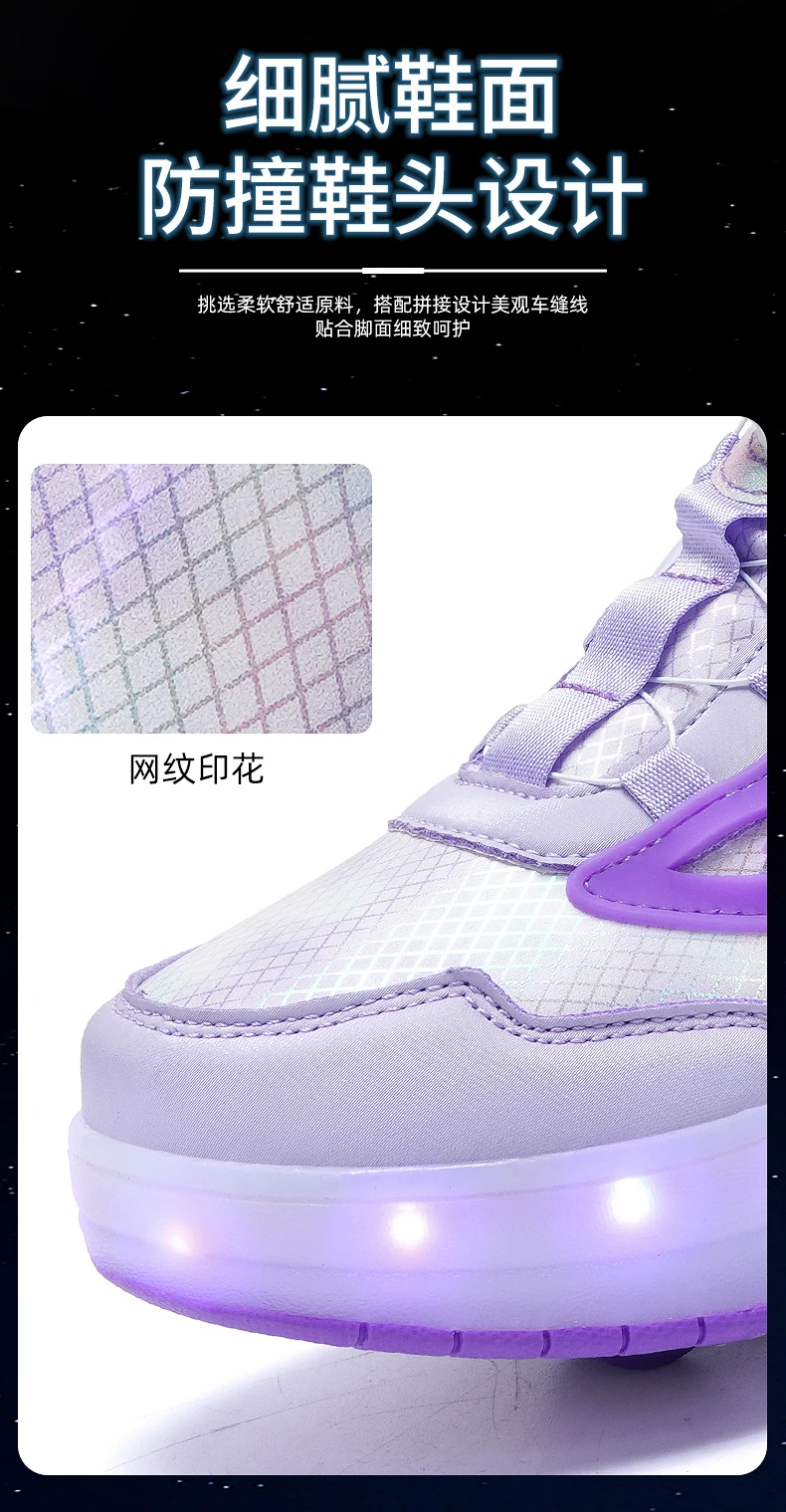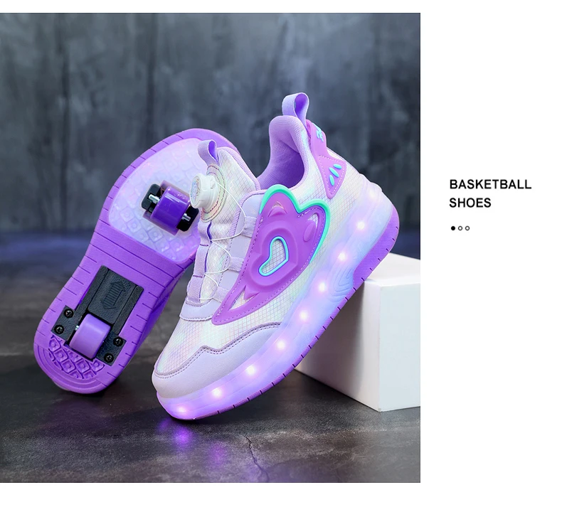 LED Lights Kids Roller Skate Shoes Detachable Casual Boys Girls With 2 Wheels Parkour Sport Deformation Running Skating Shoes