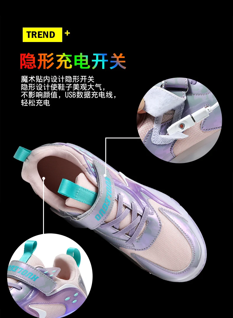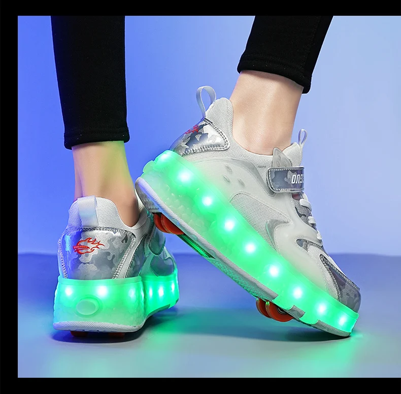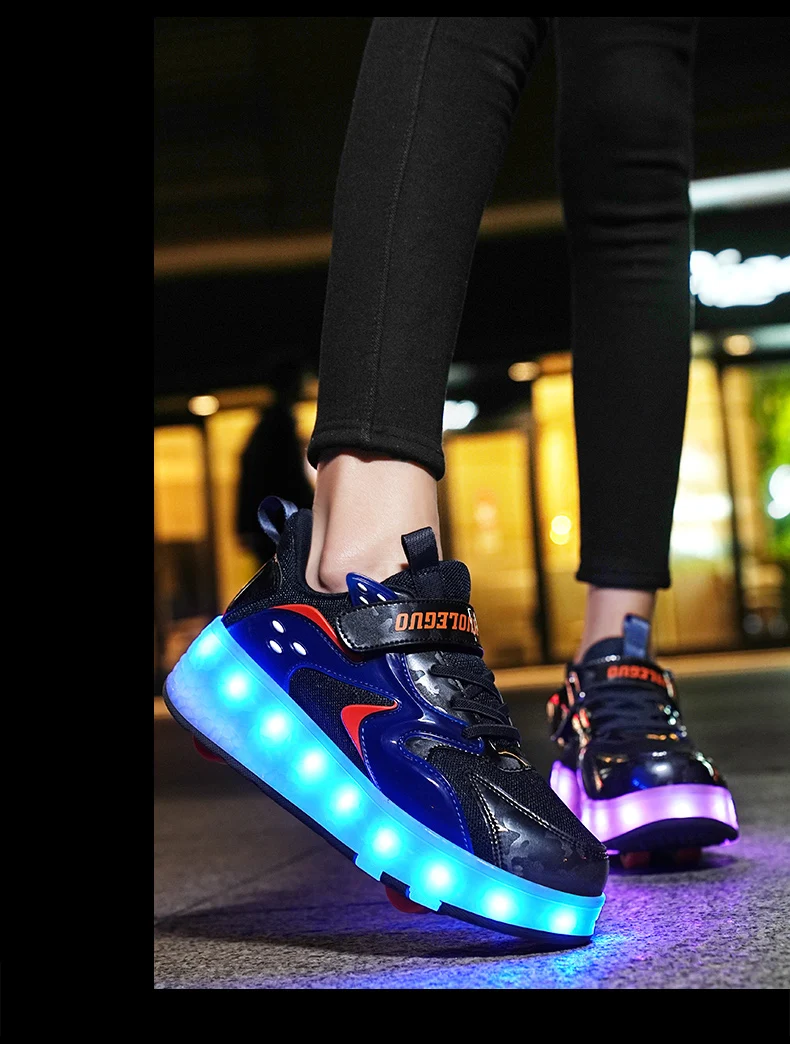 LED Lights Kids Roller Skate Shoes Detachable Sport With 4 Wheels Running Casual Boys Girls Parkour Deformation Skating Shoes