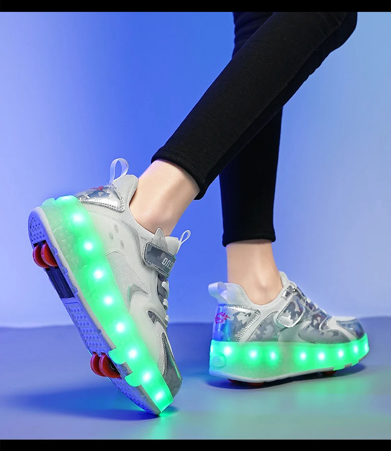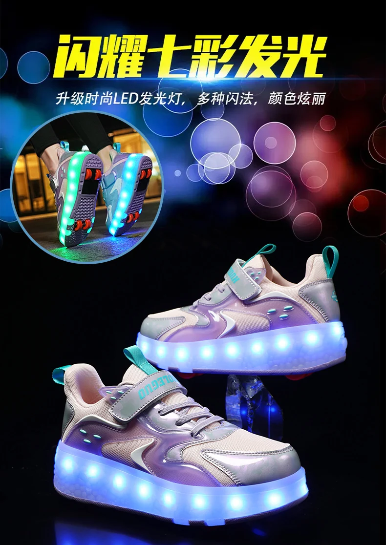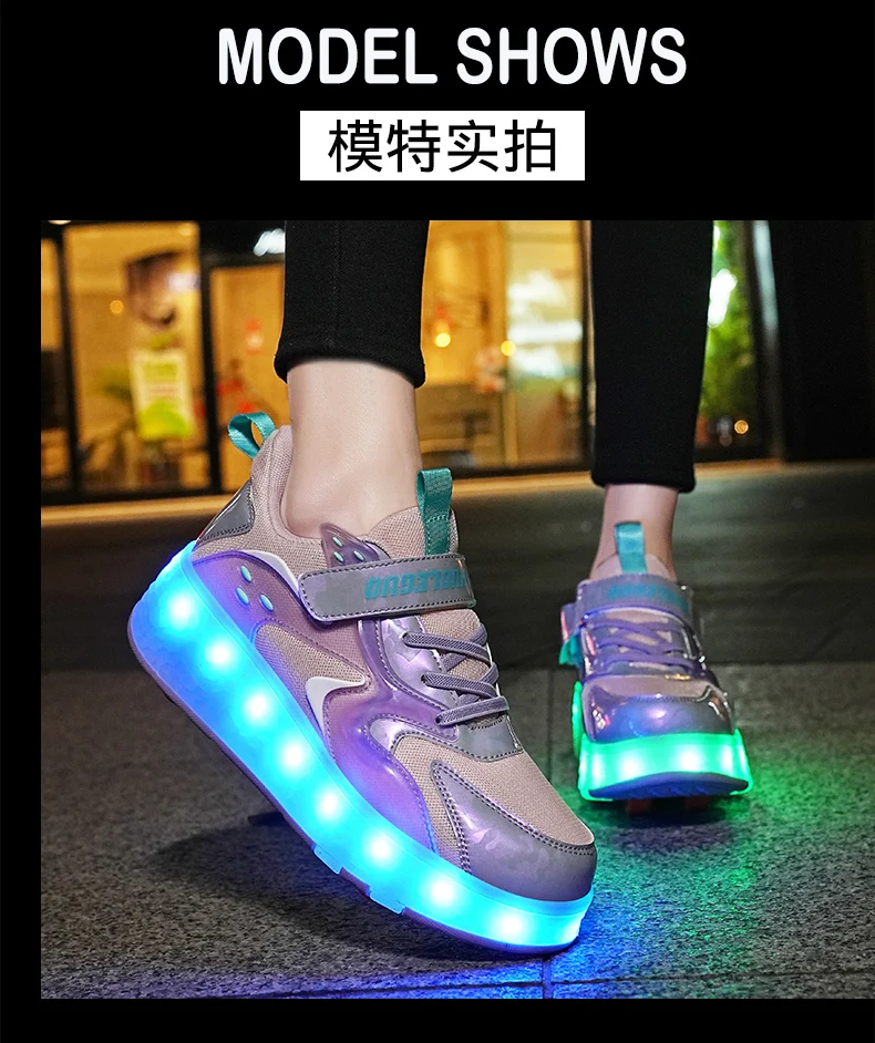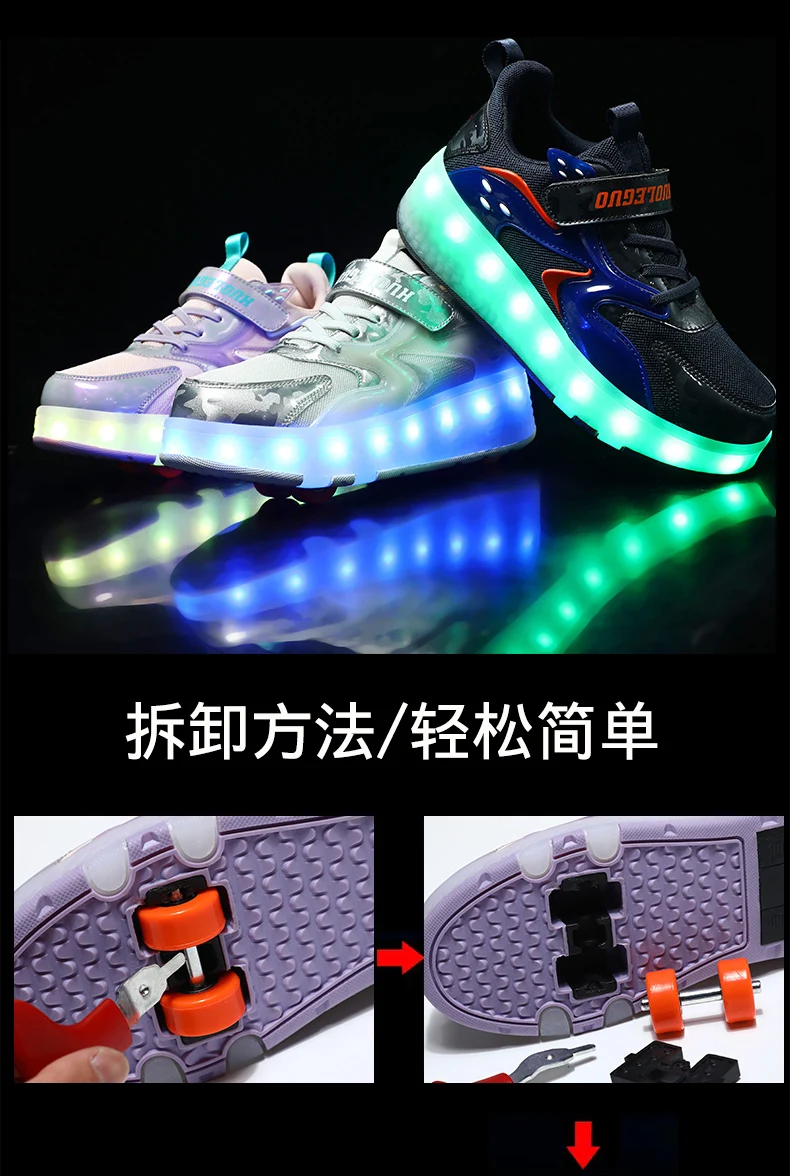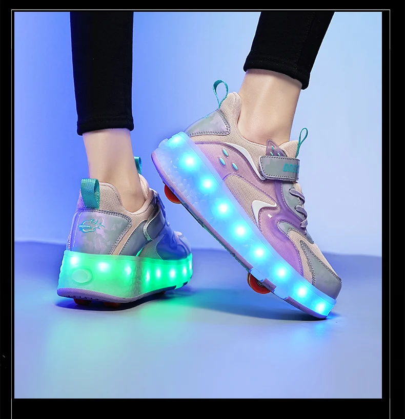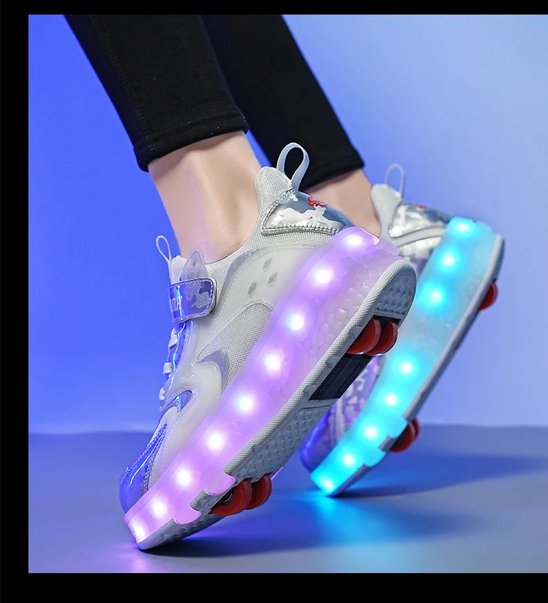 LED Lights Kids Roller Skate Shoes Detachable Sport With 4 Wheels Running Casual Boys Girls Parkour Deformation Skating Shoes