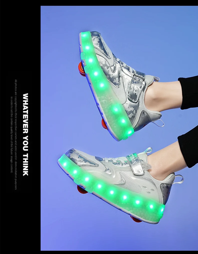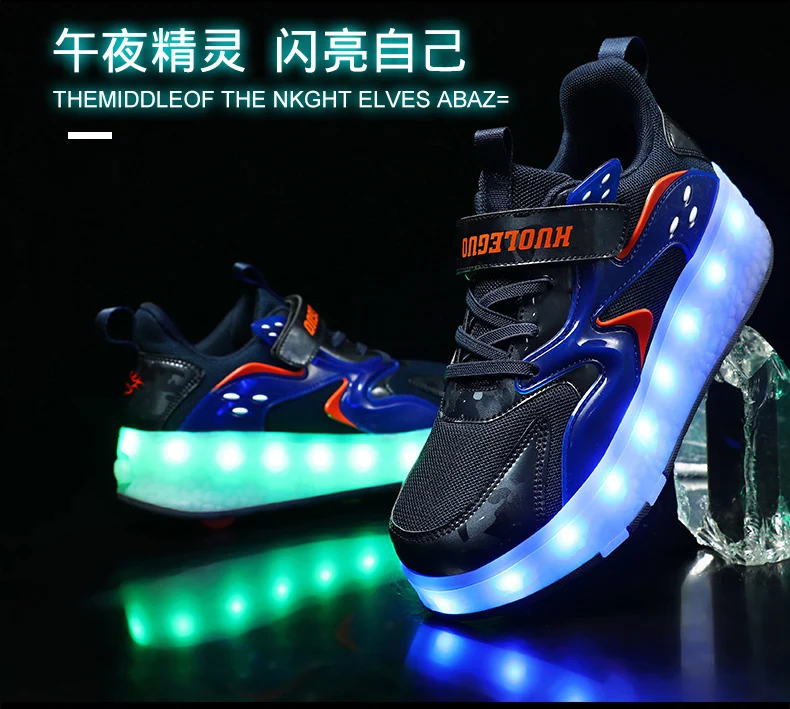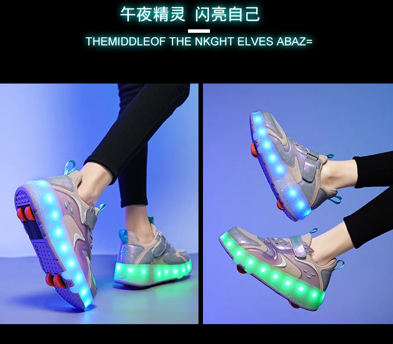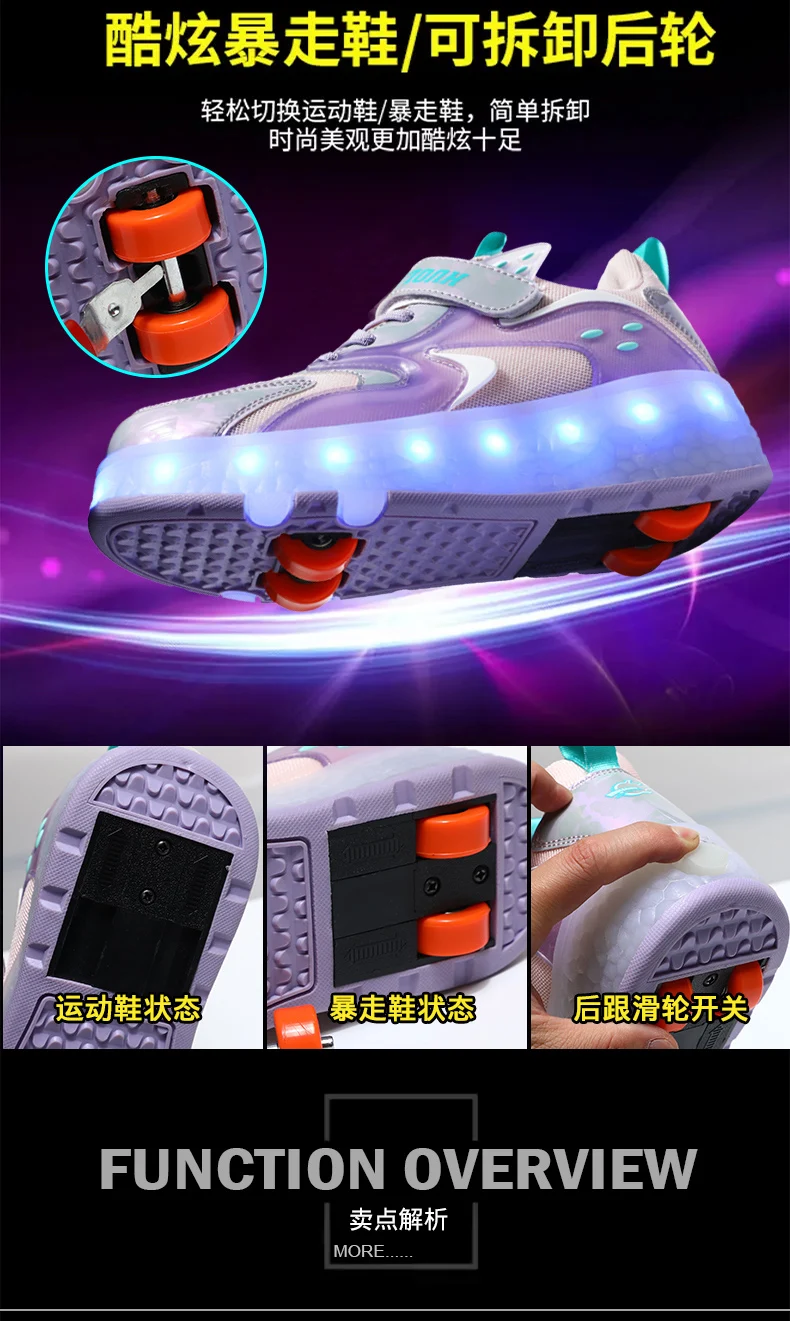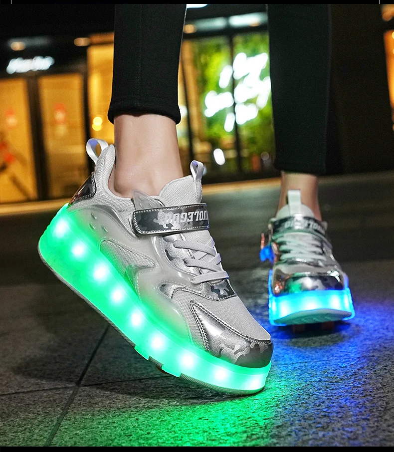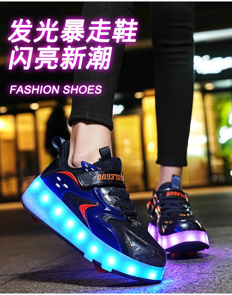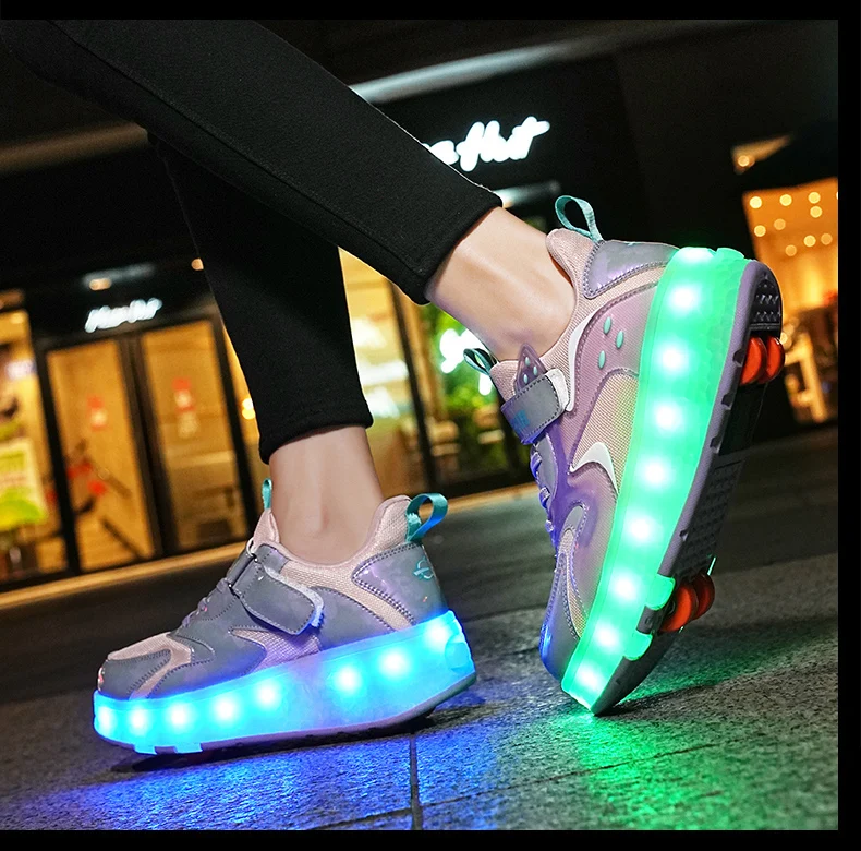 LED Lights Kids Roller Skate Shoes Detachable Sport With 4 Wheels Running Casual Boys Girls Parkour Deformation Skating Shoes