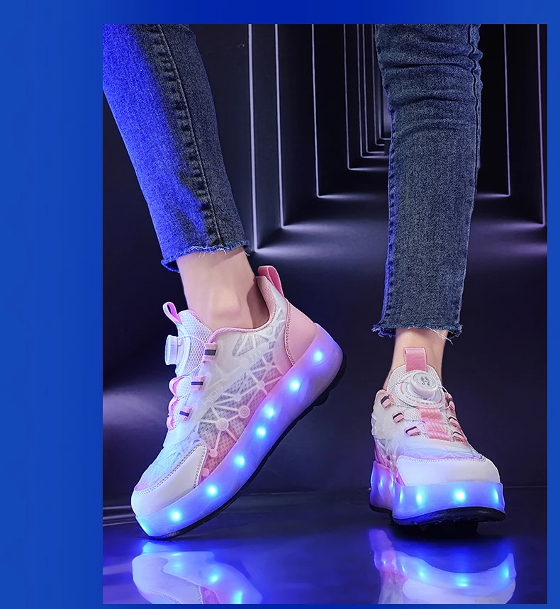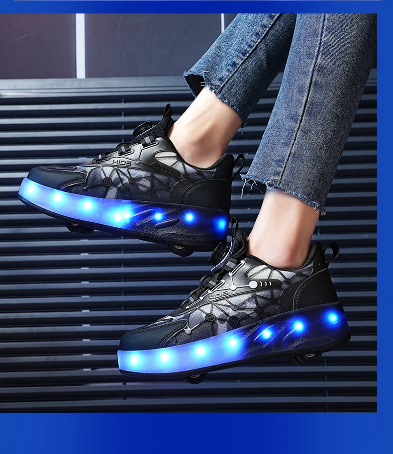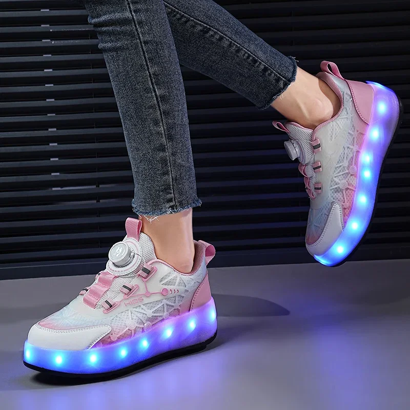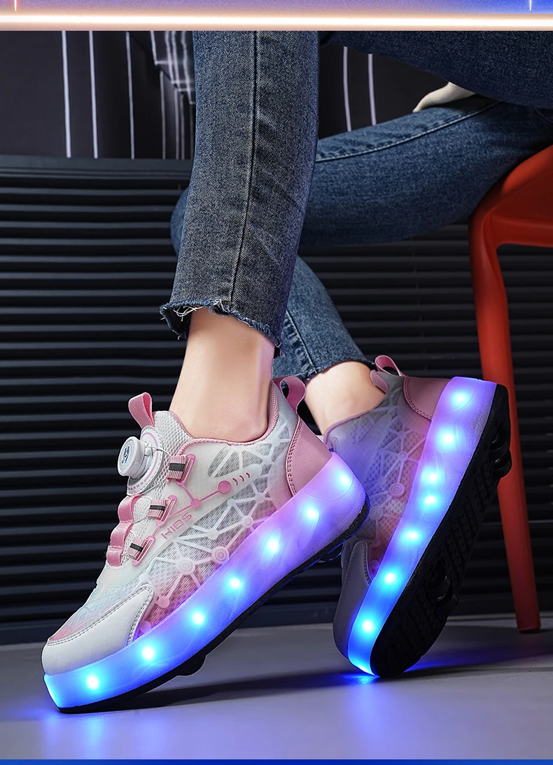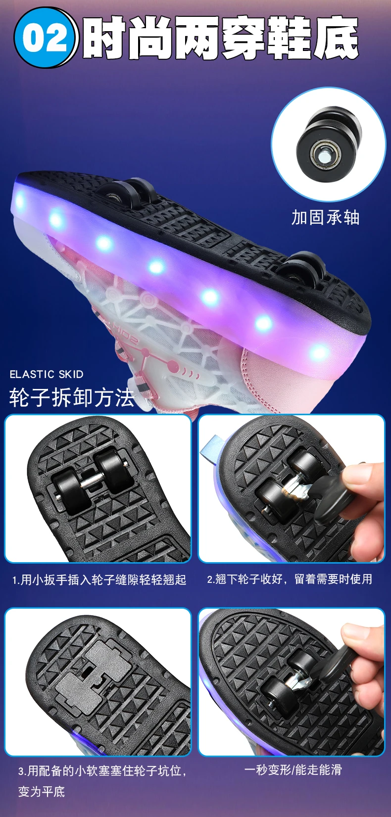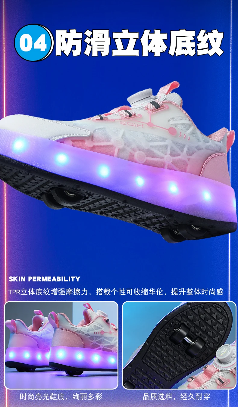 LED Lights Kids Roller Skate Shoes Parkour Adults With 4 Wheels Detachable Boys Girls Running Deformation Casual Skating Shoes