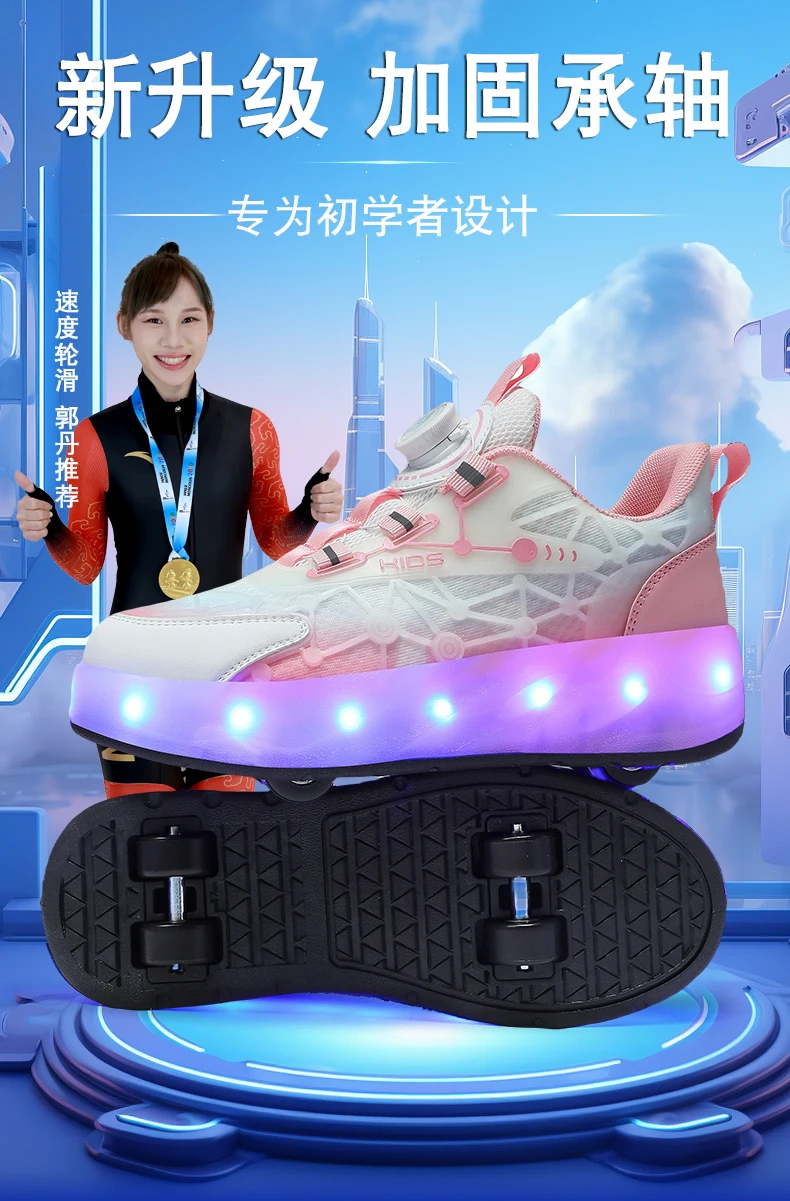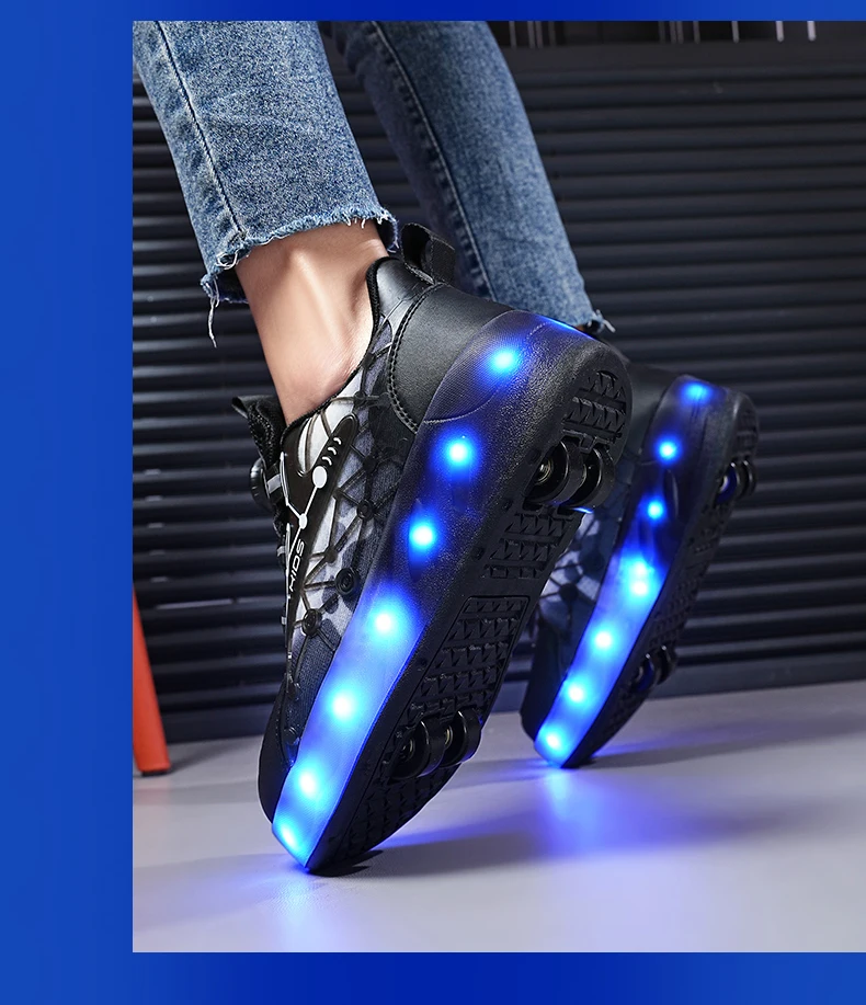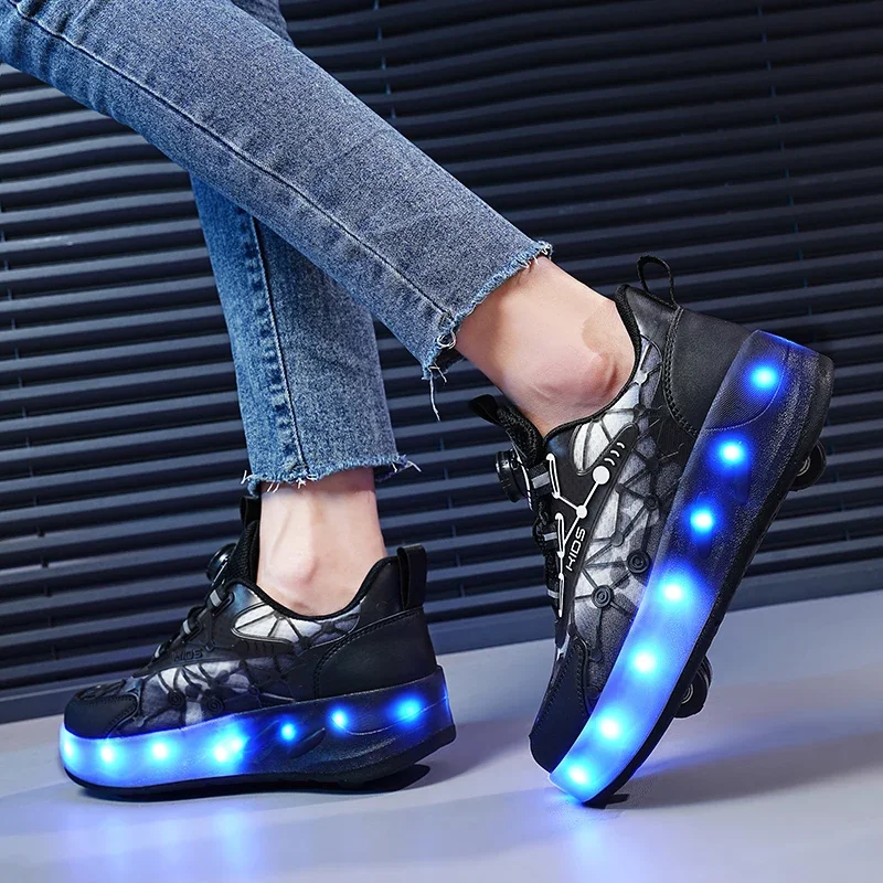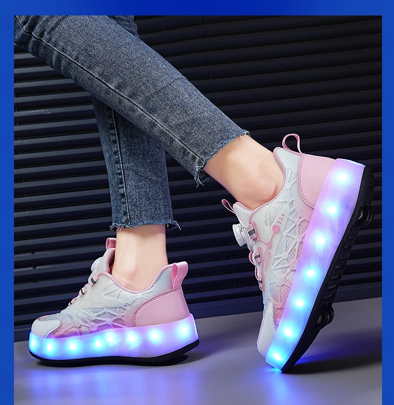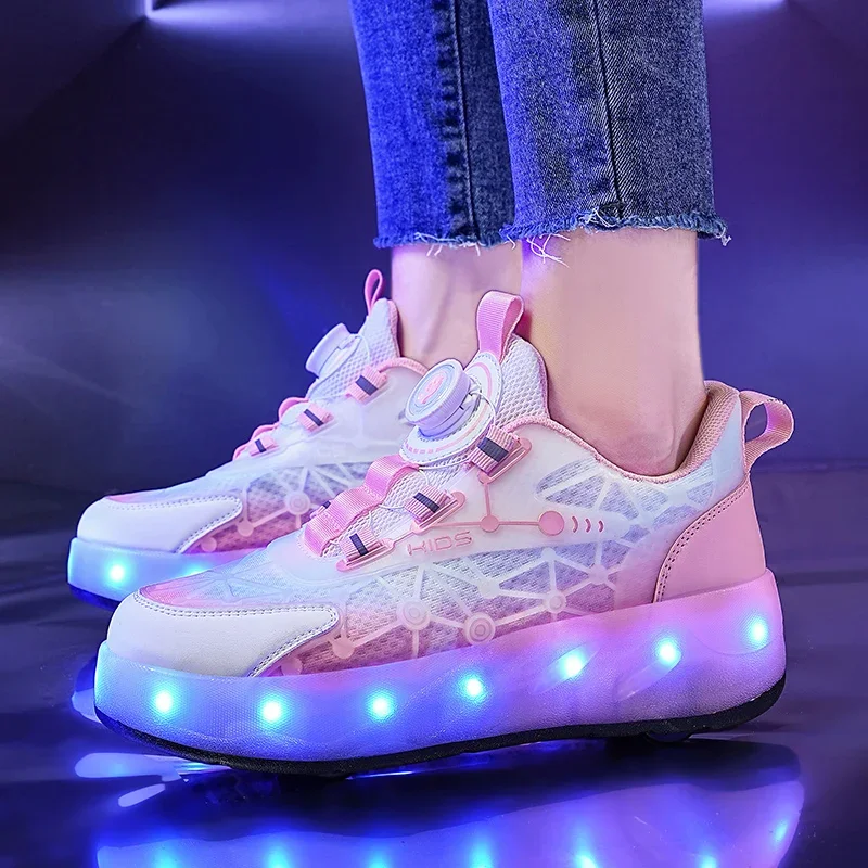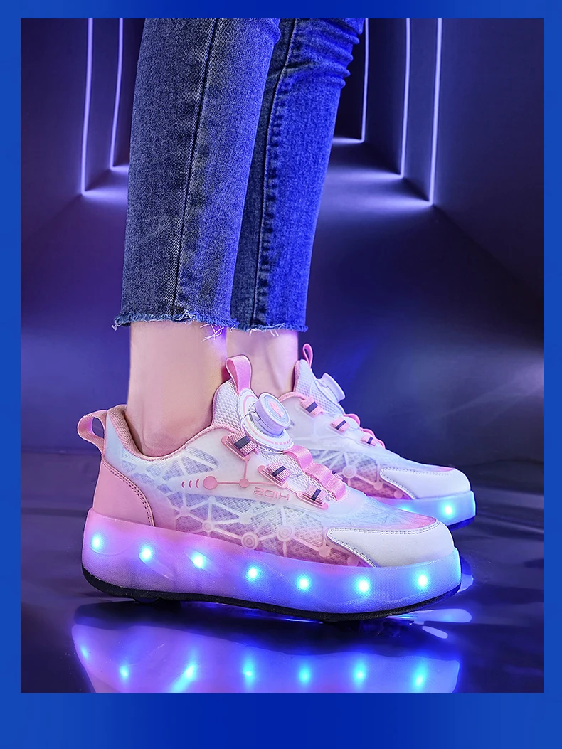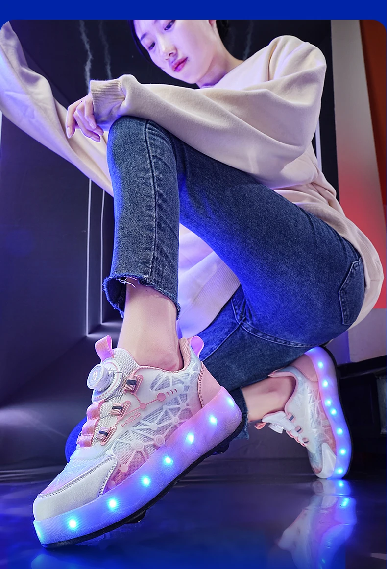 LED Lights Kids Roller Skate Shoes Parkour Adults With 4 Wheels Detachable Boys Girls Running Deformation Casual Skating Shoes
