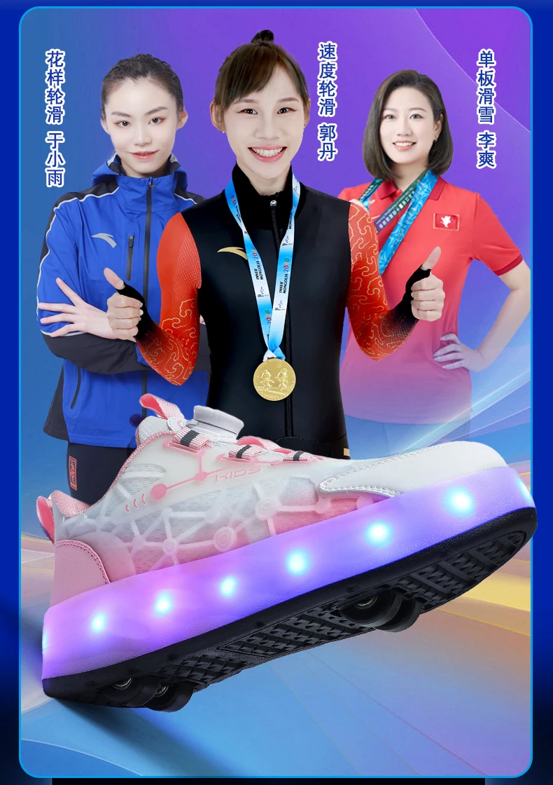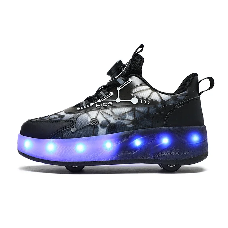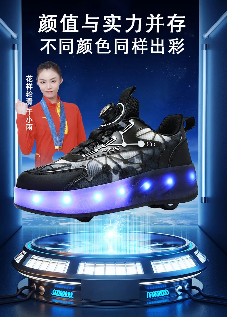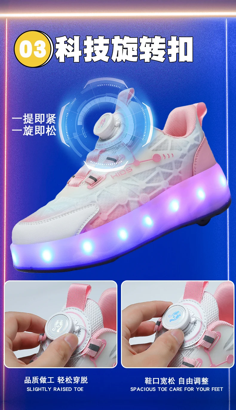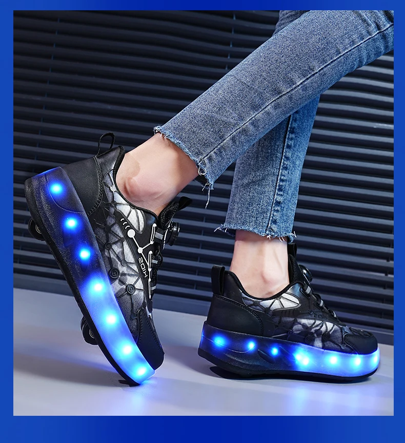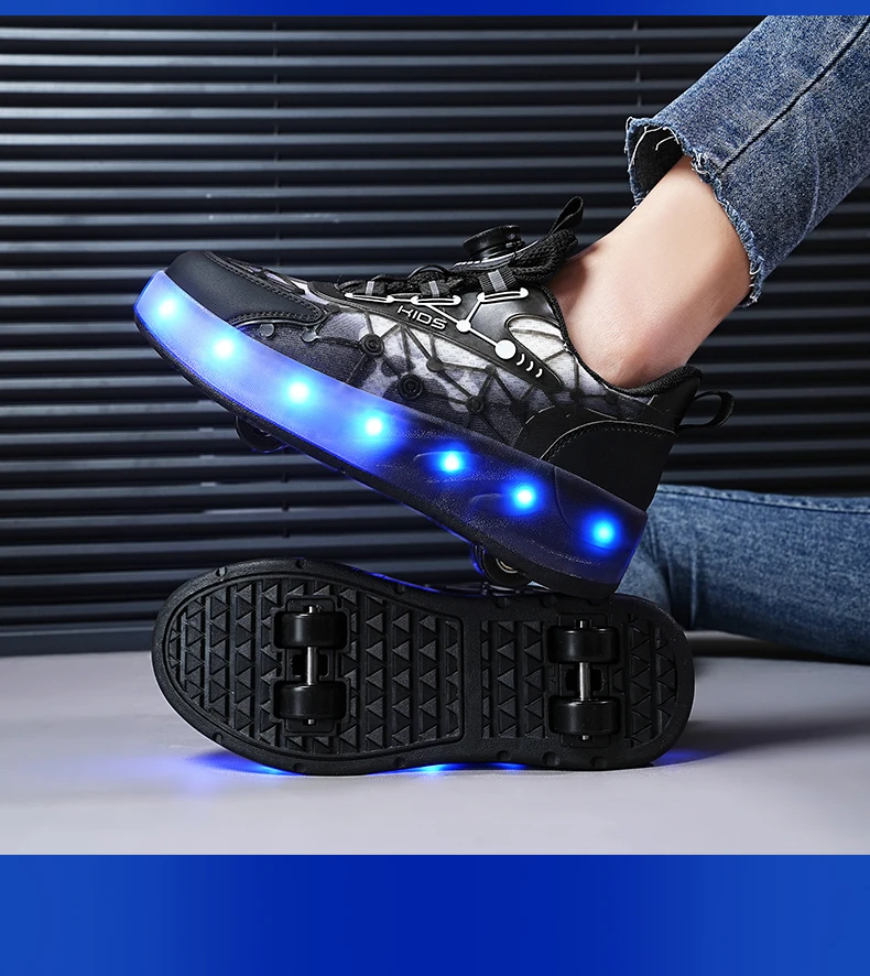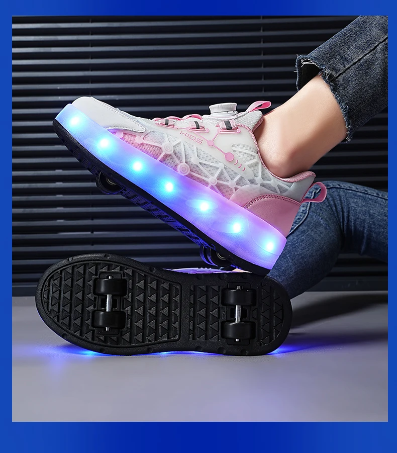 LED Lights Kids Roller Skate Shoes Parkour Adults With 4 Wheels Detachable Boys Girls Running Deformation Casual Skating Shoes