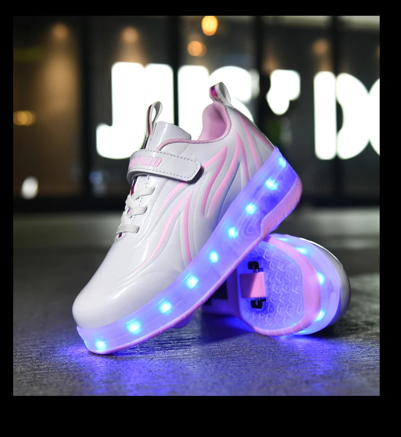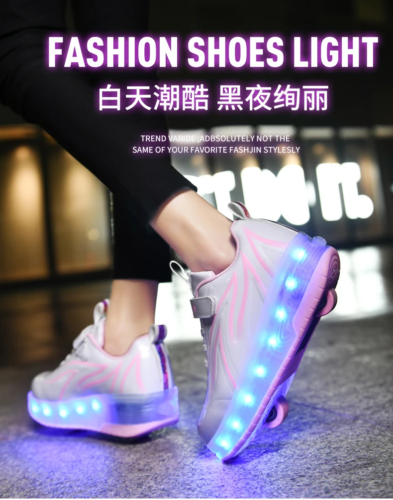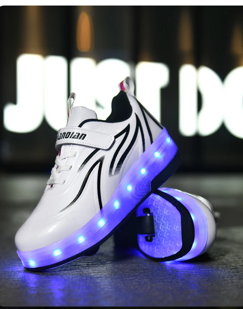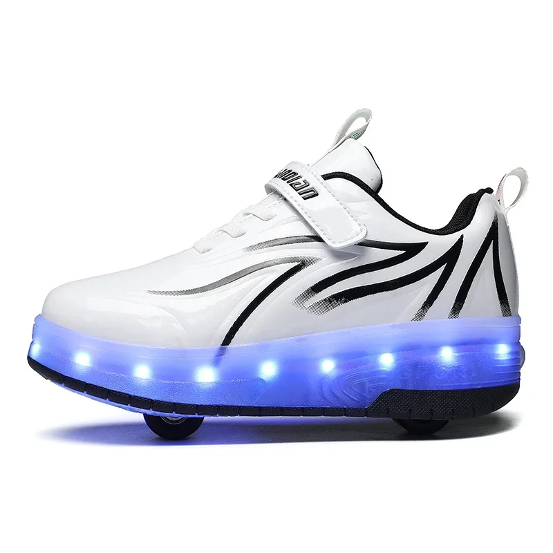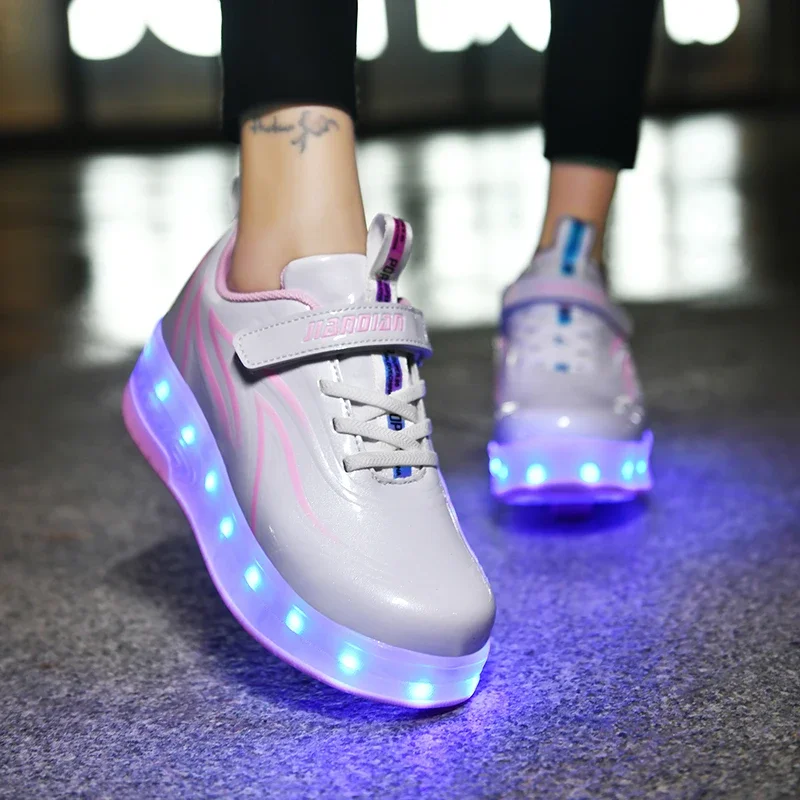 LED Lights Kids Roller Skate Shoes Parkour Deformation With 2 Wheels Casual Boys Girls Sport Detachable Running Skating Shoes