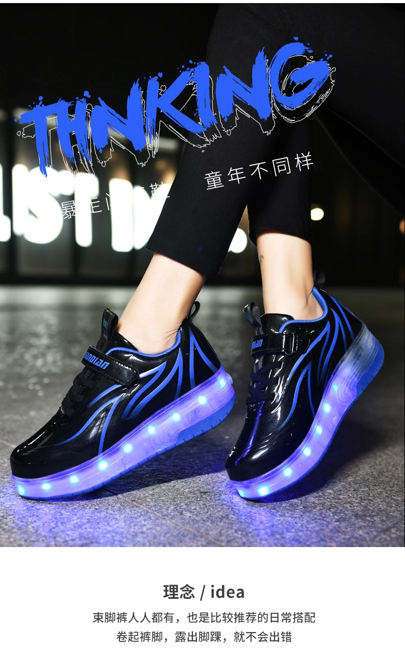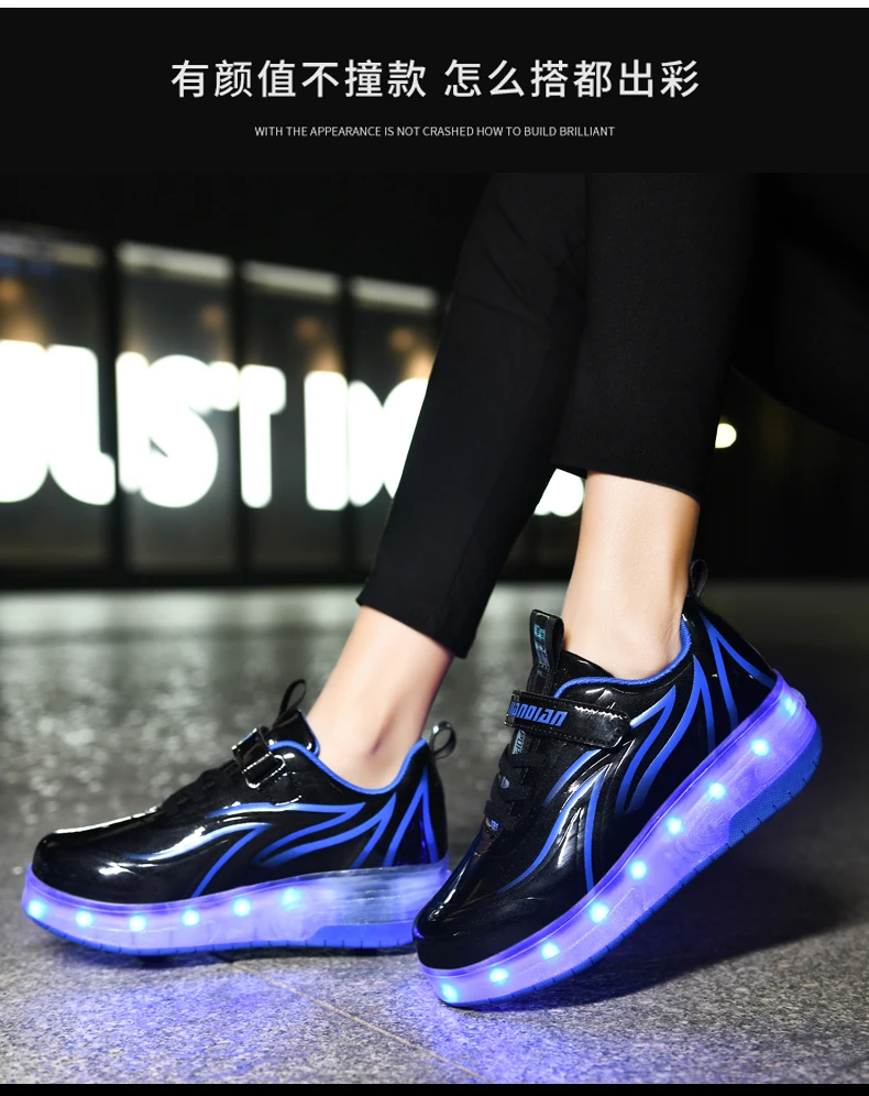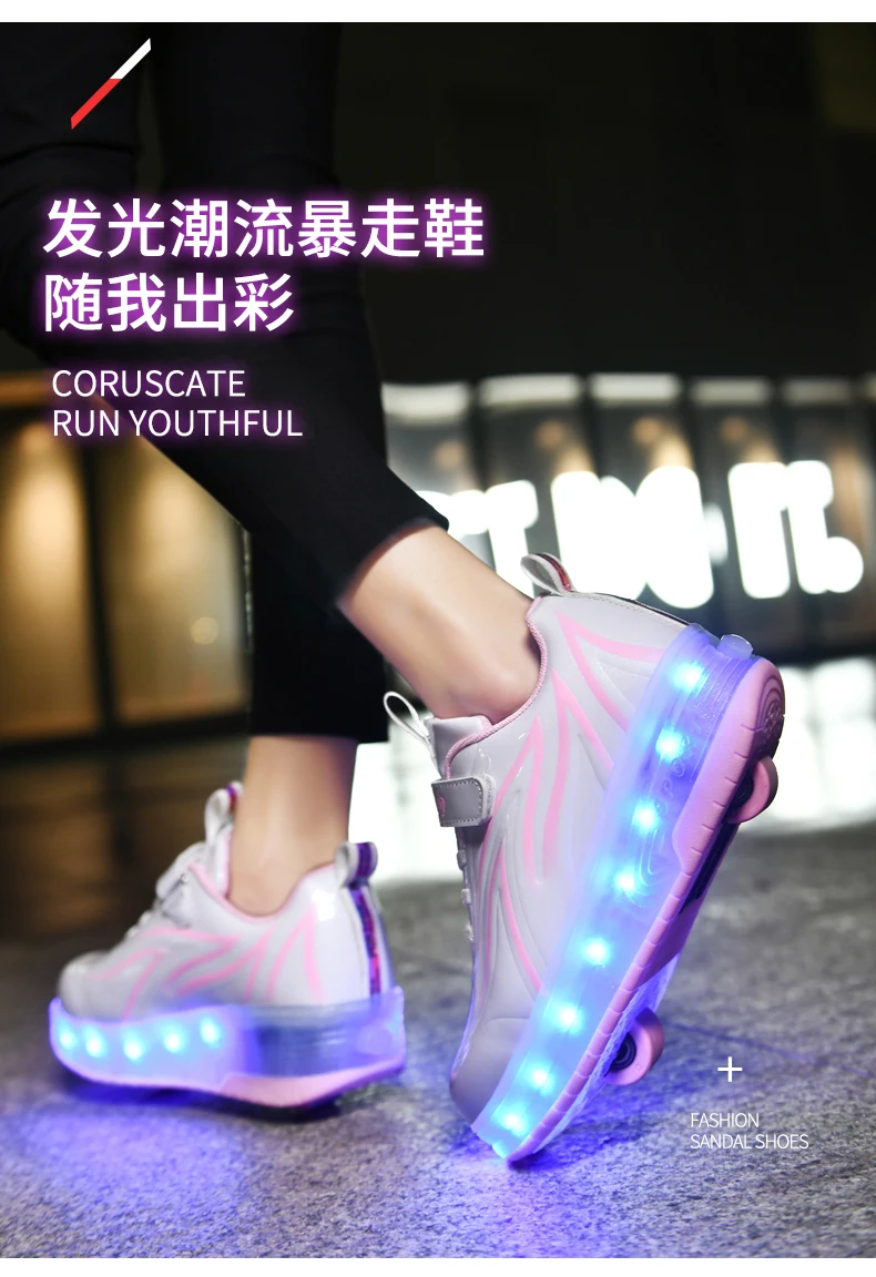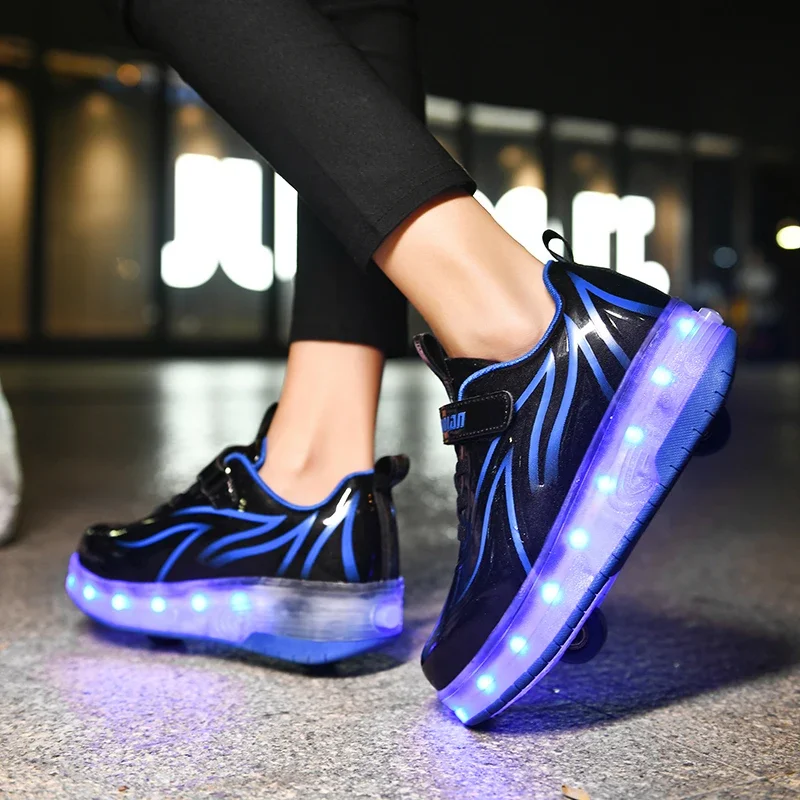LED Lights Kids Roller Skate Shoes Parkour Deformation With 2 Wheels Casual Boys Girls Sport Detachable Running Skating Shoes