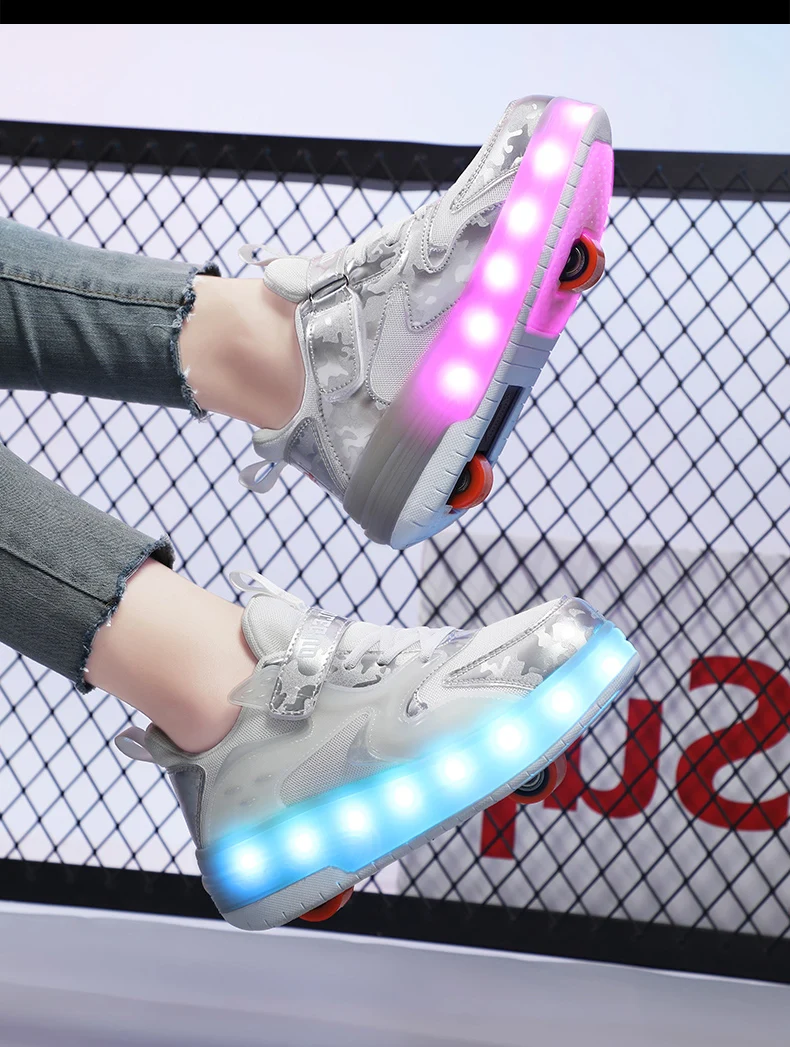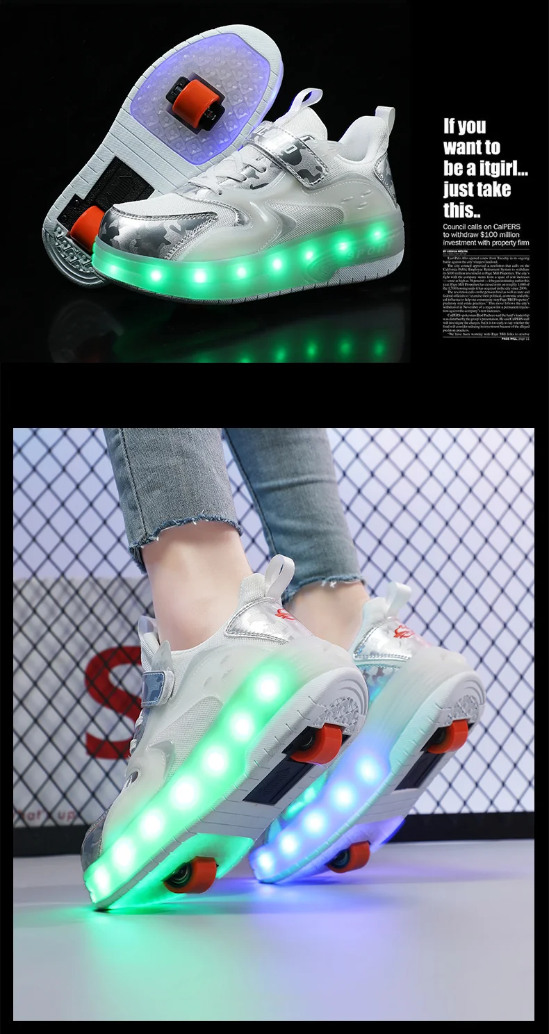 LED Lights Kids Roller Skate Shoes Parkour Running Sport Detachable Boys Girls With 2 Wheels Casual Deformation Skating Shoes