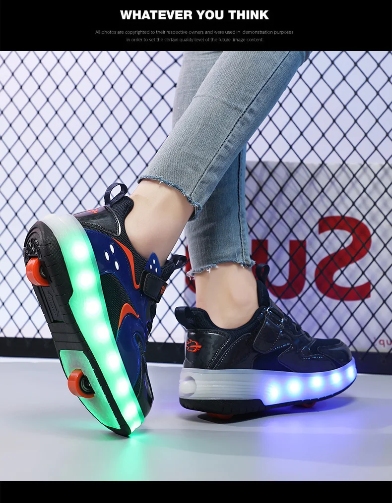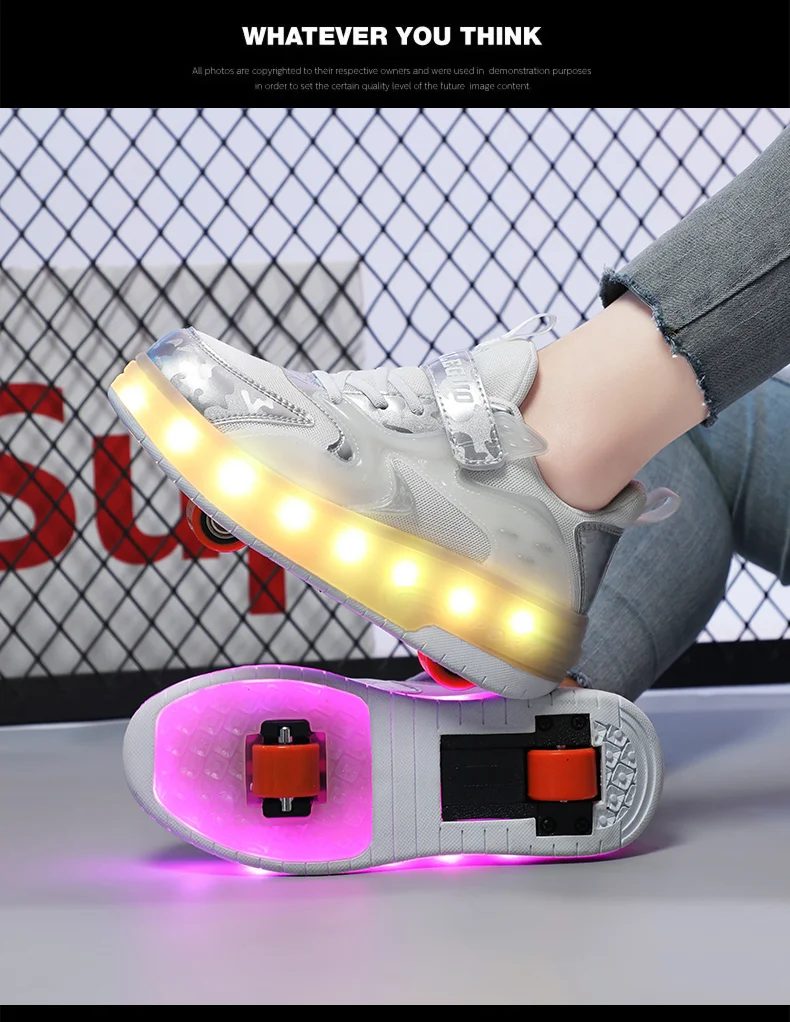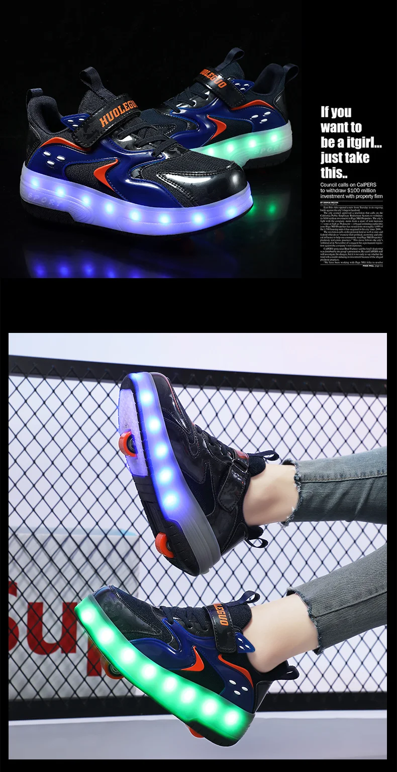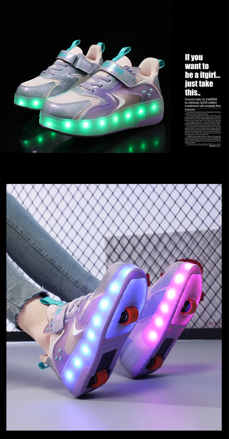 LED Lights Kids Roller Skate Shoes Parkour Running Sport Detachable Boys Girls With 2 Wheels Casual Deformation Skating Shoes